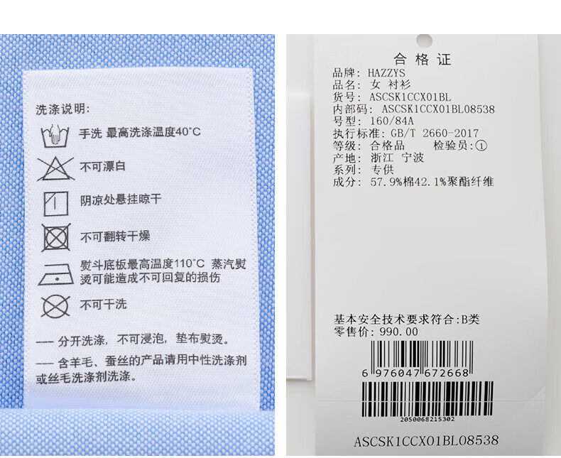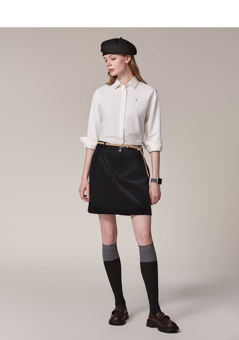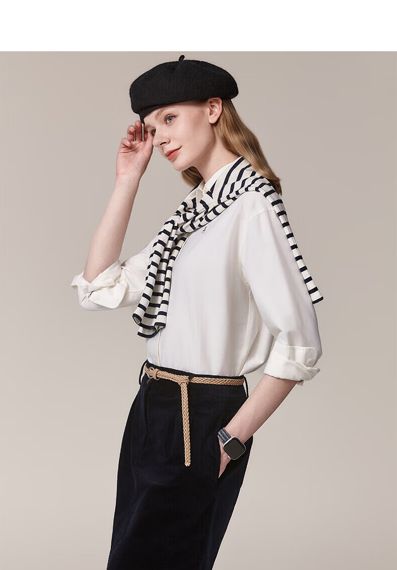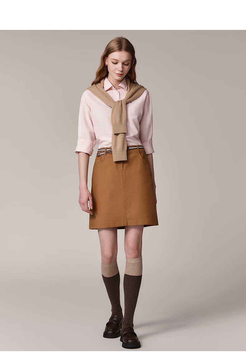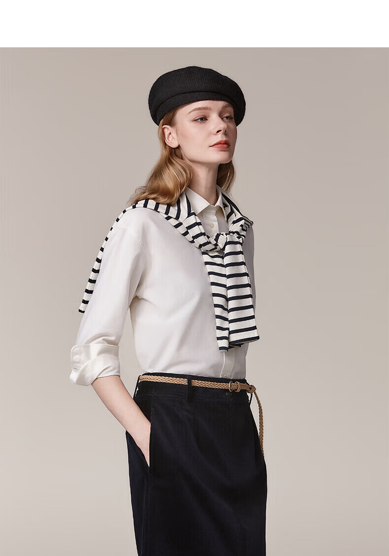 HAZZYS women's clothing autumn women's commuting capable plain long-sleeved shirt for women ASCSK1CCX01