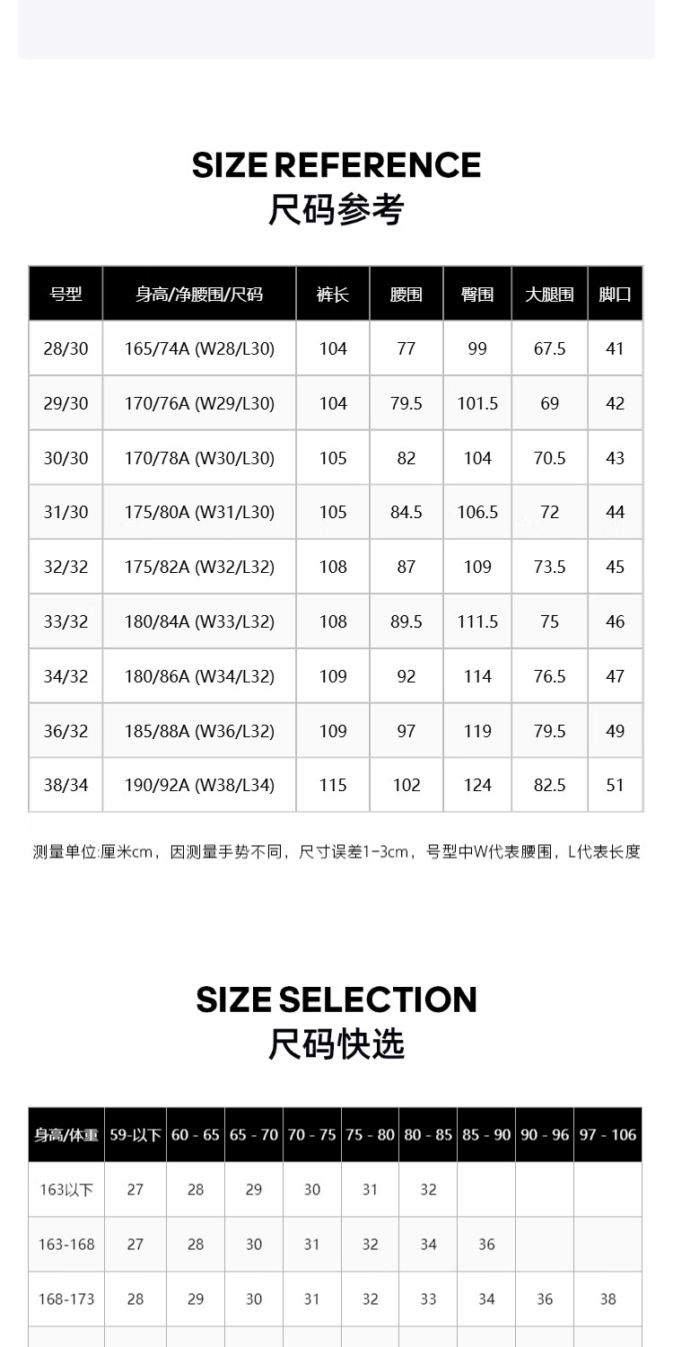 Outseam (cm) 99 cm 101.5 cm 104 cm 106.5 cm 109 cm