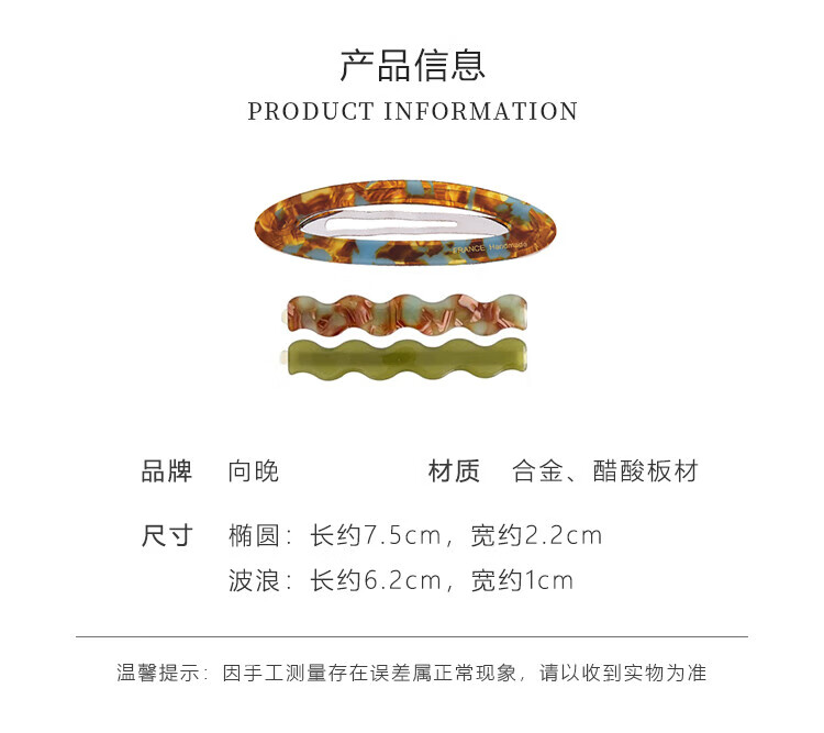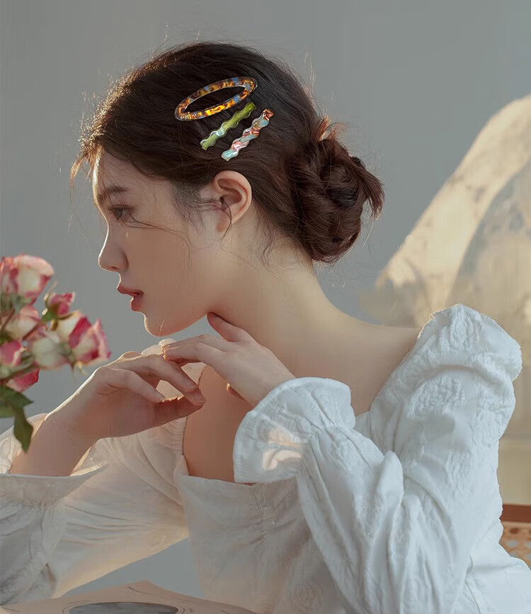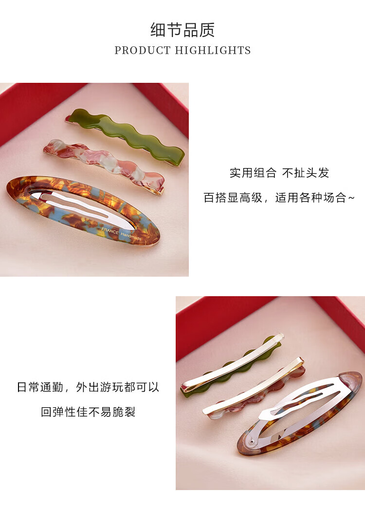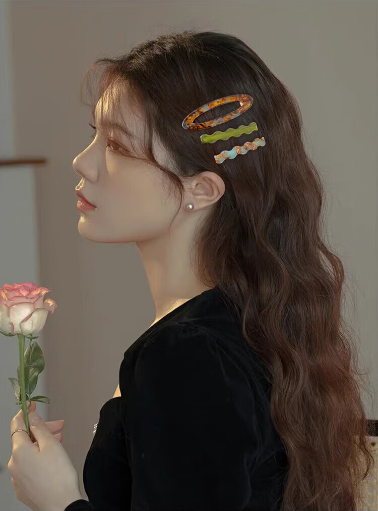 Xiang Wan hair clip 3 pieces temperament acetic acid one-word clip bangs clip back of the head broken hair clip women's hair accessories headband edge clip