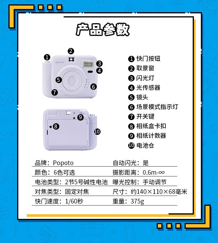 POPOTO instant camera, one-time imaging camera, birthday gift for girlfriend, student party selfie, portable travel, lavender purple stand-alone