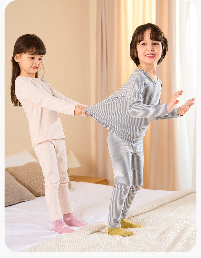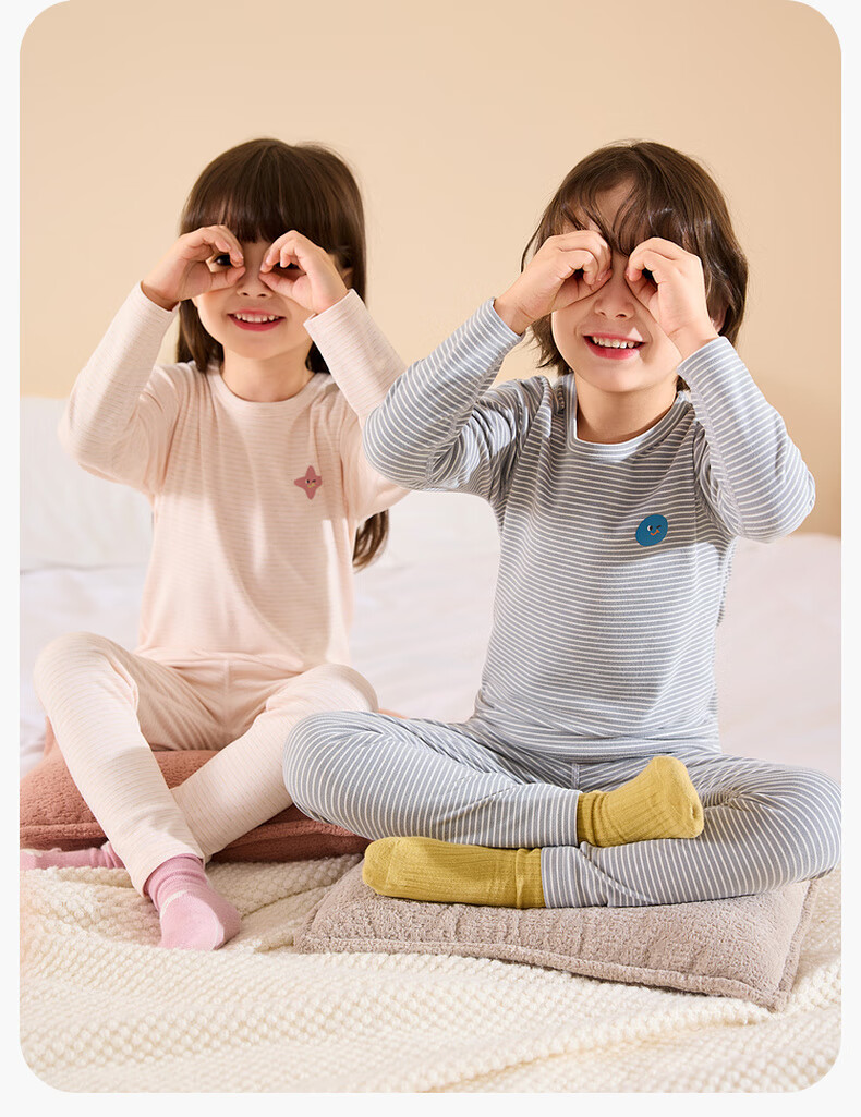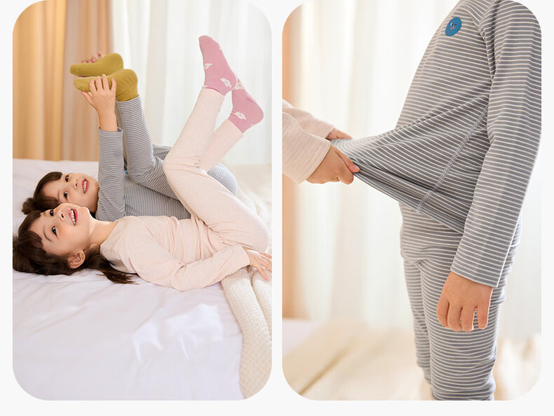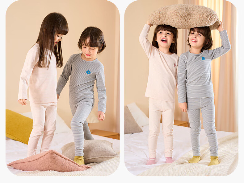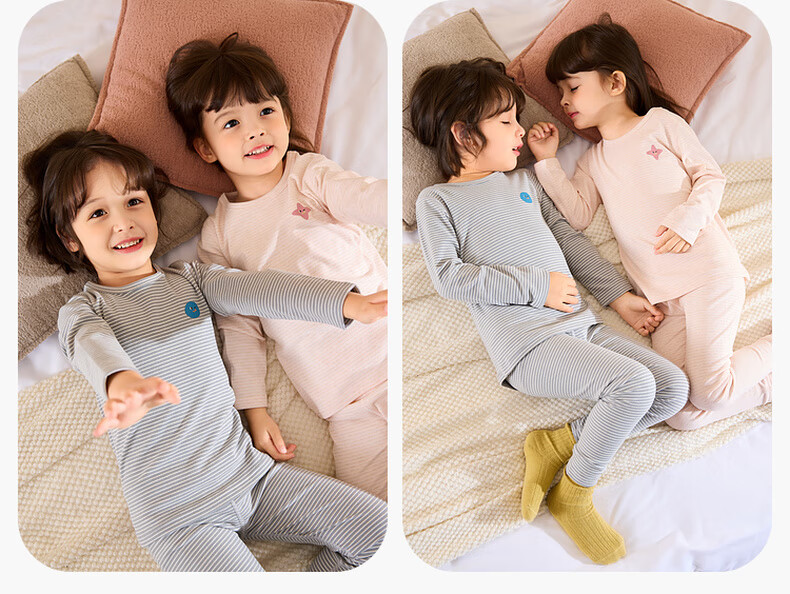 Dudujia Baby Underwear Set Autumn Children's Home Clothes Autumn and Winter Girls and Boys Striped Comfortable Pajamas Autumn Green 100