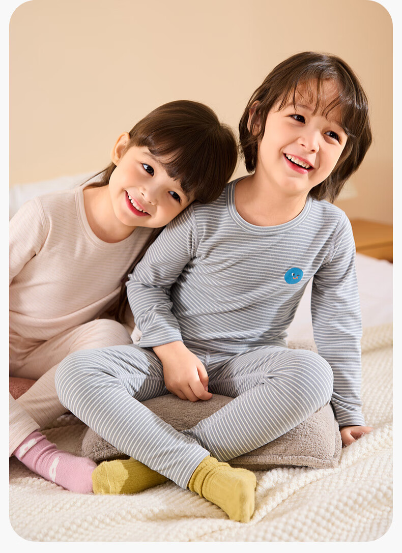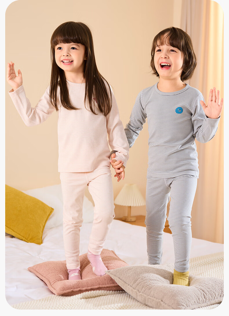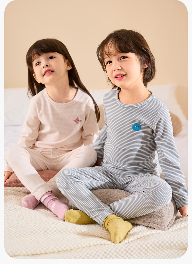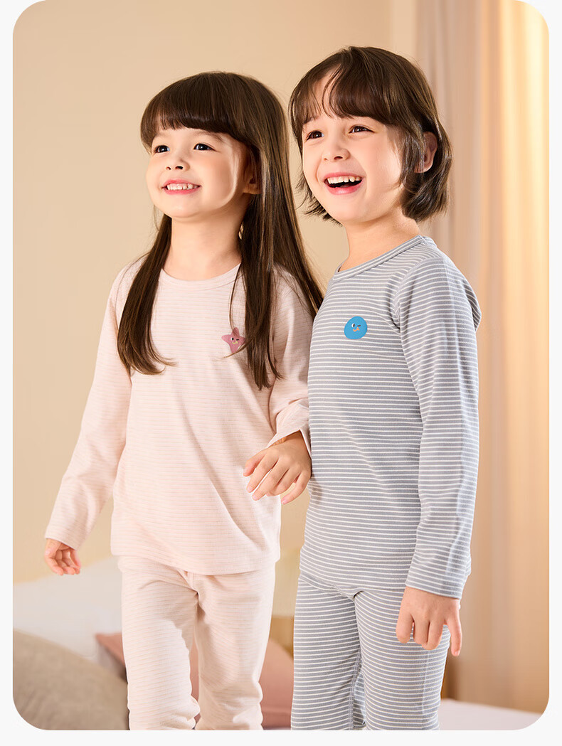 Dudujia Baby Underwear Set Autumn Children's Home Clothes Autumn and Winter Girls and Boys Striped Comfortable Pajamas Autumn Green 100