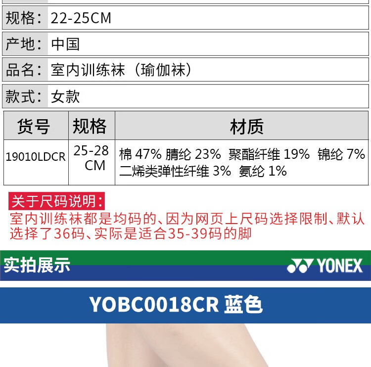 YONEX Yonex yoga socks YY open toe non-slip beginner Pilates exercise mid-calf five-finger socks YOBC0018CR blue (one pair price)