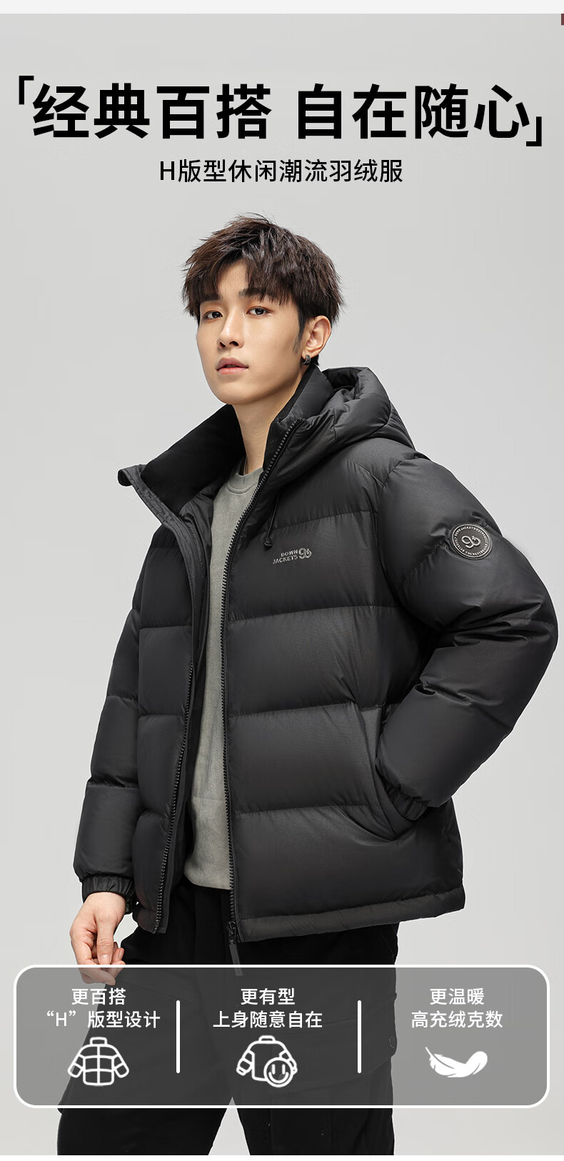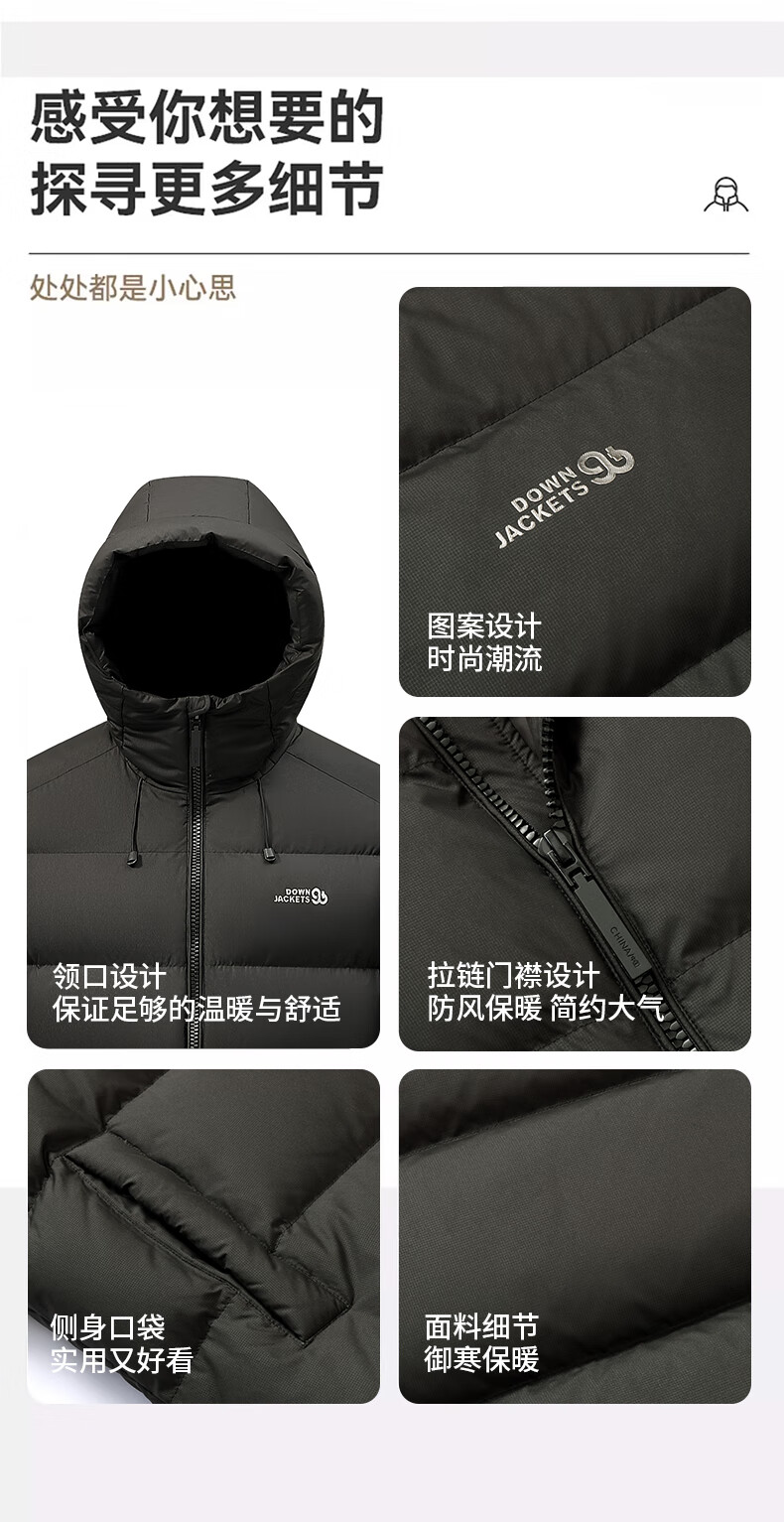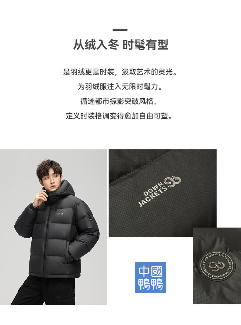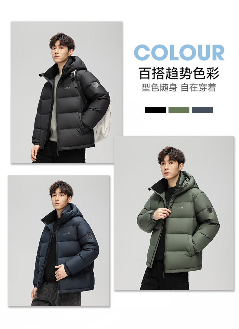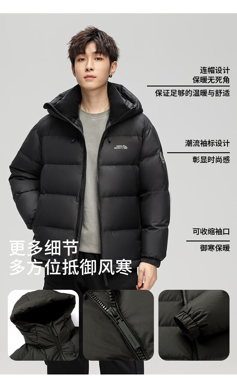 Ducky 2025 winter new down jacket men's loose warm short thickened hooded casual versatile 90 duck down bread jacket