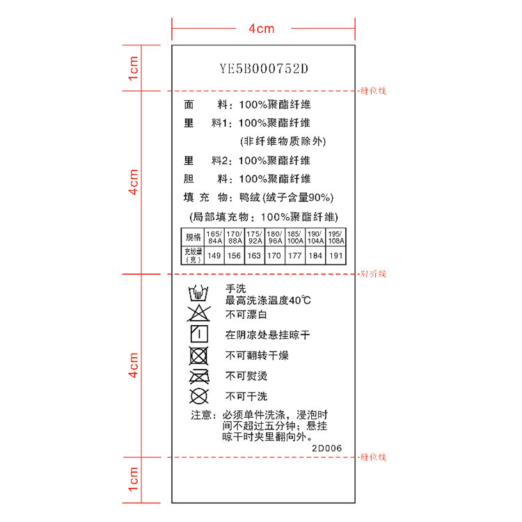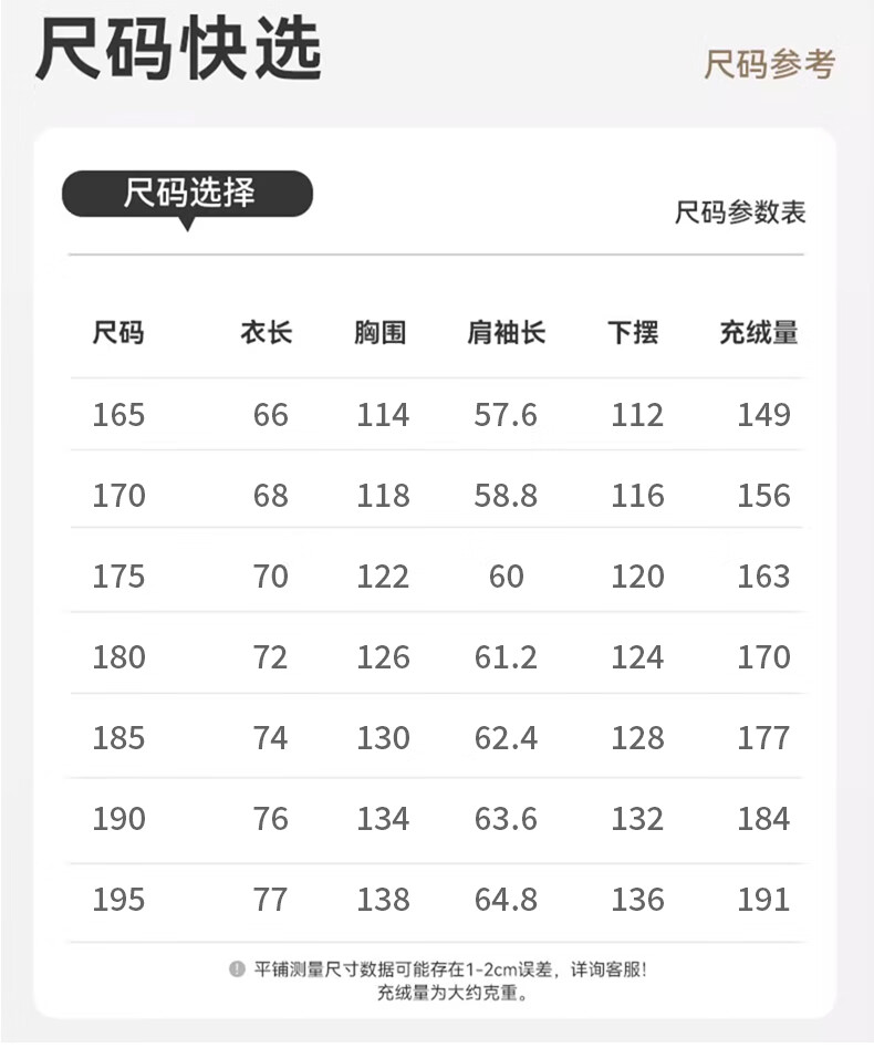 China (cm) 165 / 88-90 170 / 96-98 175 / 108-110 180 / 118-122 185 / 126-130