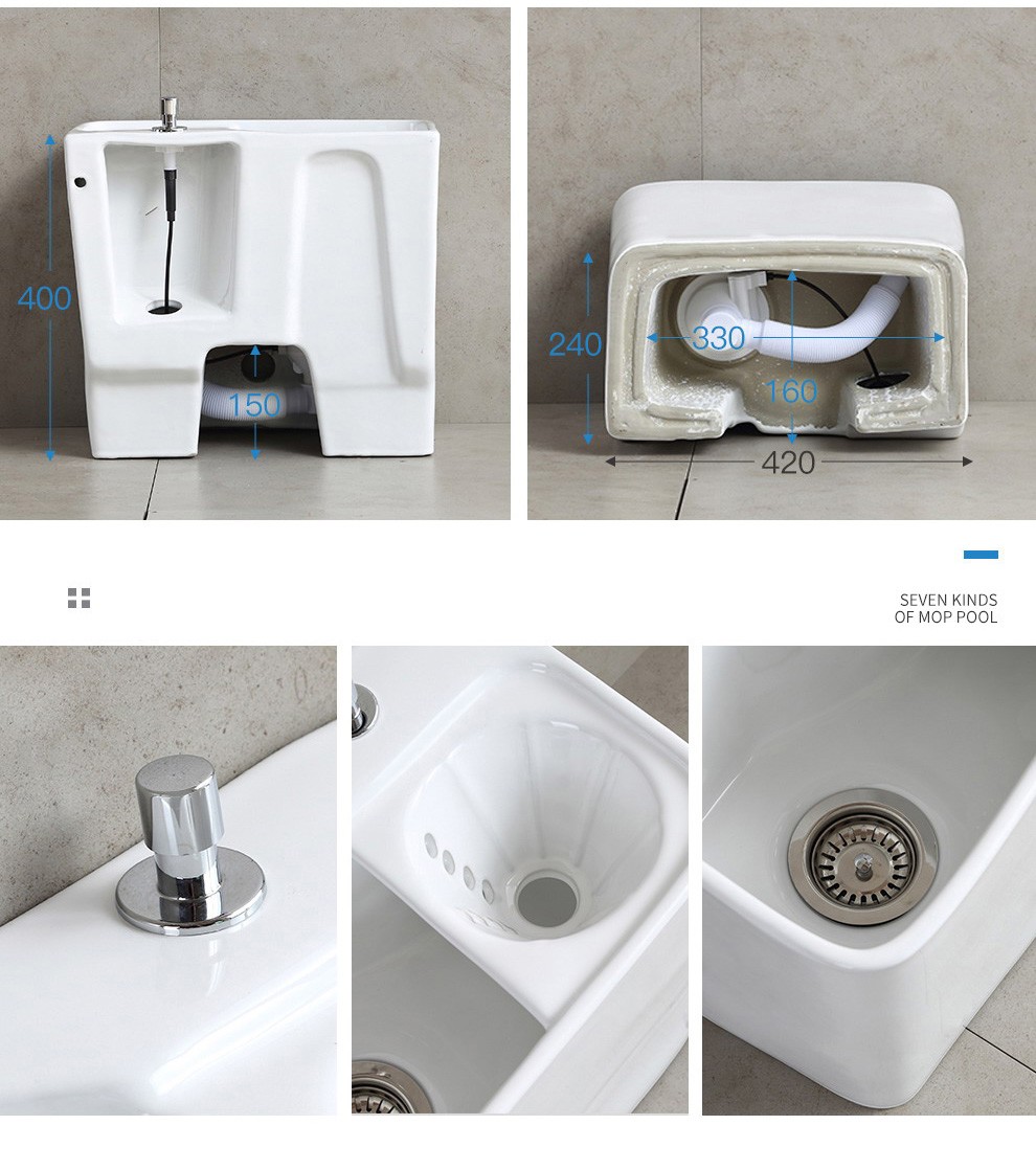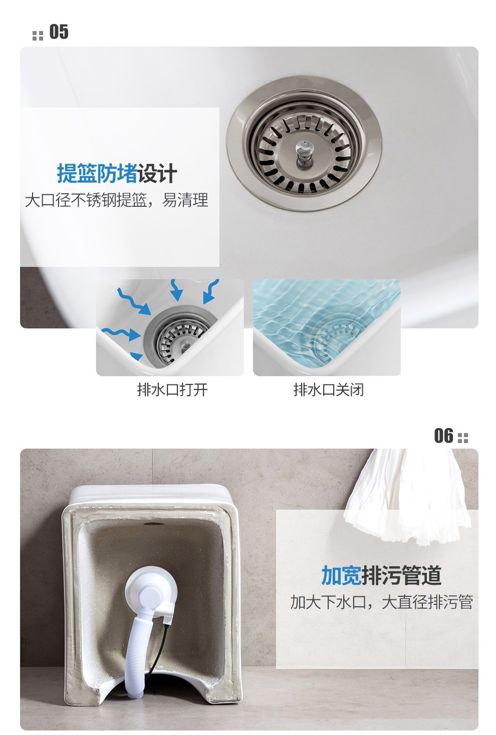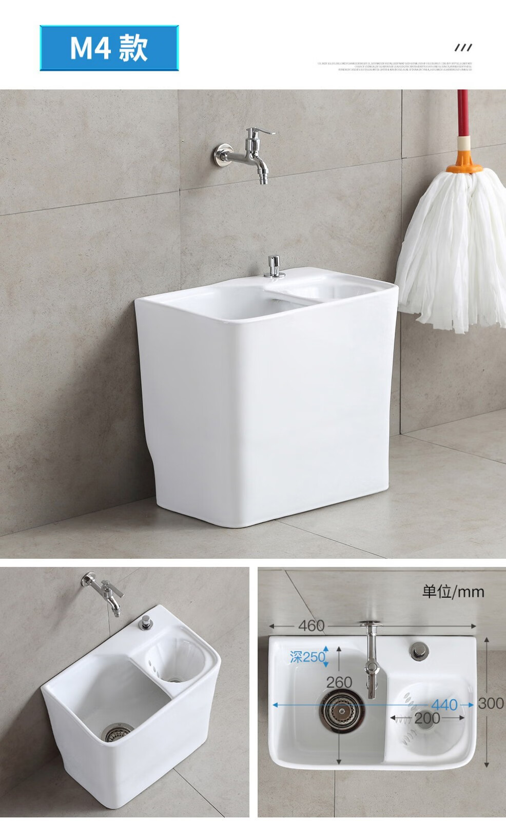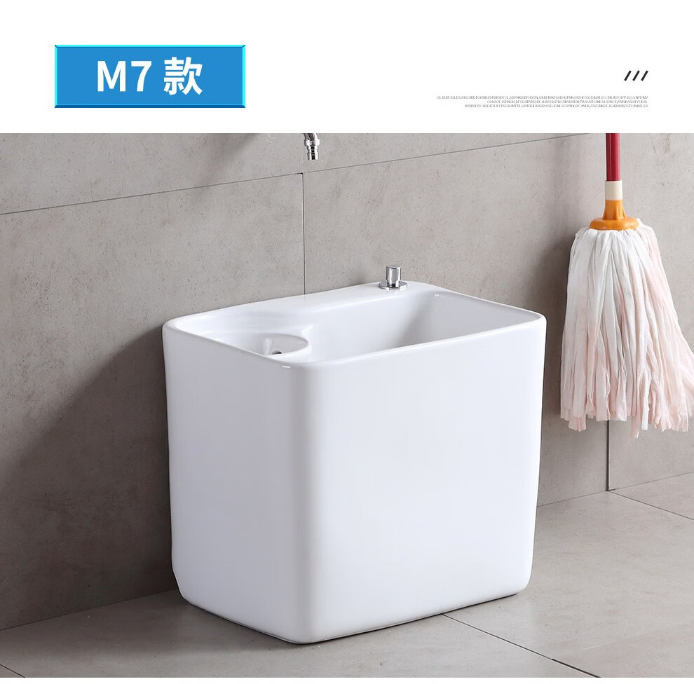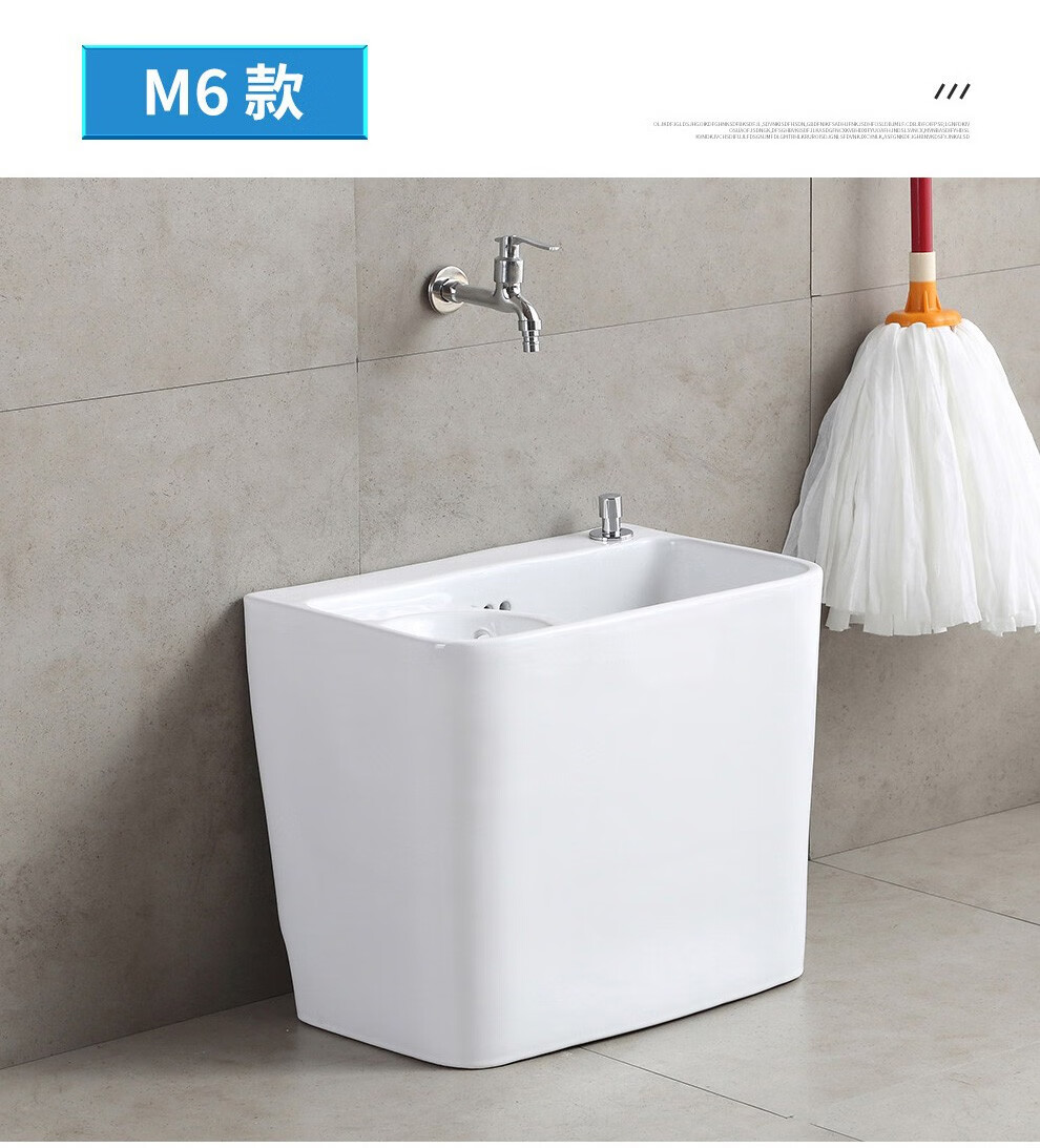 Guanmu large ceramic mop pool side row household bathroom floor mop with drain basket mop sink floor mop bucket basin M5+station-controlled drain+in-wall faucet