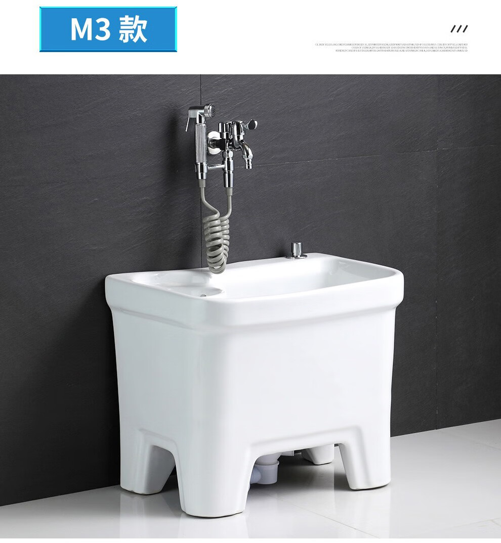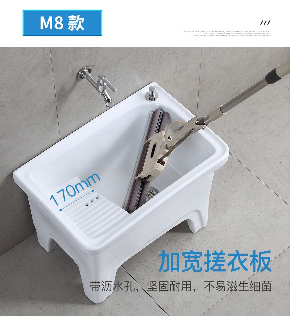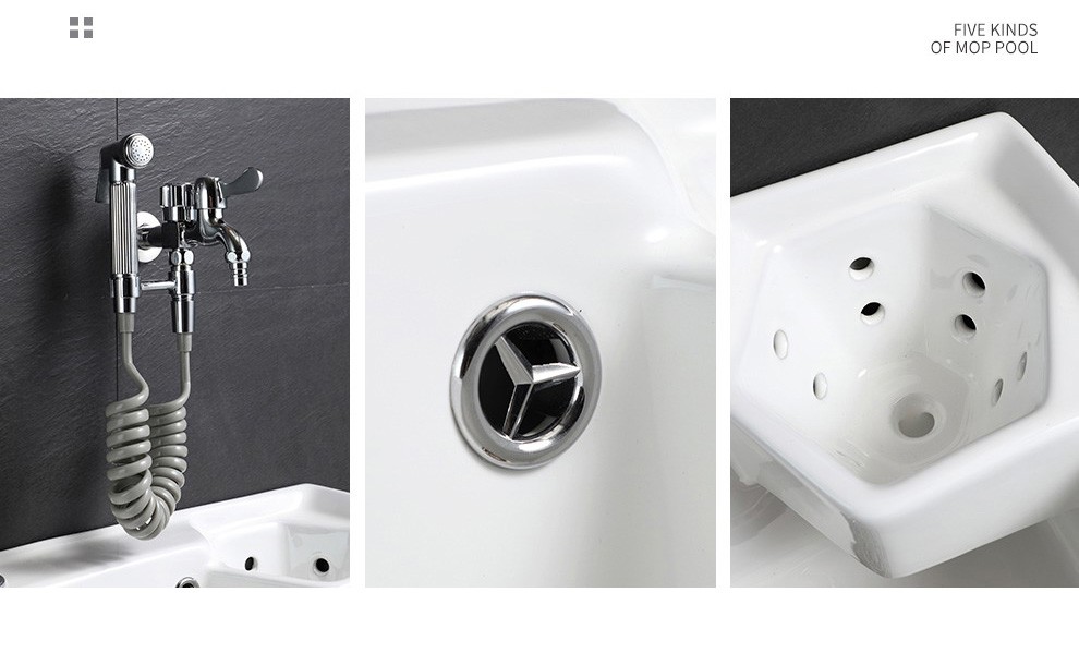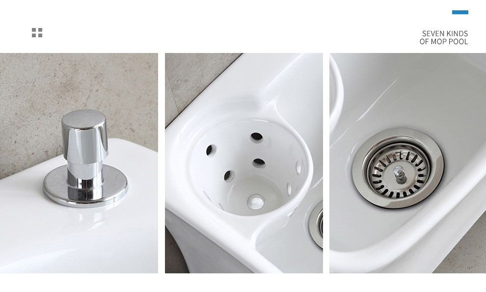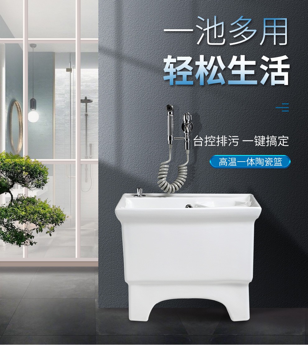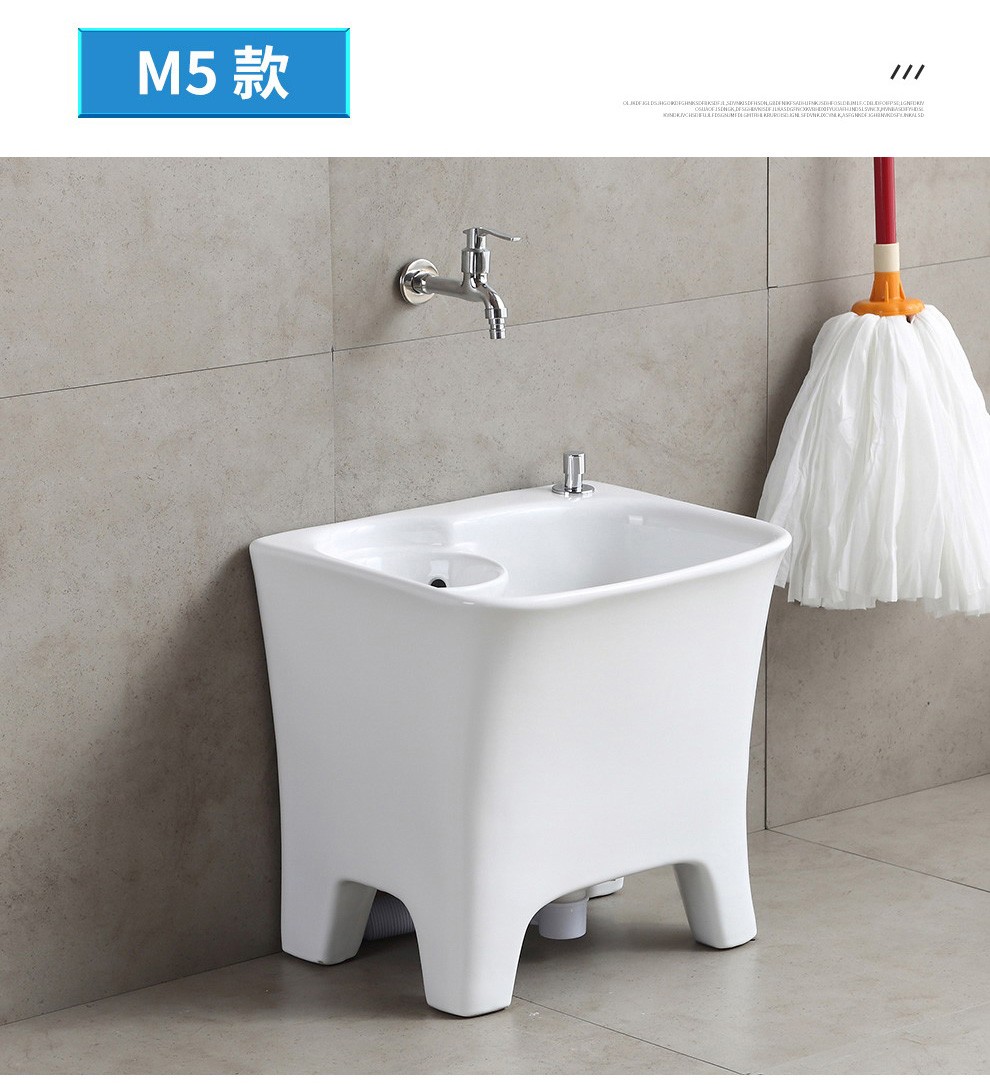 Guanmu large ceramic mop pool side row household bathroom floor mop with drain basket mop sink floor mop bucket basin M5+station-controlled drain+in-wall faucet