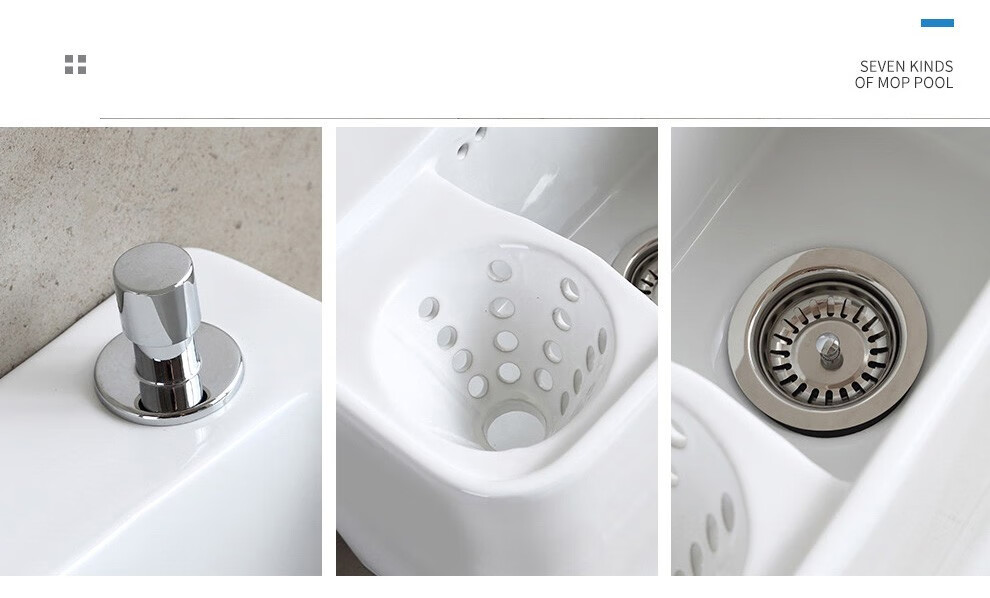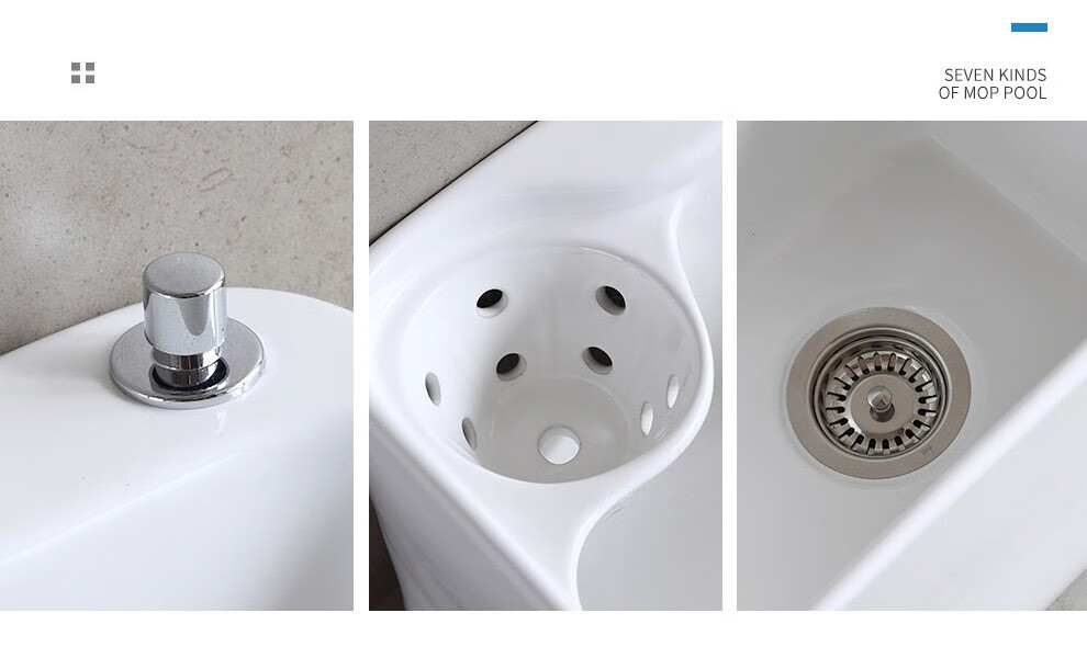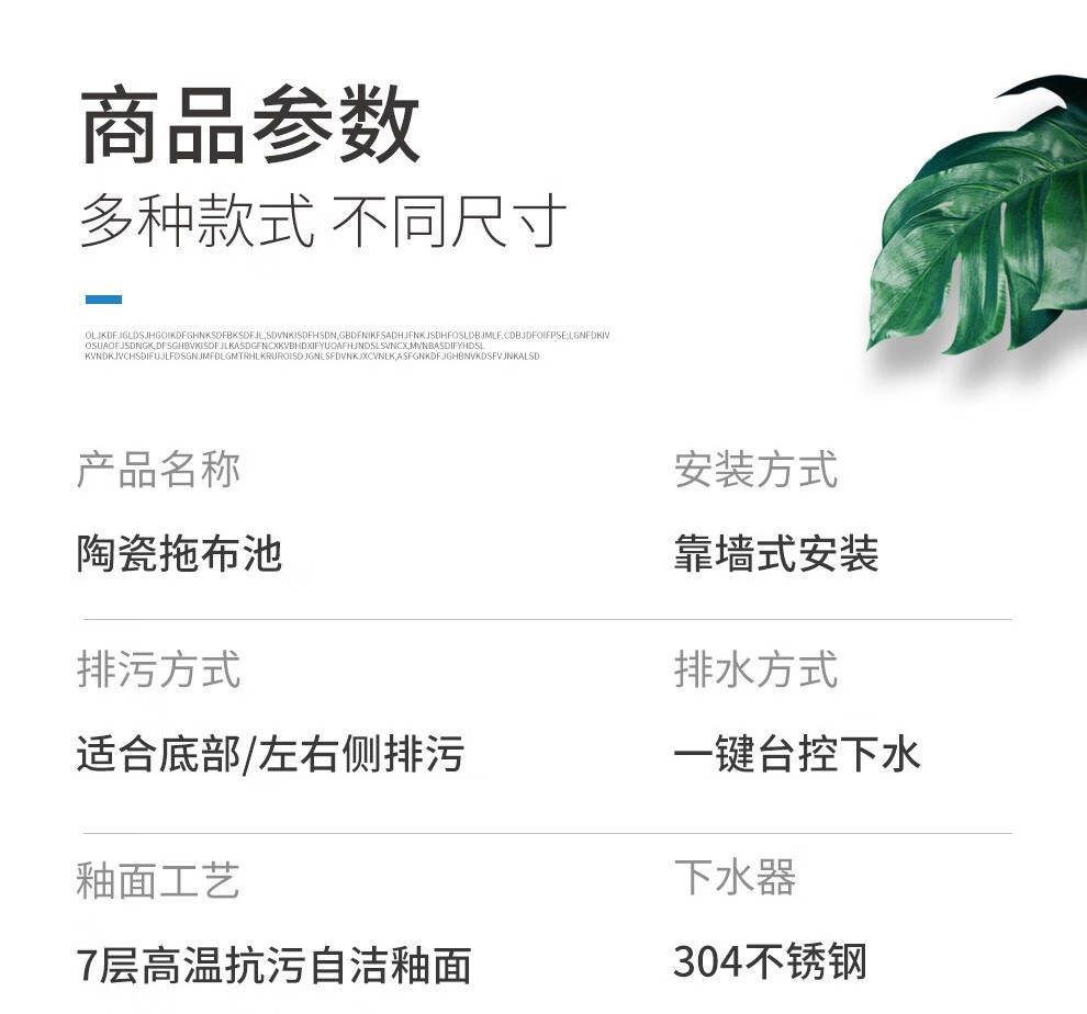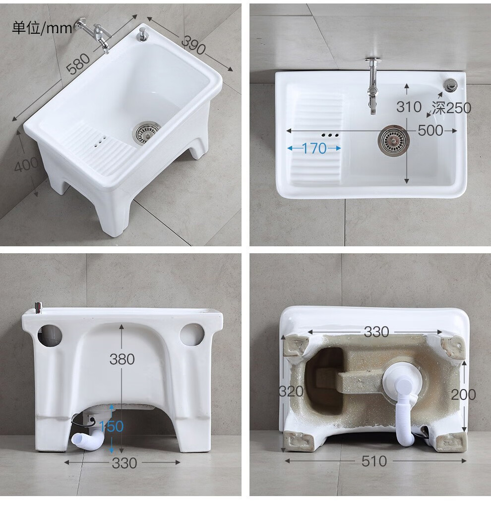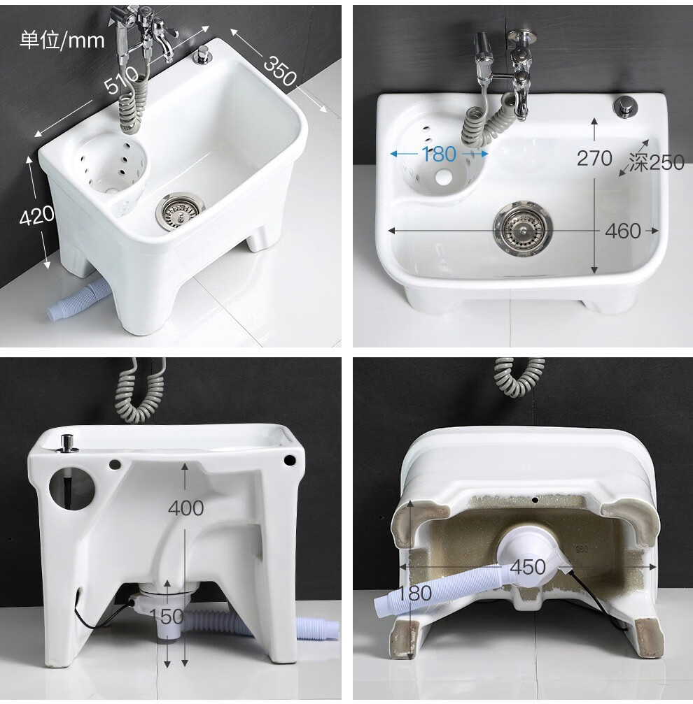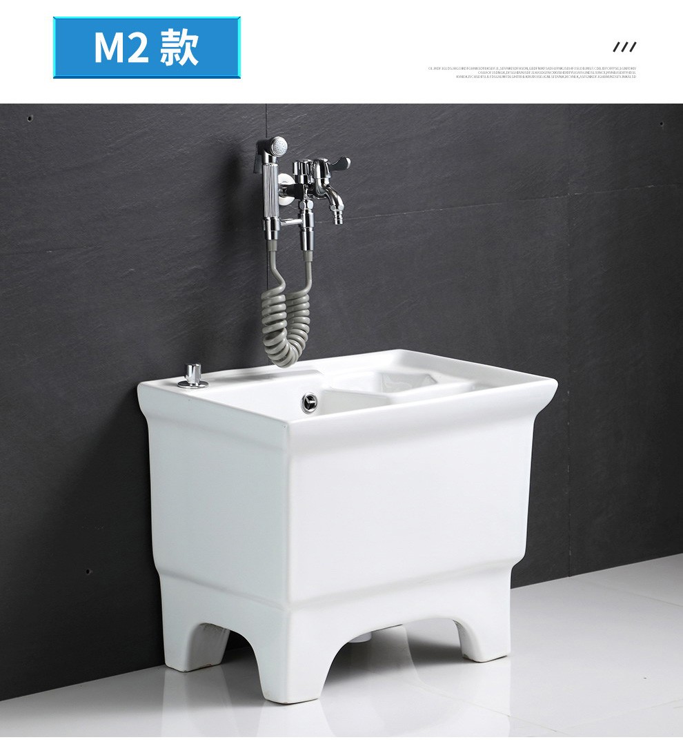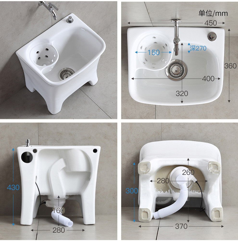 Guanmu large ceramic mop pool side row household bathroom floor mop with drain basket mop sink floor mop bucket basin M5+station-controlled drain+in-wall faucet