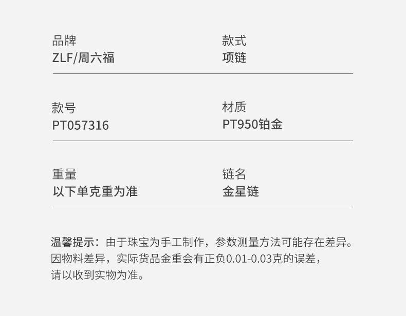 Saturday Fortune (ZLF) platinum necklace for women PT950 sparkling gold star chain platinum chain 2.62g 42cm