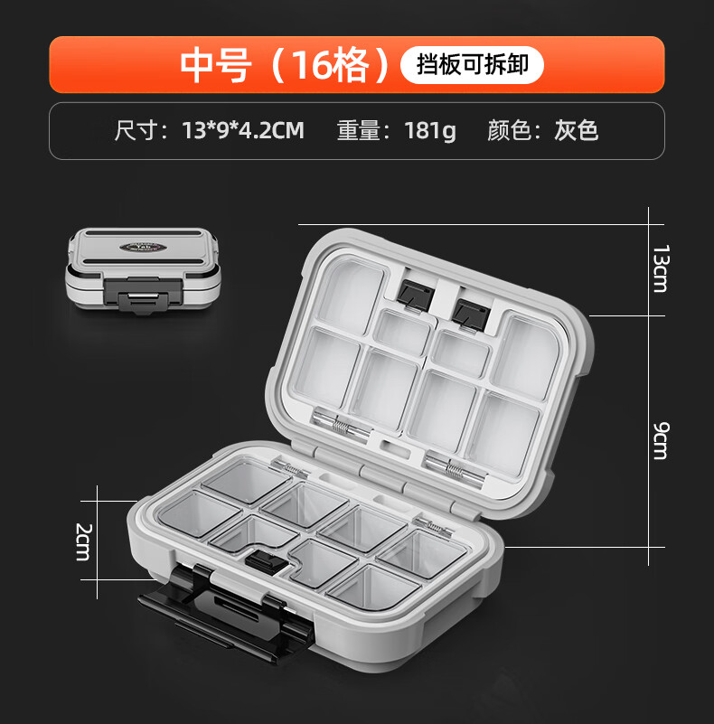 TAB fishing accessories box multi-functional lure box lure box fish hook storage box tool box fishing gear fake bait box waterproof waterproof accessories storage box large gray