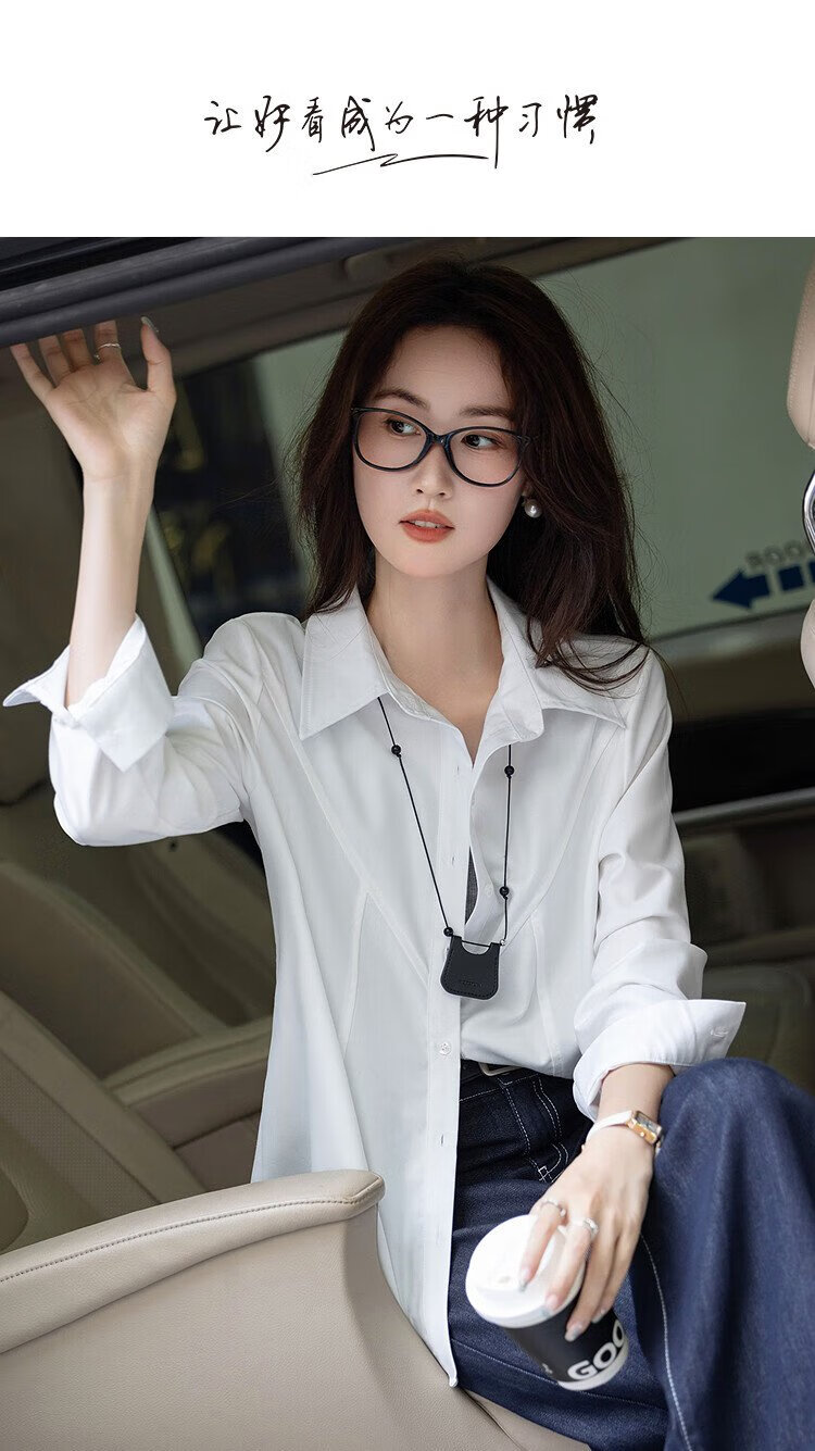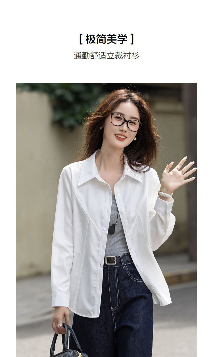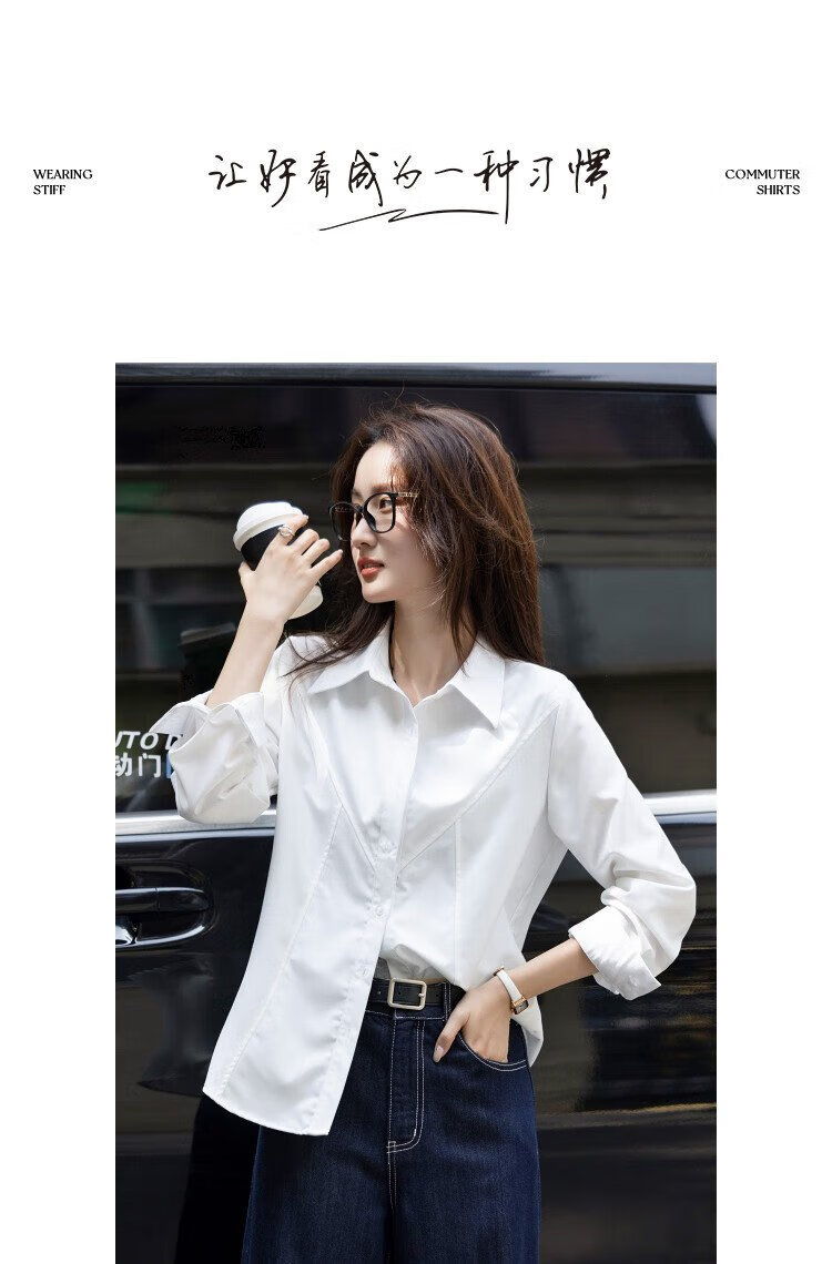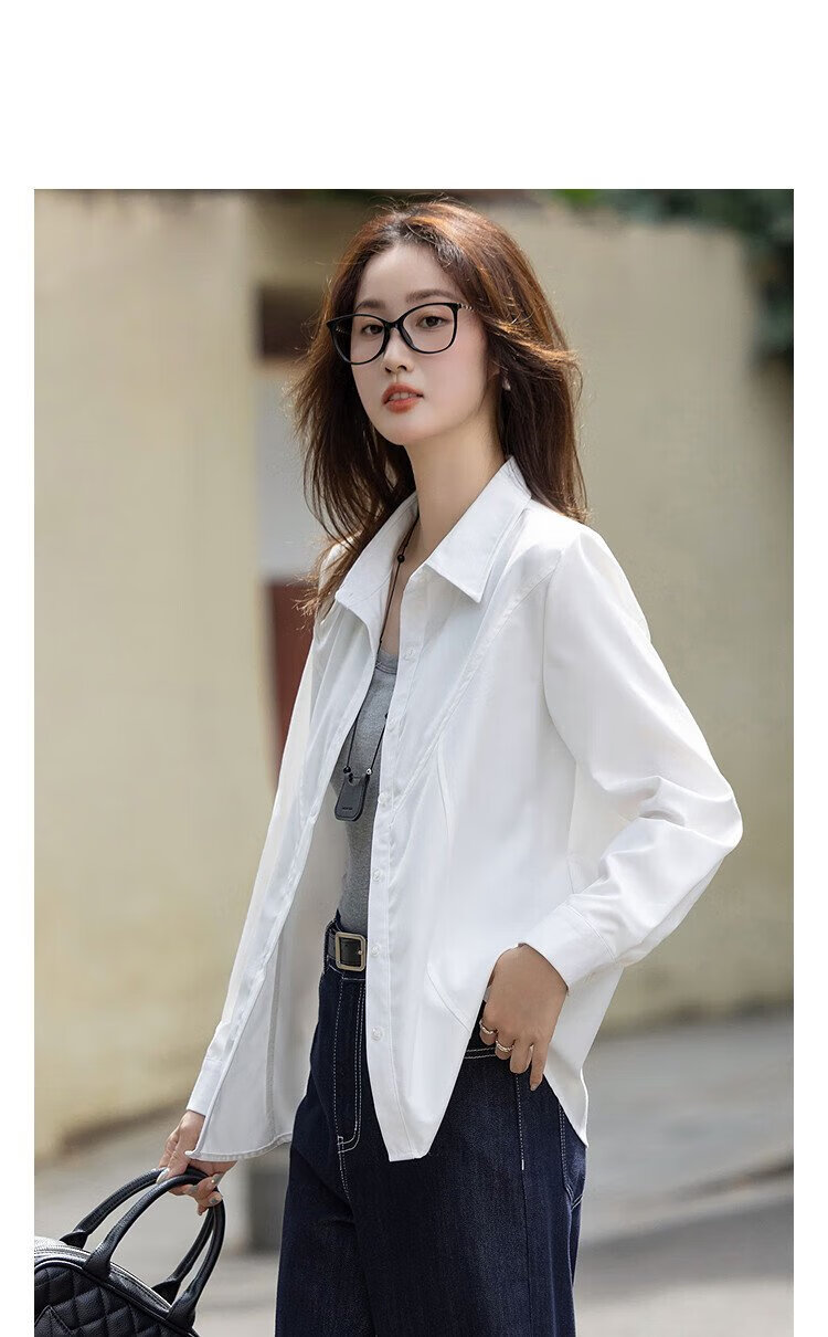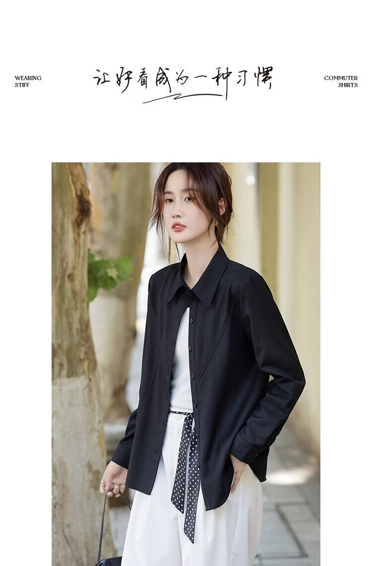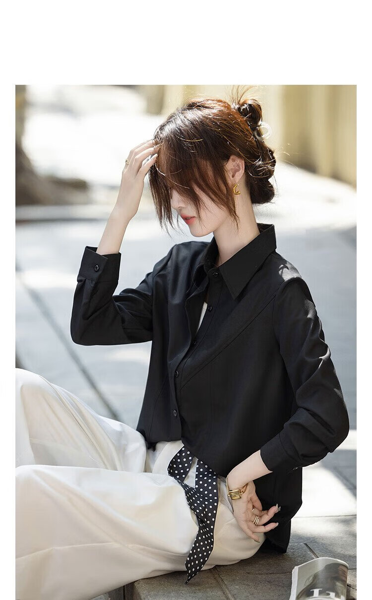 Demana Commuting Comfort Zone Autumn minimalist style lapel shirt design stitching vertical cut flesh-covering shirt women's tops