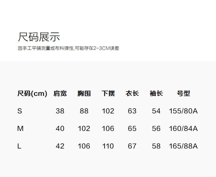 China (cm) 160-165/84-86 165-170 / 88-90 167-172 / 92-96 168-173 / 98-102 170-176 / 106-110