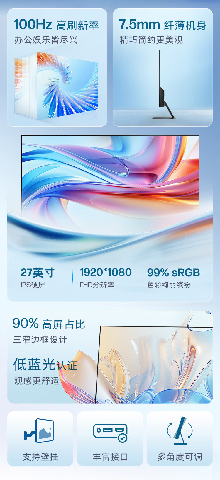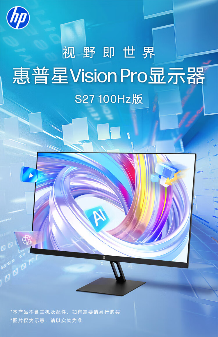 Quasi-new product HP HP Star Vision Pro 27-inch monitor 100Hz high refresh rate IPS technology three micro-edge design low blue light eye-friendly computer office display S27