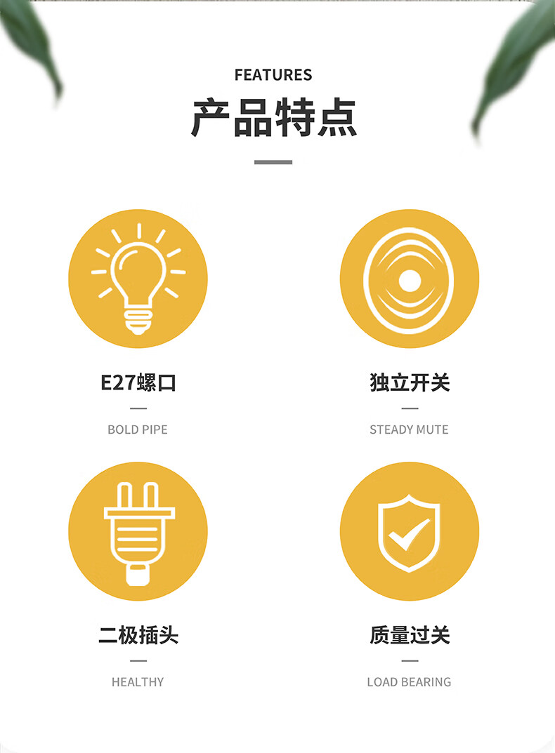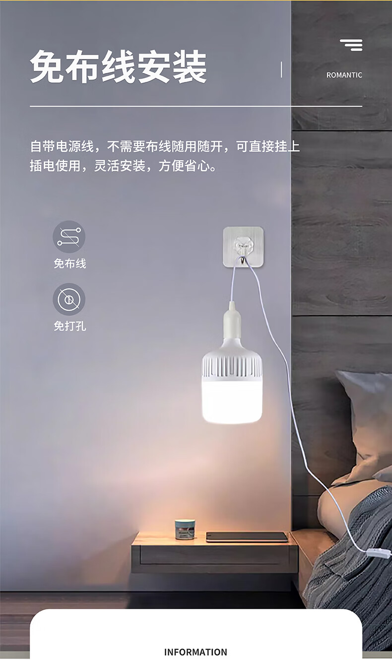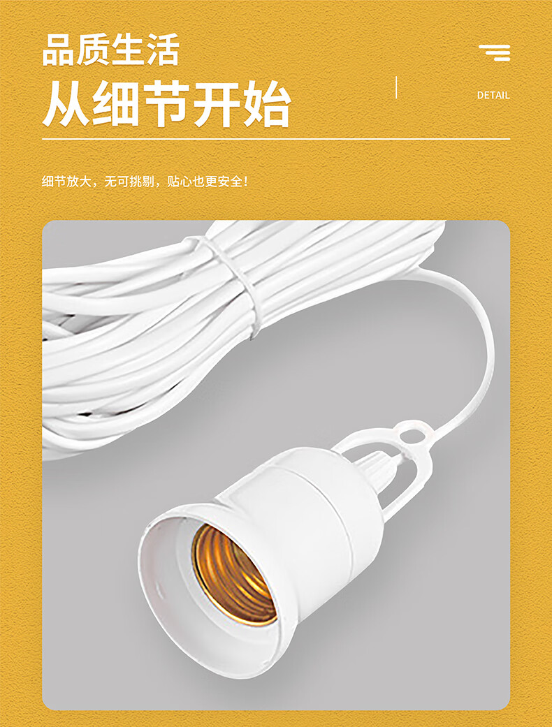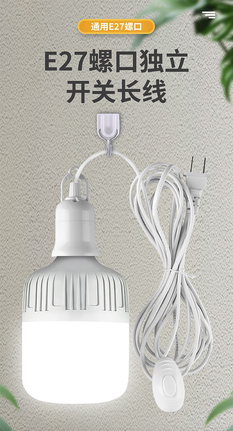 Jinggong plug socket chandelier switch extension cord hanging LED energy-saving lamp with wire plug integrated lamp E27 screw mouth 40W white light 4 meters wire