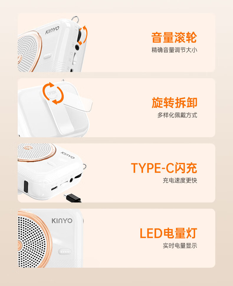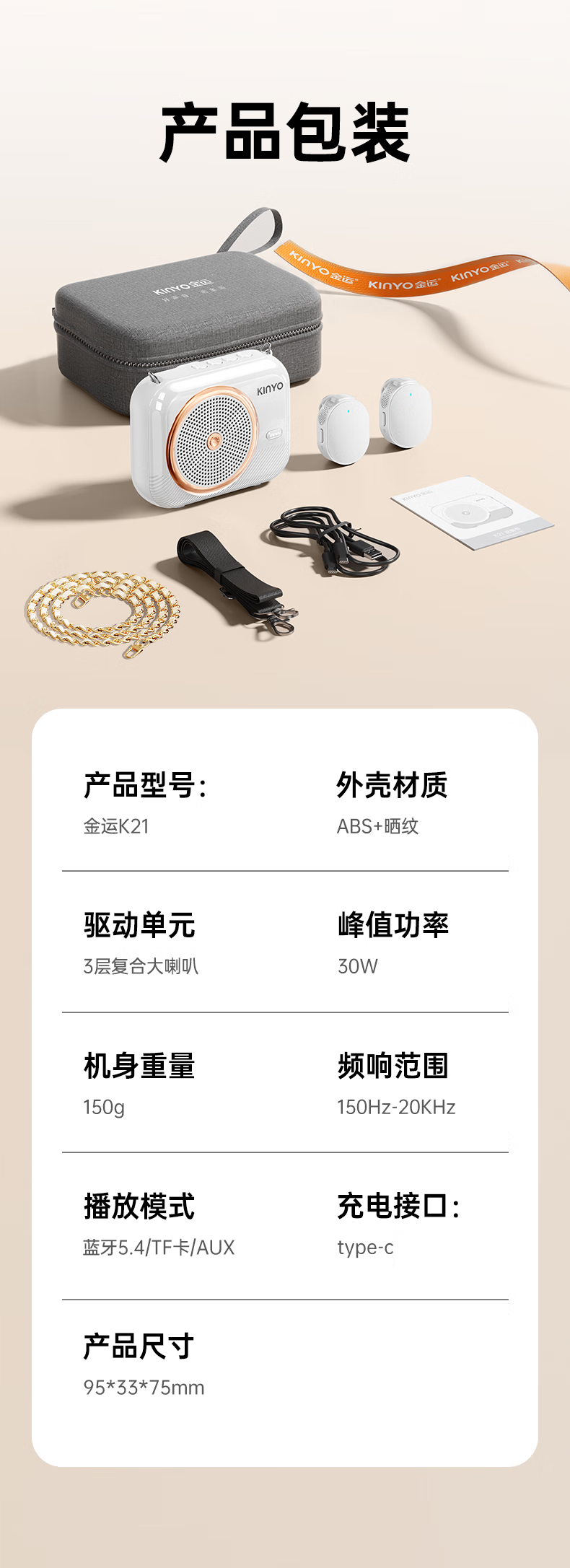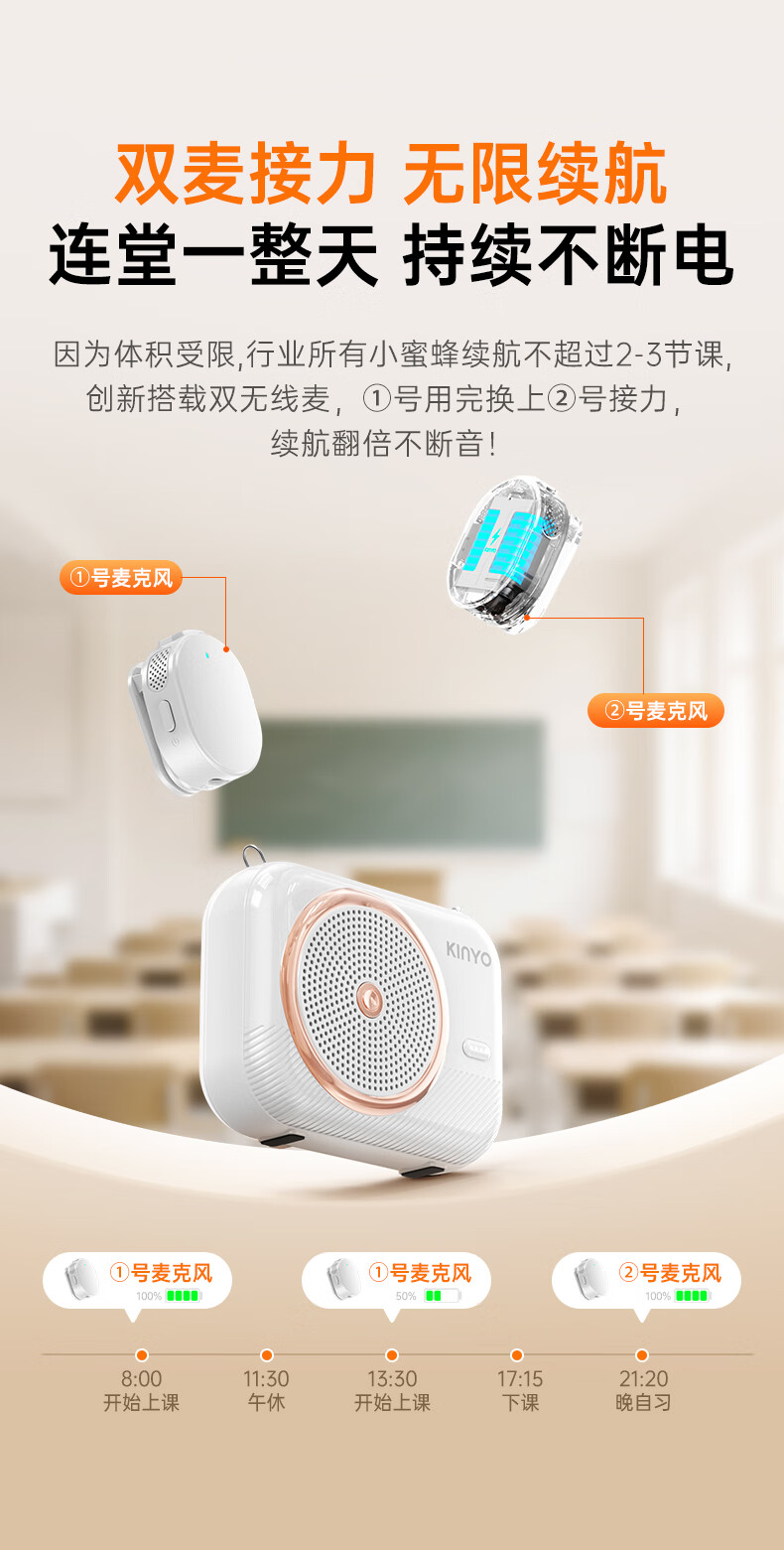 Jinyun Famous Teacher Recommendation丨30W Large Volume Little Bee Amplifier Teacher's Special Anti-Scream Wireless Magnetic Lavalier Wheat Guide Teaching Explainer Portable Speaker K21