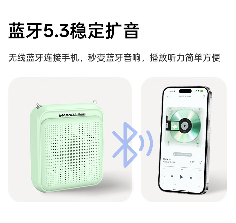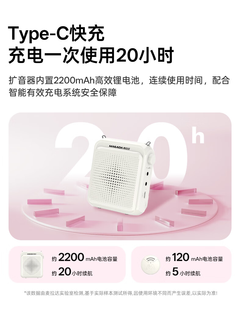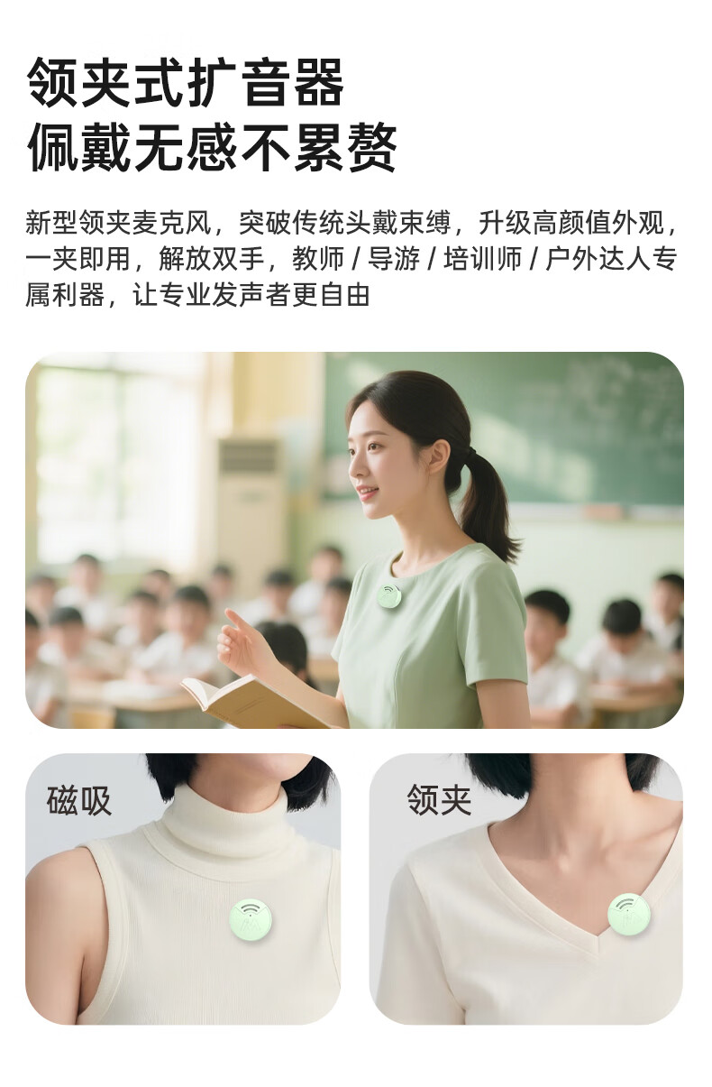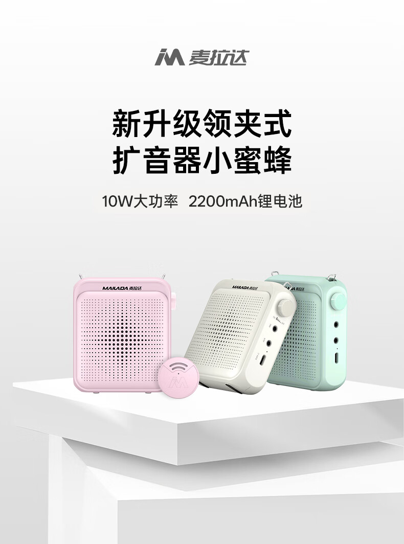 Melada Wireless Lavalier Little Bee Loudspeaker Teacher's Special Megaphone Teacher's Classroom Speaker Anti-Howling Guide Outdoor Portable A6 Button Lavalier Version Rock White