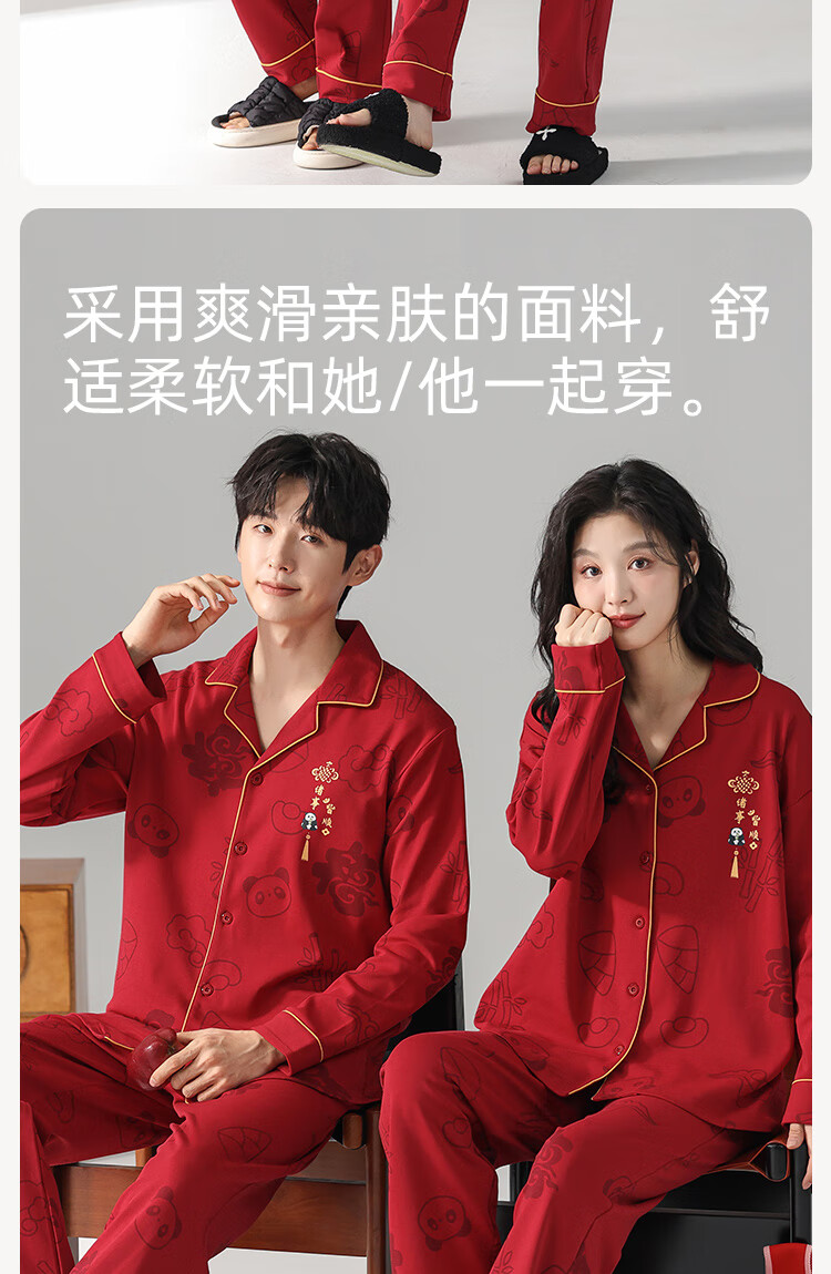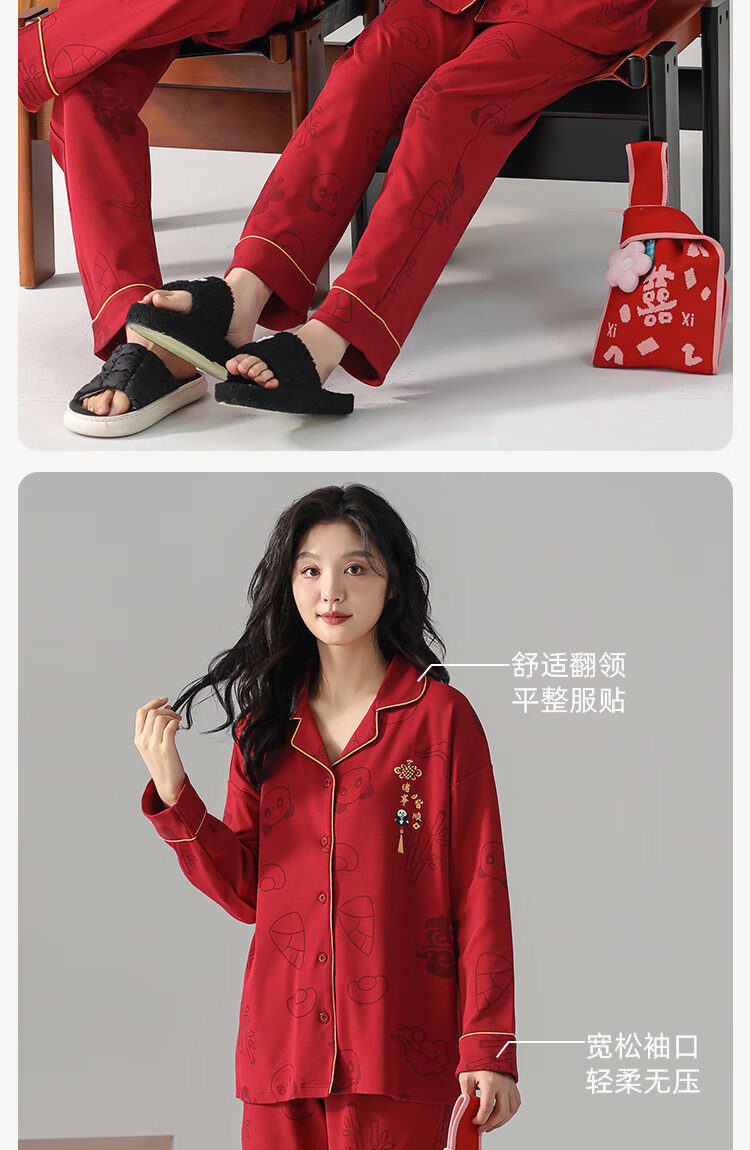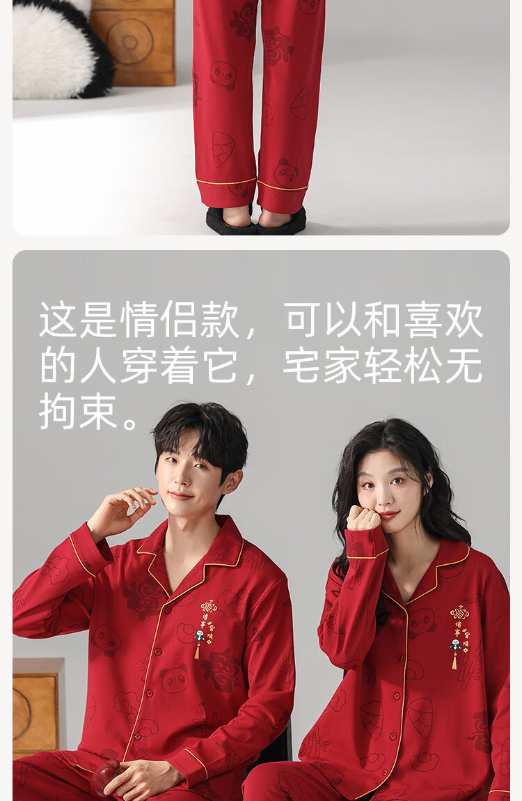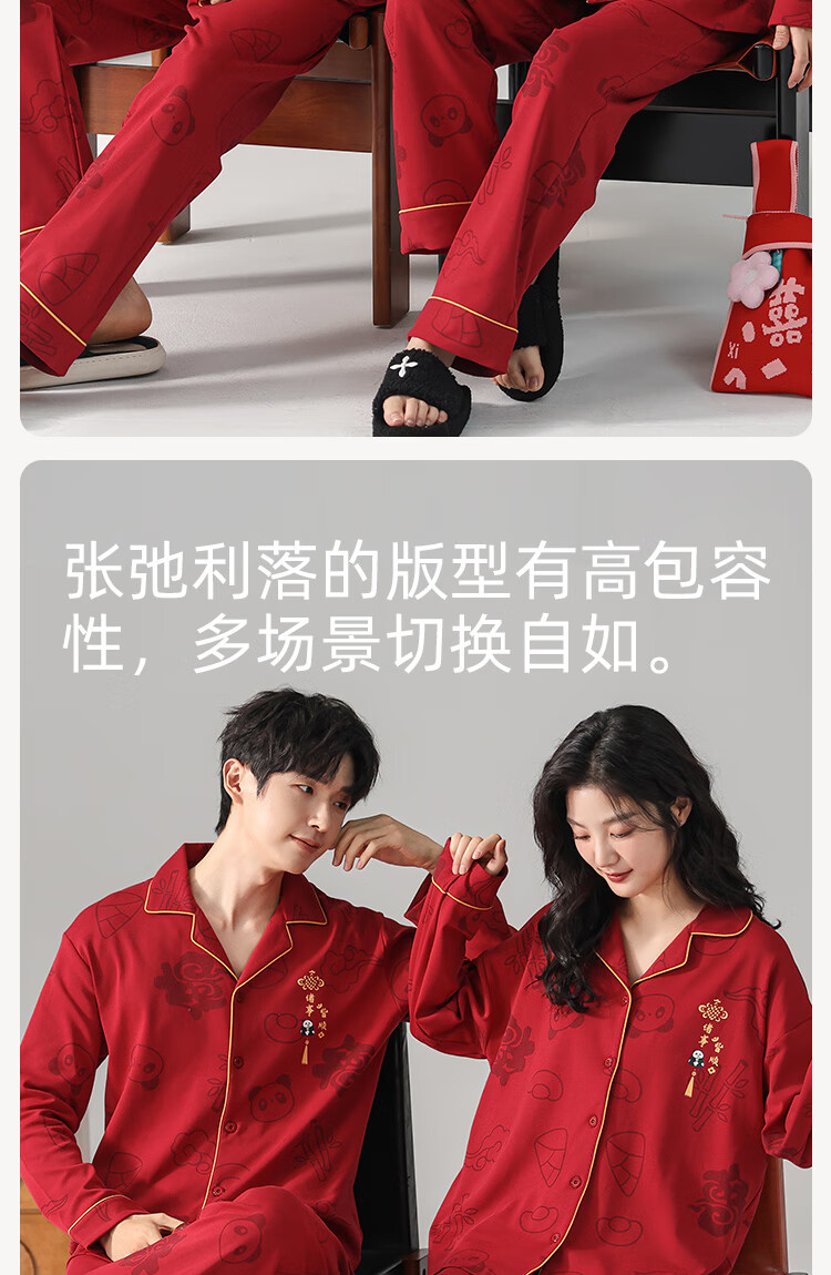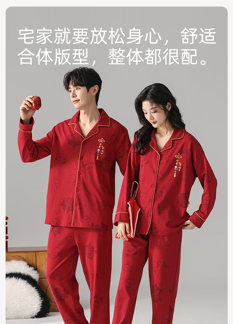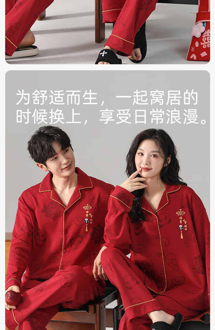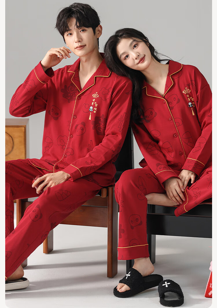 Fenton Kean's new pure cotton couple pajamas for wedding newlyweds, red simple style new suit, spring and autumn home clothes