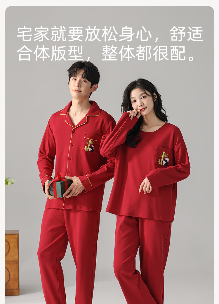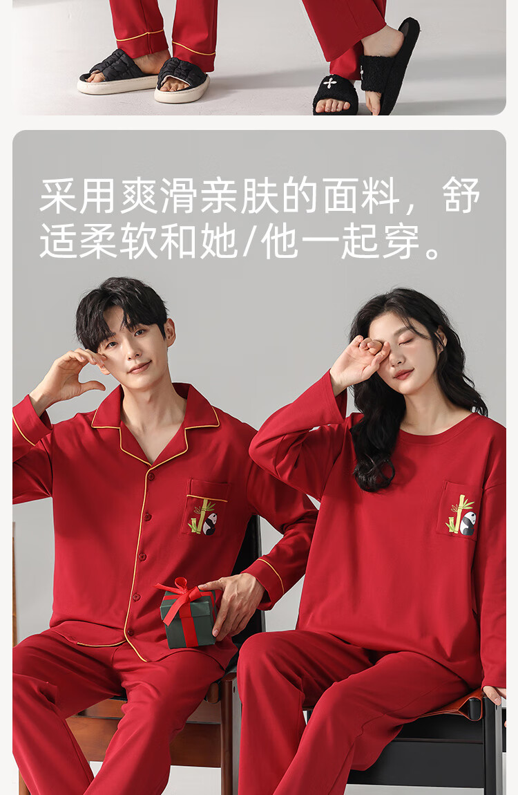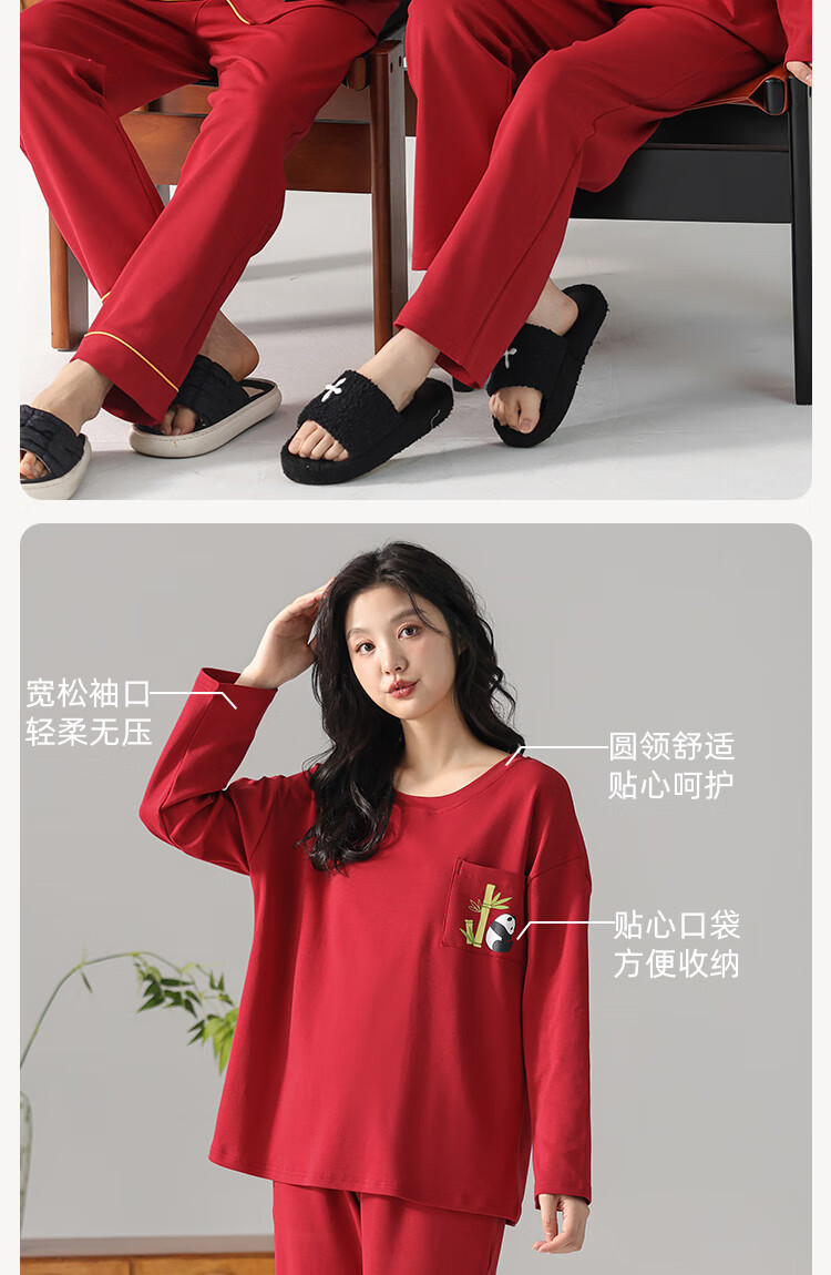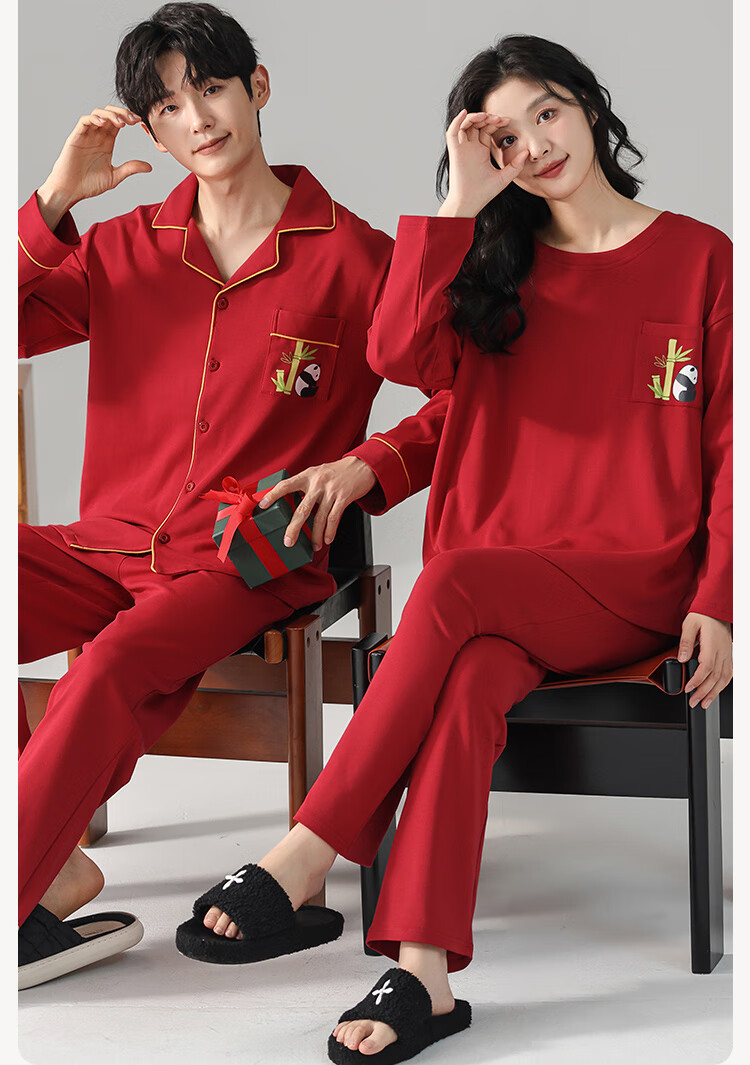 Fenton Kean's new wedding pajamas, newlywed couples suit, spring and autumn pure cotton long-sleeved trousers, bright red zodiac year home clothes