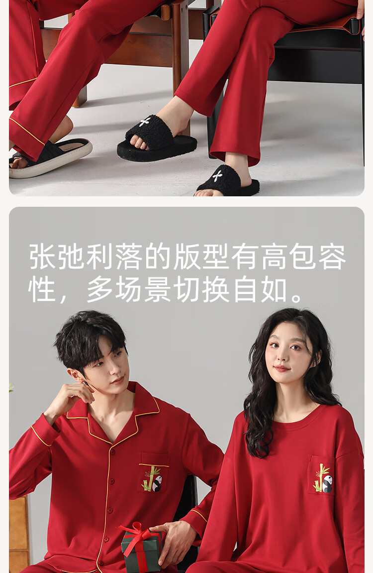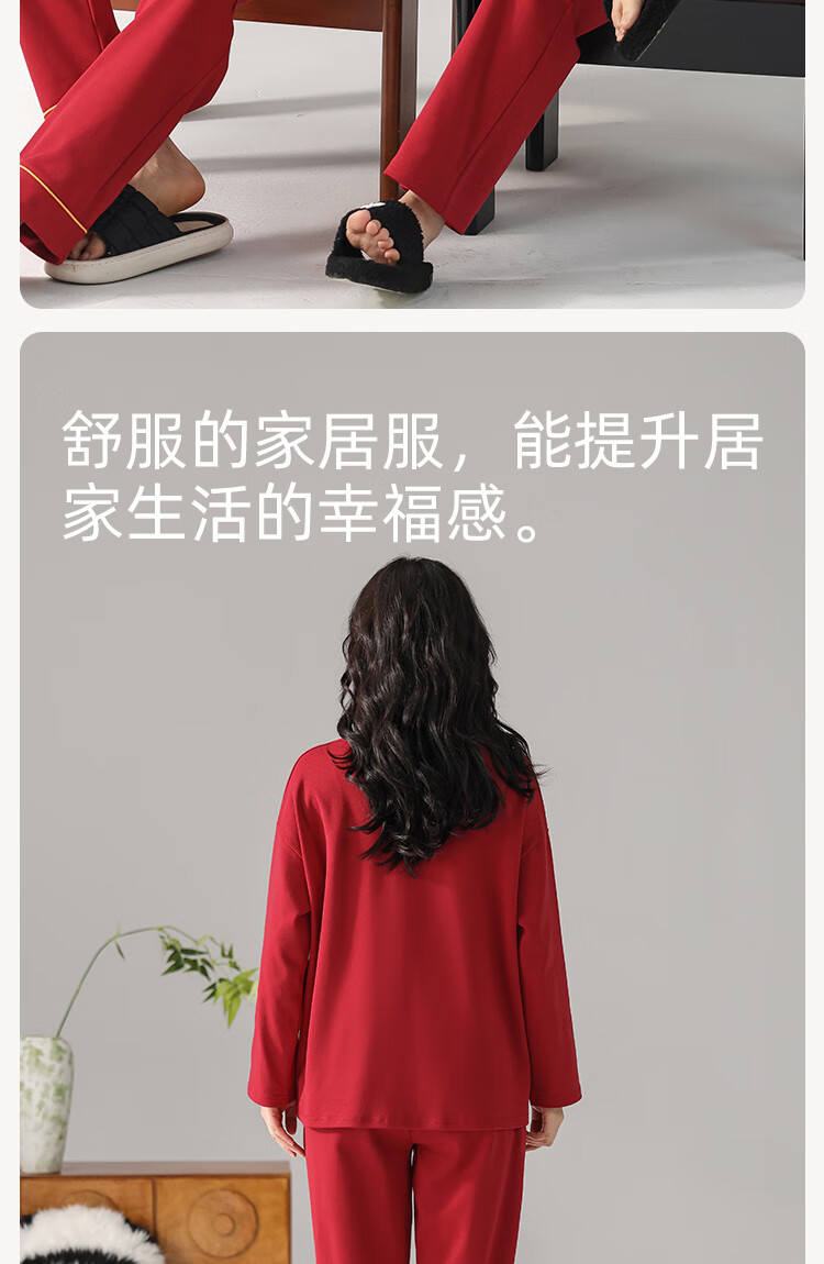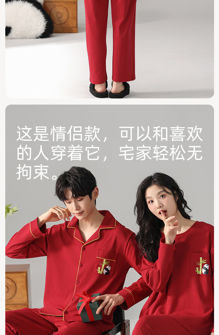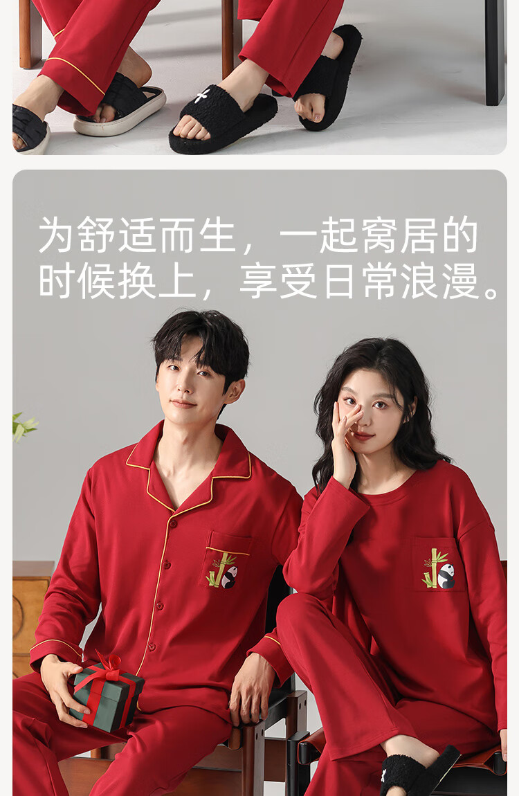 Fenton Kean's new wedding pajamas, newlywed couples suit, spring and autumn pure cotton long-sleeved trousers, bright red zodiac year home clothes