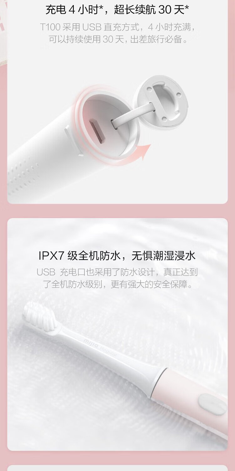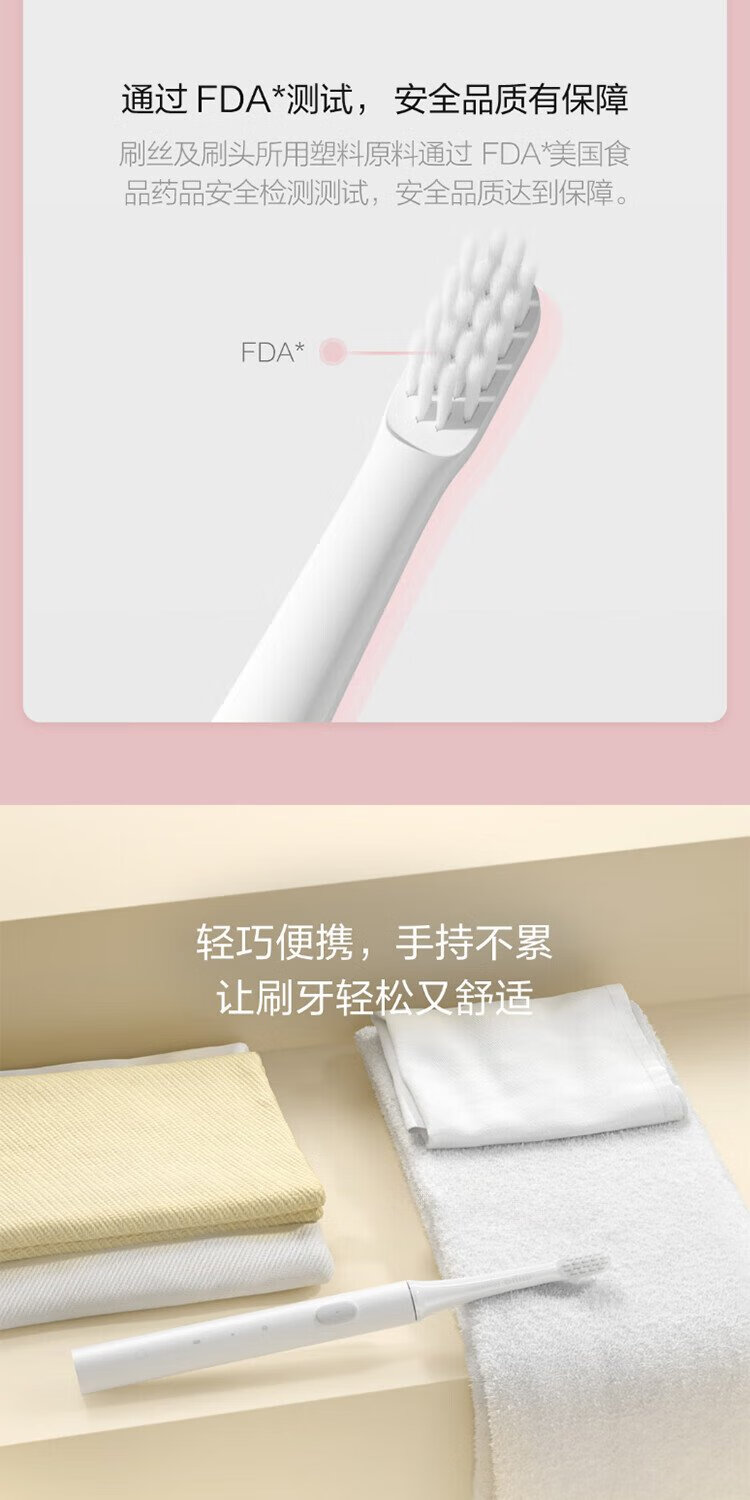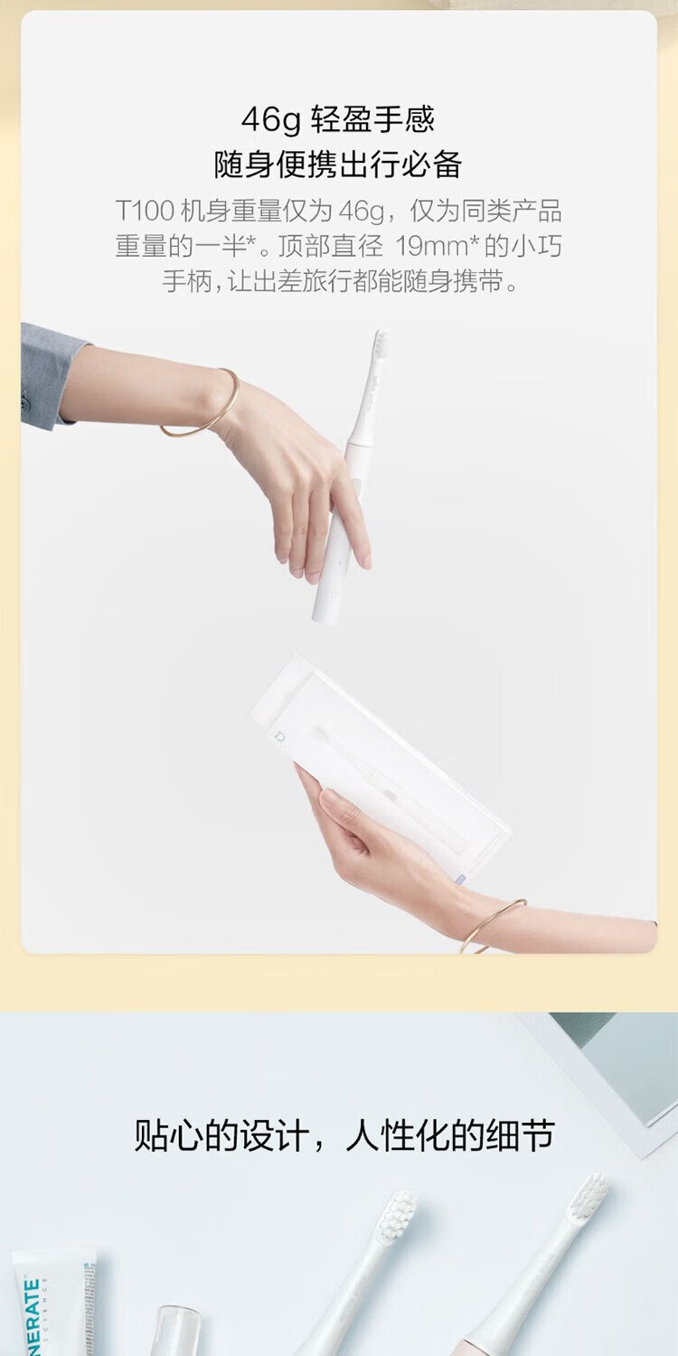 Xiaomi (MI) Mijia Electric Toothbrush Adult Couple Male and Female Birthday Gift Soft-Bristled Ultrasonic Practical Portable Wedding Popular Item Mid-Autumn Gift T100 White