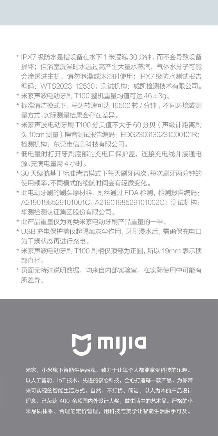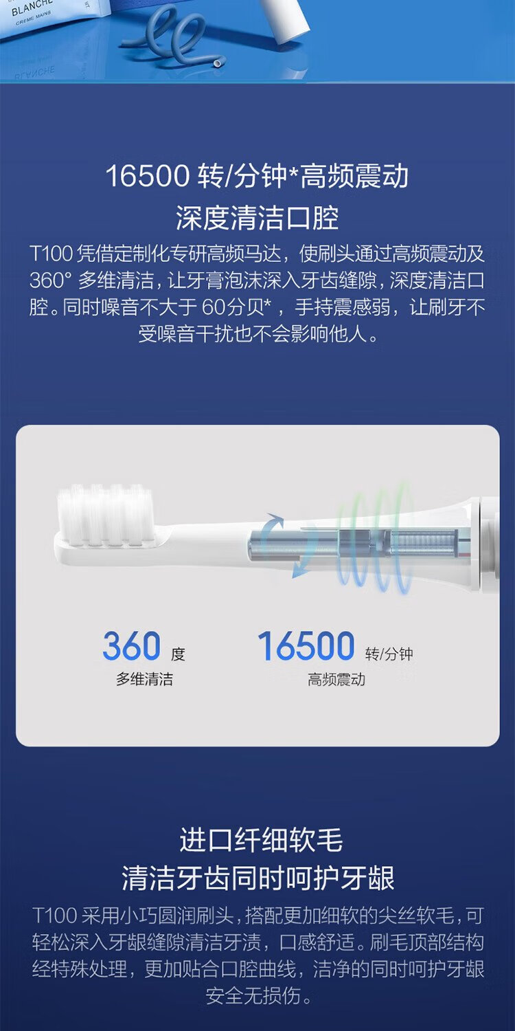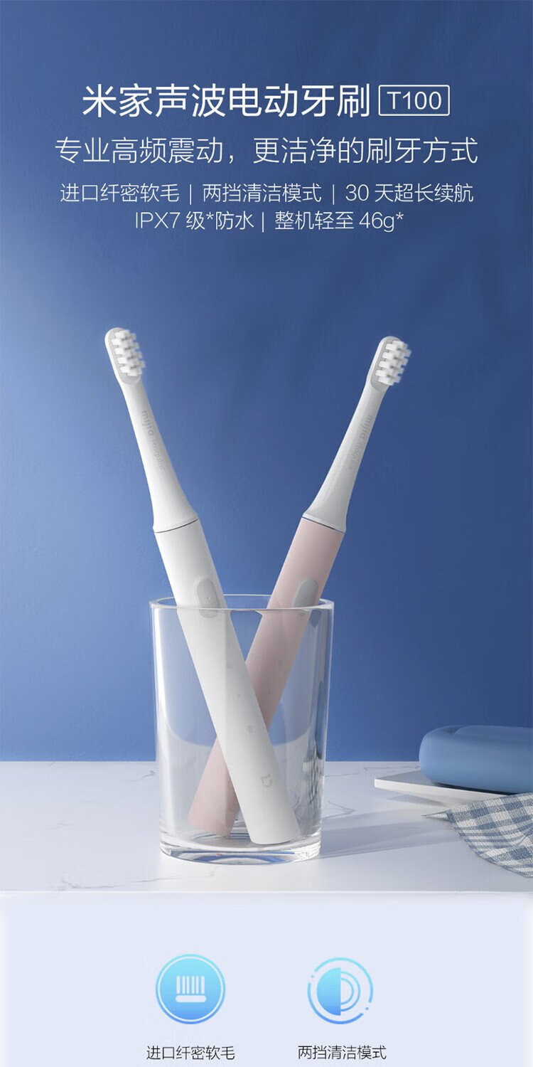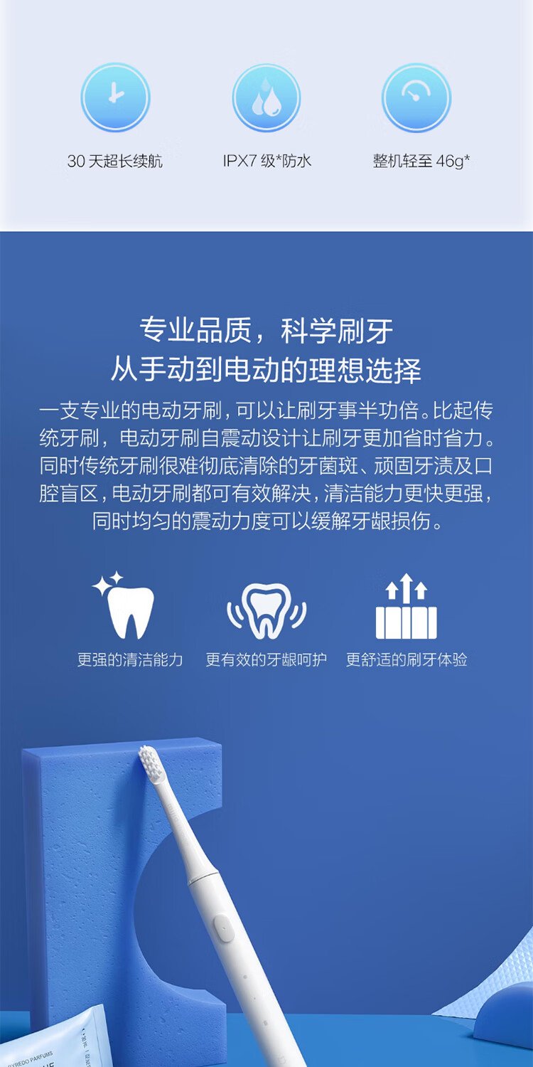 Xiaomi (MI) Mijia Electric Toothbrush Adult Couple Male and Female Birthday Gift Soft-Bristled Ultrasonic Practical Portable Wedding Popular Item Mid-Autumn Gift T100 White