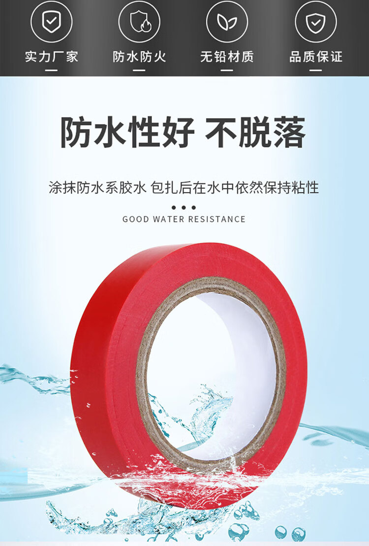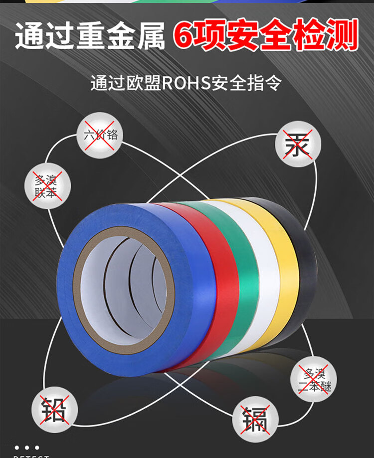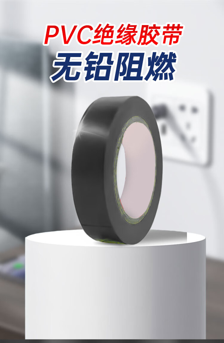 豪思克普 电工绝缘胶带 5卷 黑色18mm*10Y*0.13mm电工胶带 电气装修阻燃 PVC防水无铅600V耐酸碱胶布