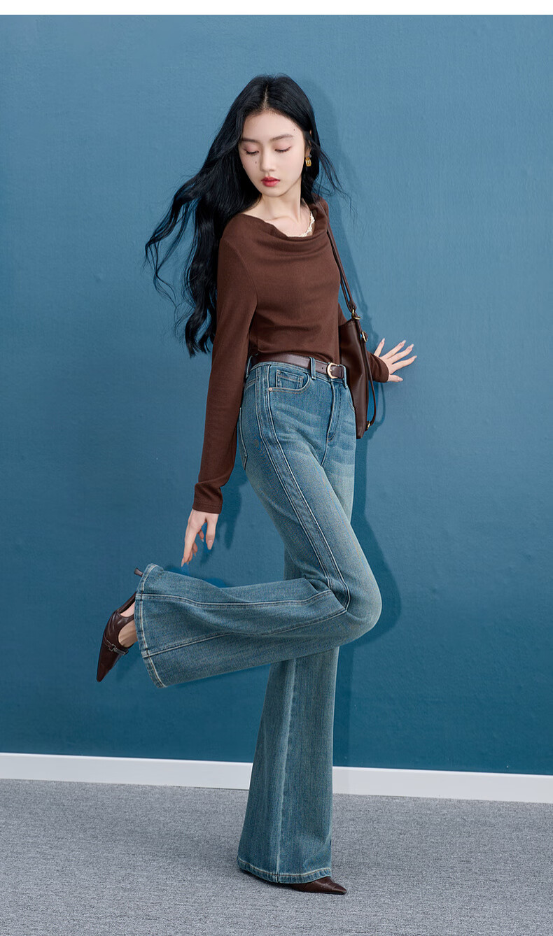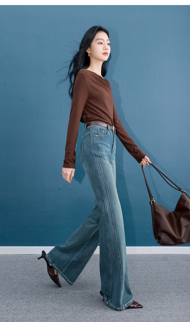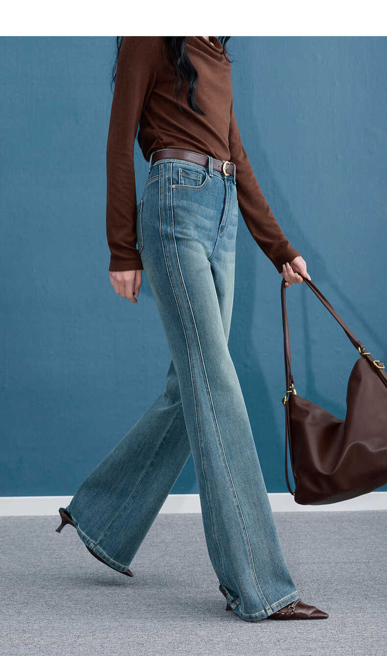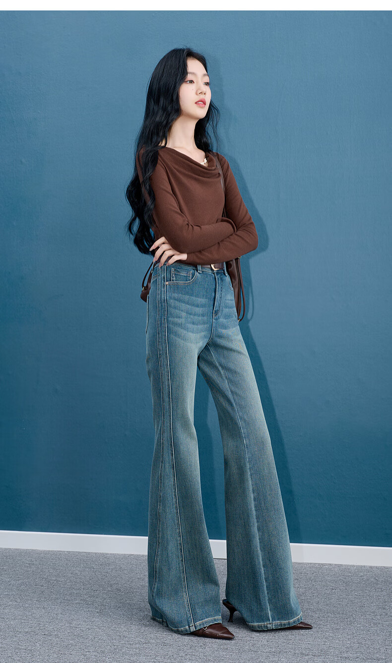 Sancai 2025 Autumn New High-waisted Bootleg Jeans Washed Flare Pants Casual Pants Retro S