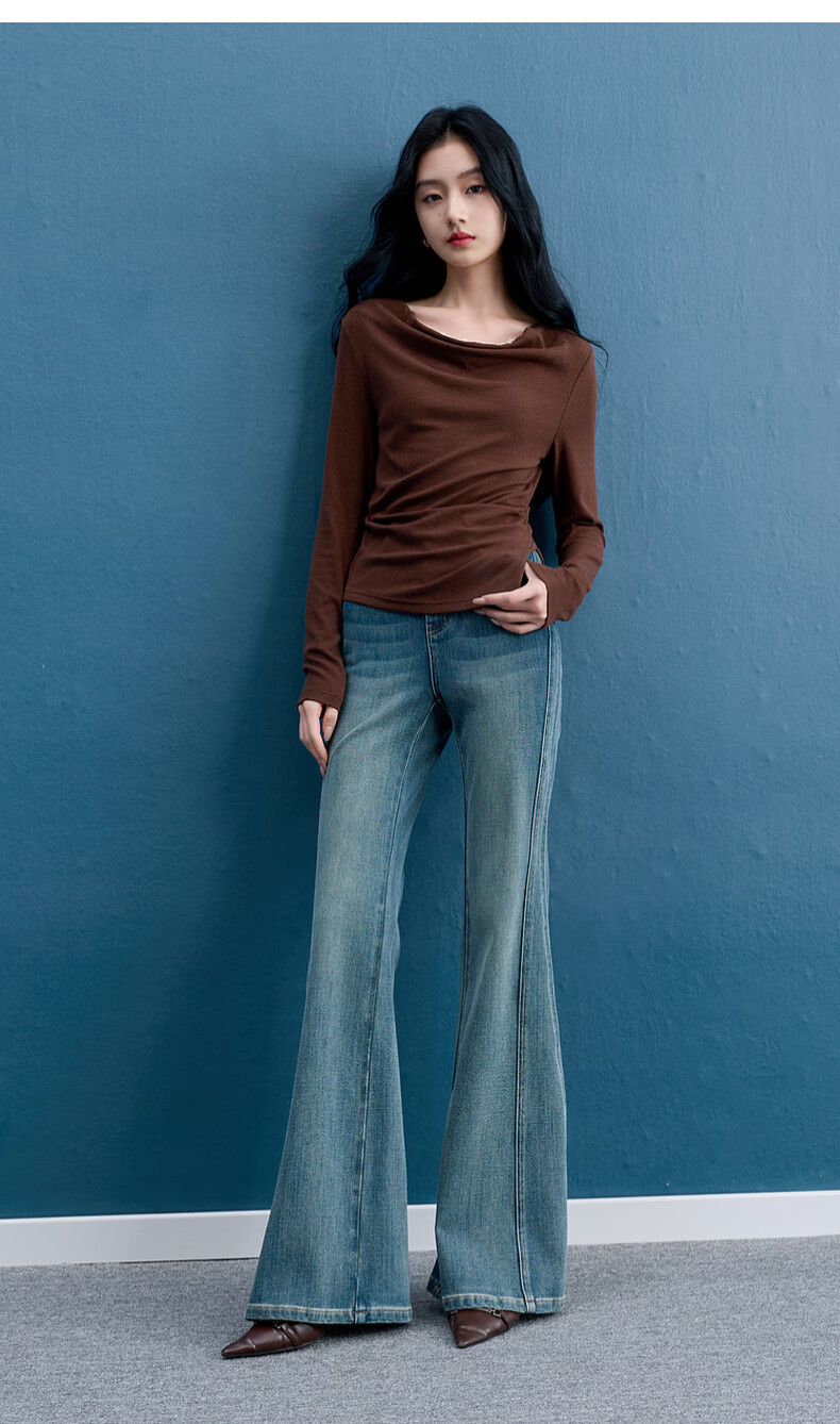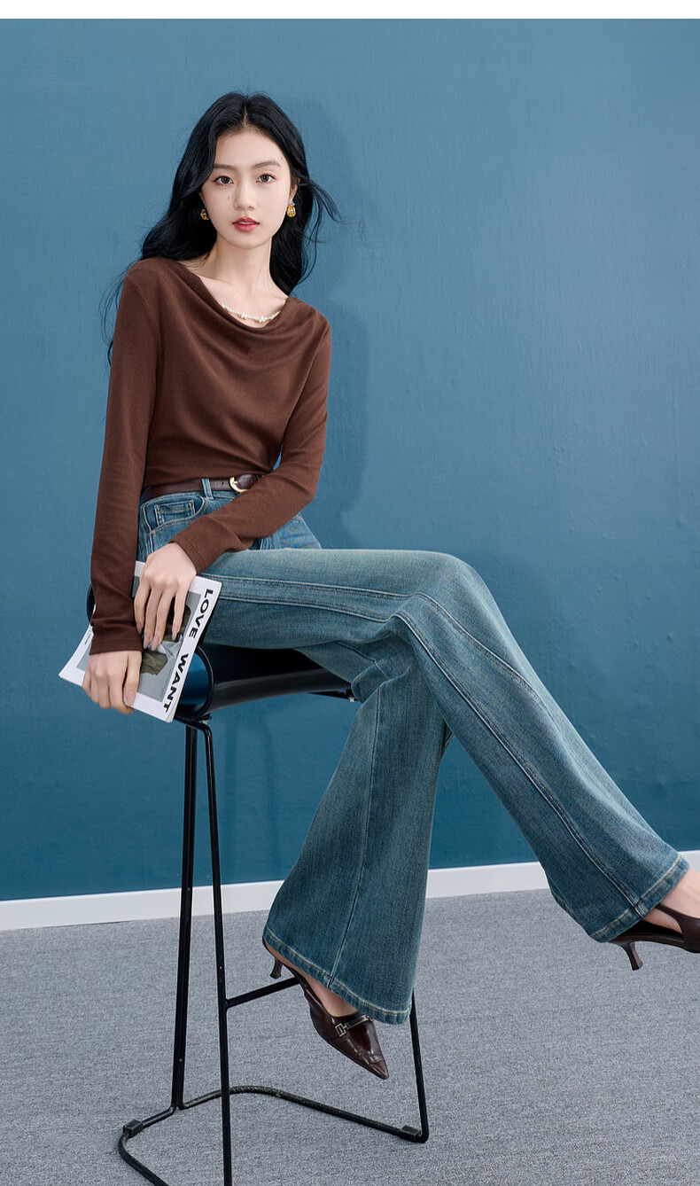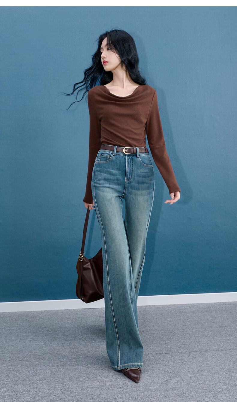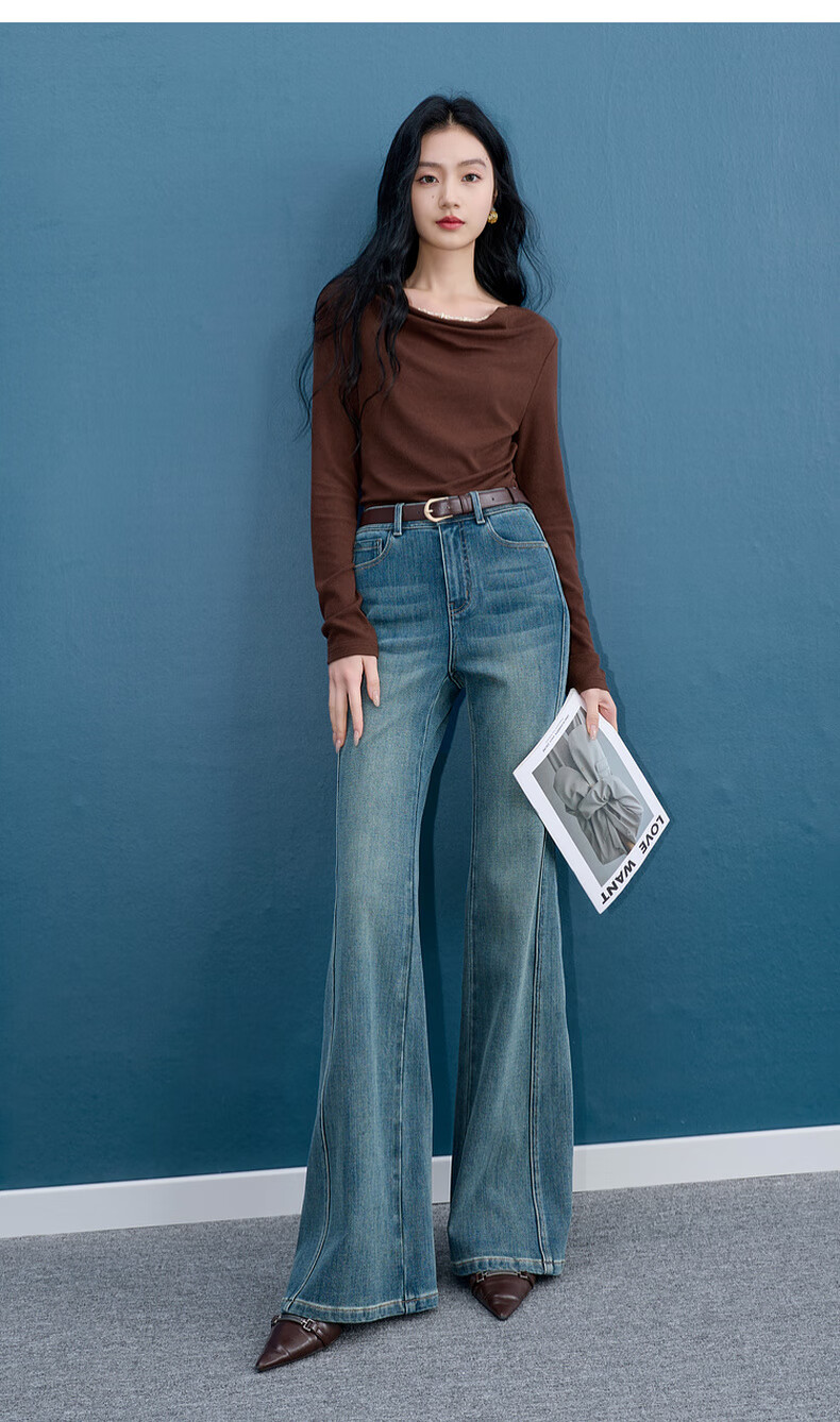Sancai 2025 Autumn New High-waisted Bootleg Jeans Washed Flare Pants Casual Pants Retro S
