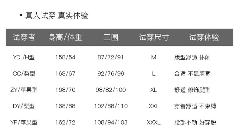 China (cm) 160-165/84-86 165-170 / 88-90 167-172 / 92-96 168-173 / 98-102 170-176 / 106-110