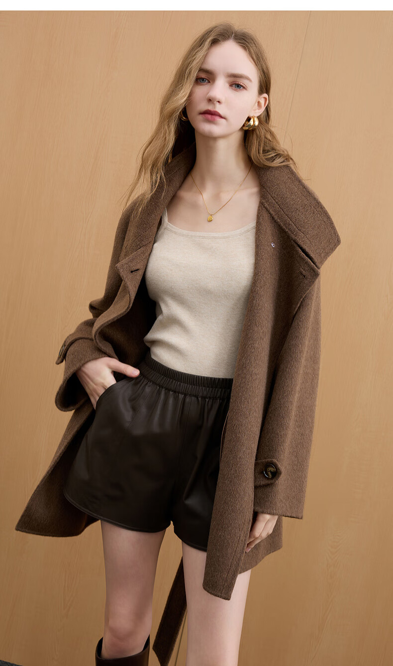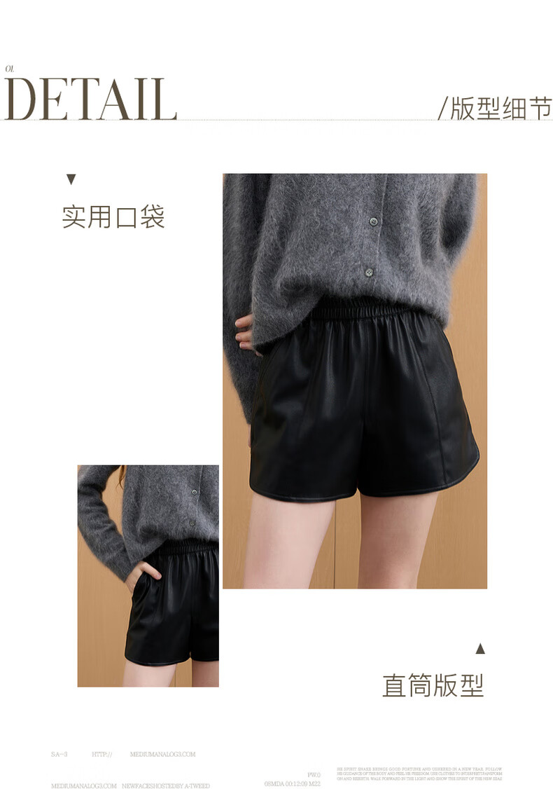 Sancai 2025 Winter New PU Leather Shorts Elastic Waist Casual Pants Boot Pants Versatile, Slim and Trendy M