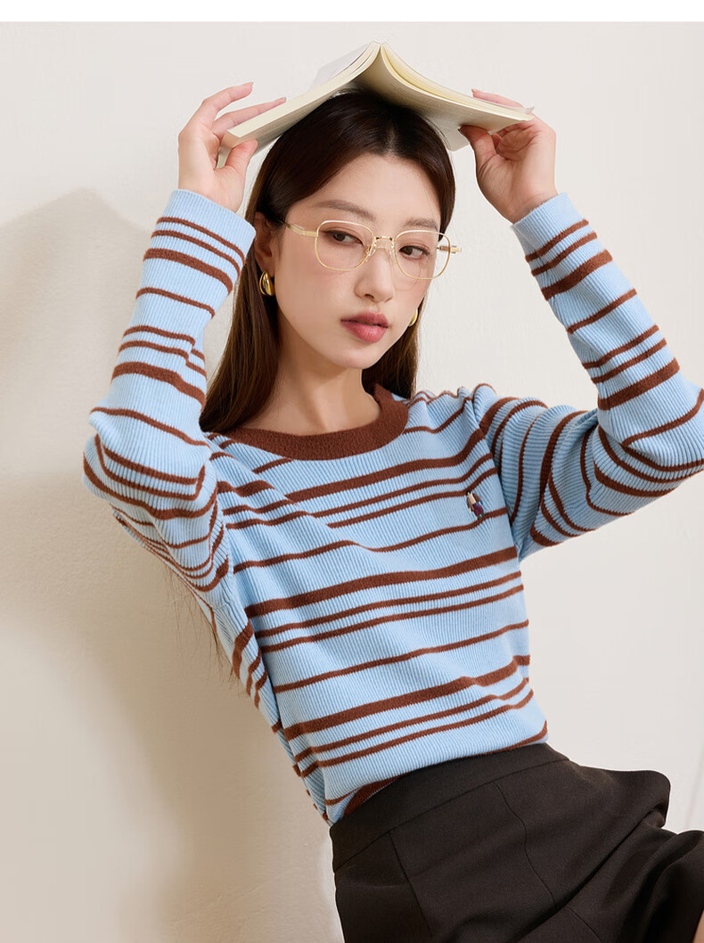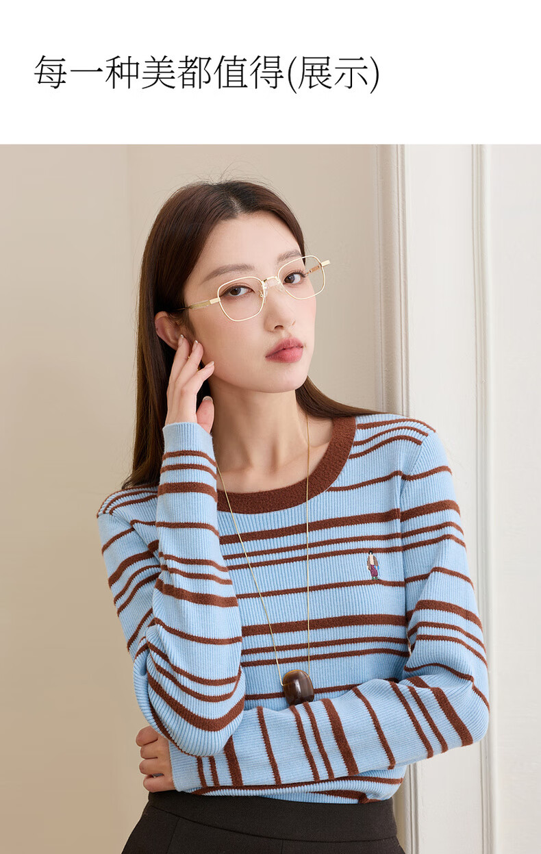 Tricolor wool + mulberry silk plus size women's 2025 winter new round neck knitted sweater for fat girls