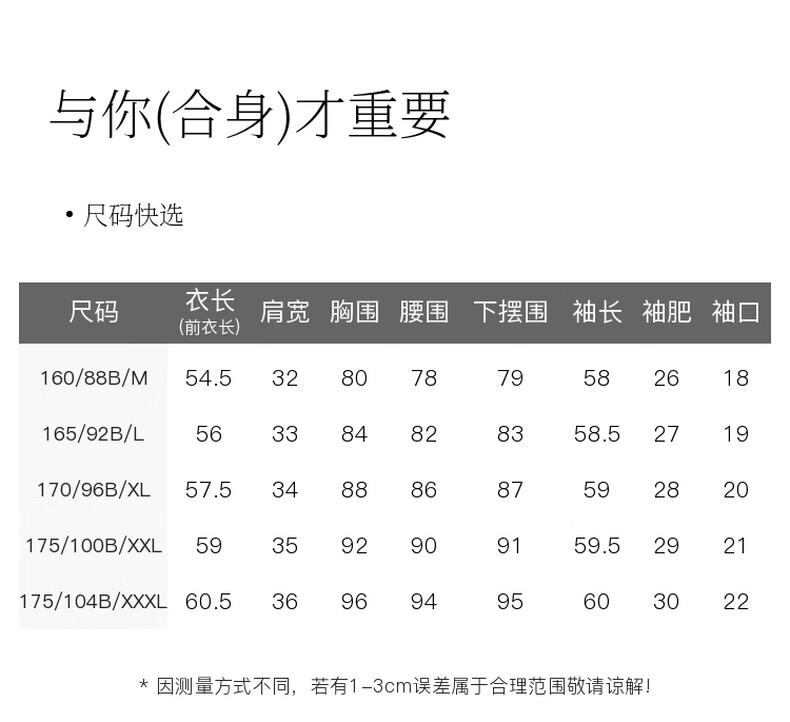 China (cm) 160-165/84-86 165-170 / 88-90 167-172 / 92-96 168-173 / 98-102 170-176 / 106-110