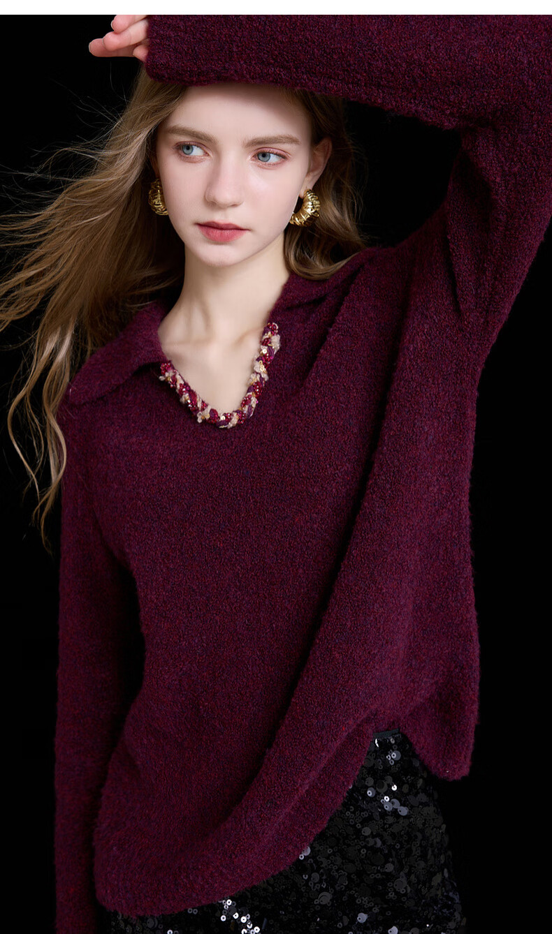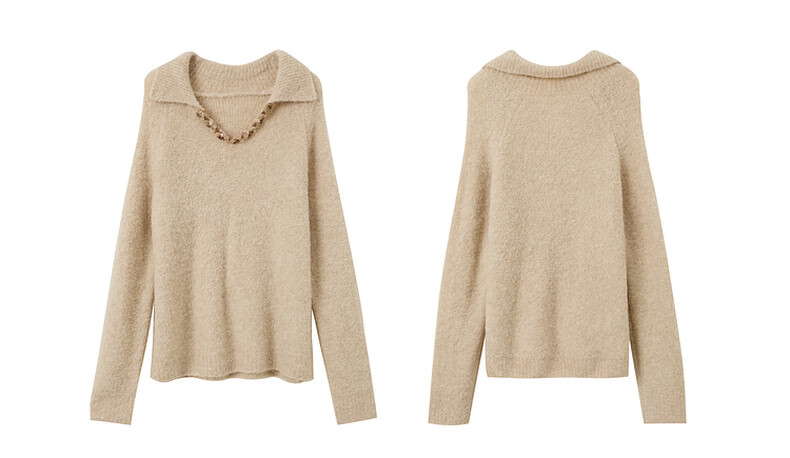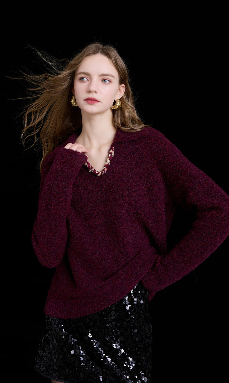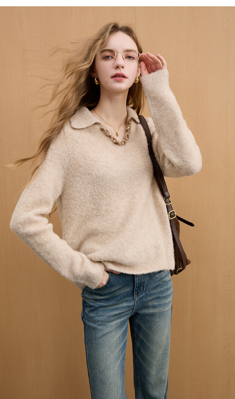 Sancai 2025 new winter style loose lapel sweater long-sleeved pullover sweater warm and simple M