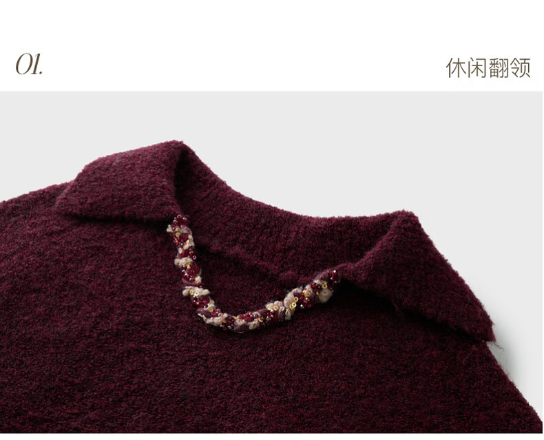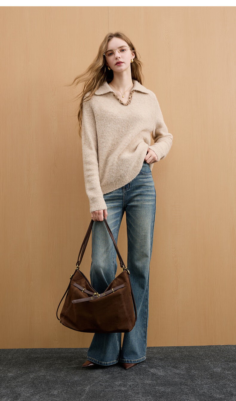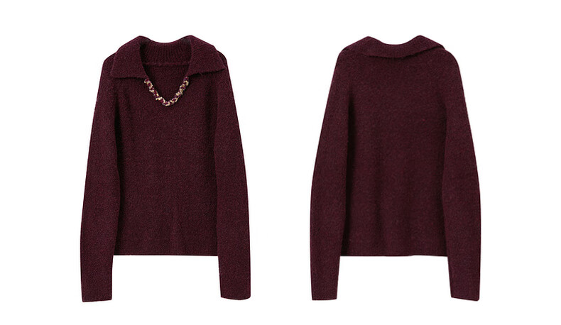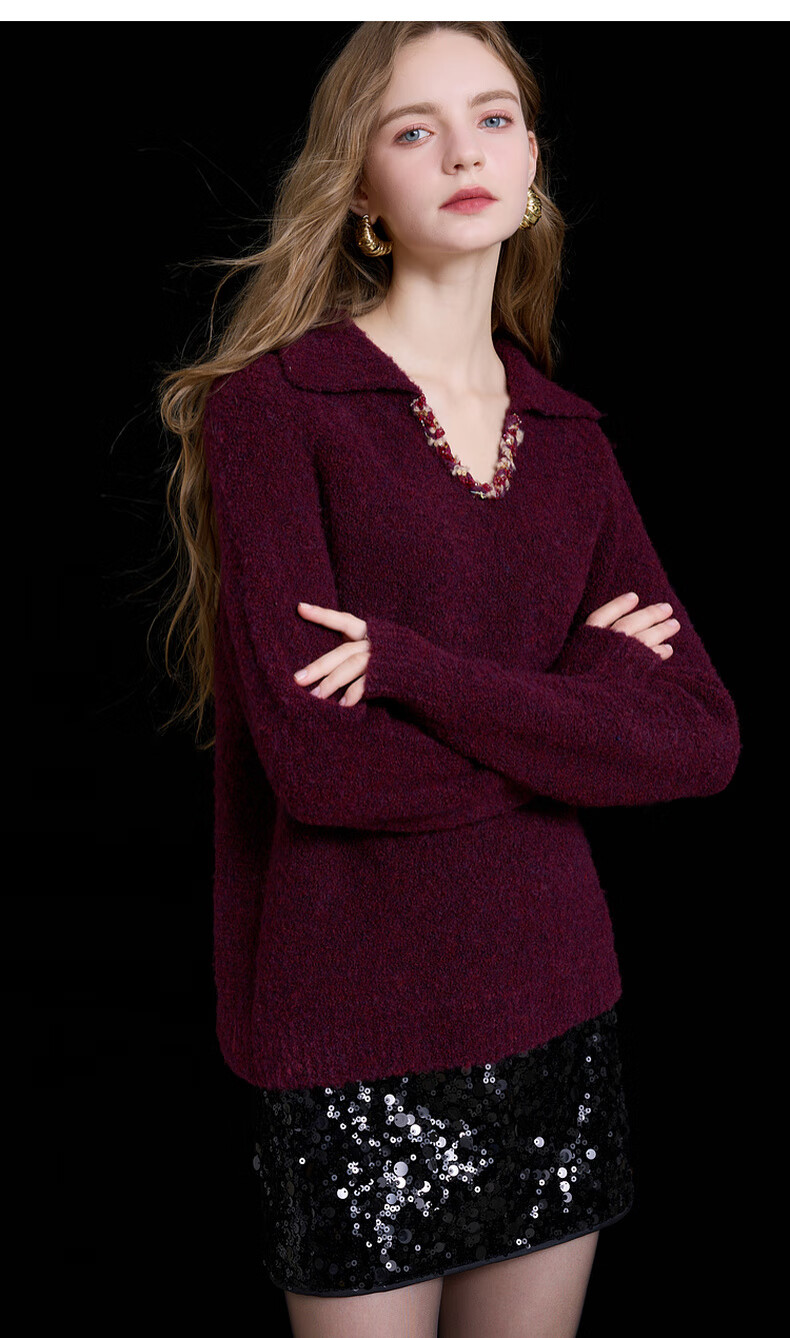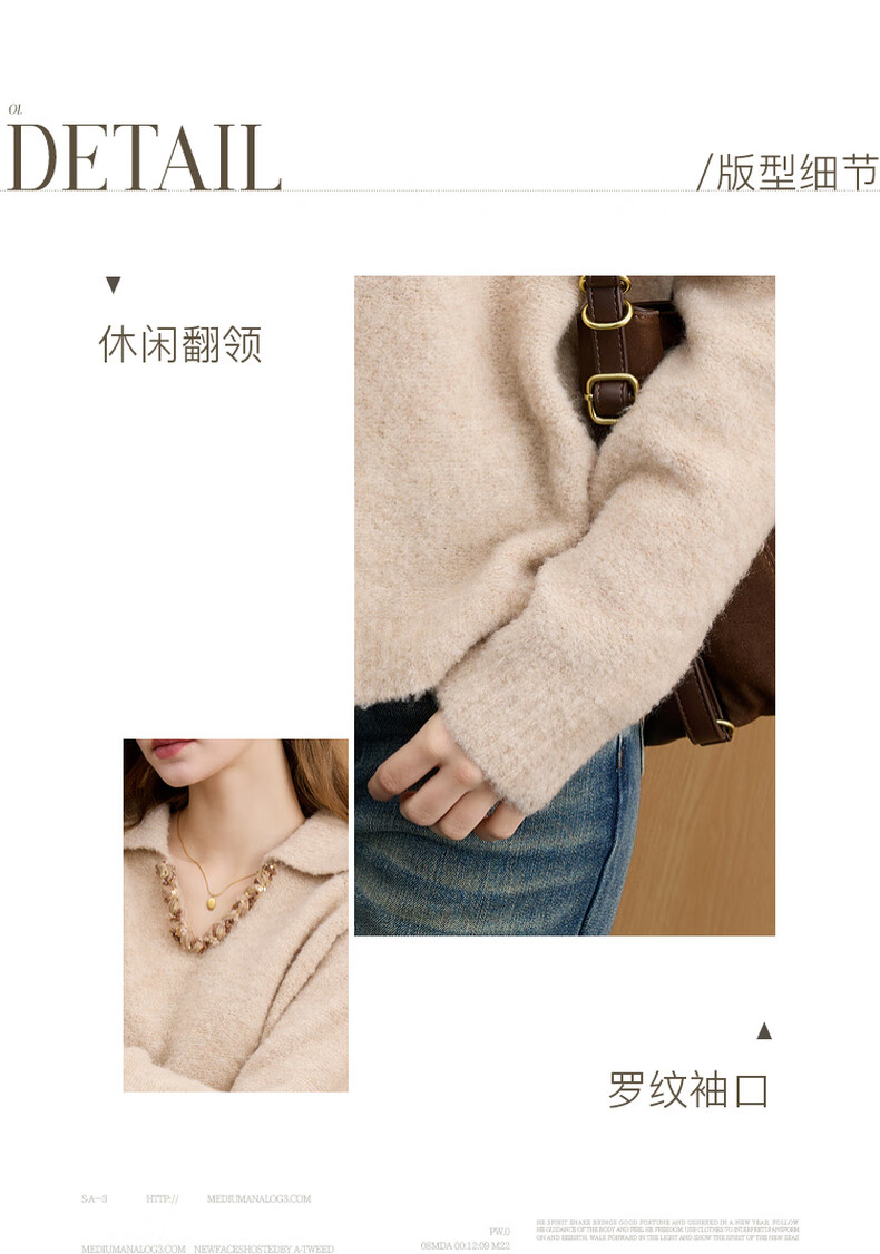 Sancai 2025 new winter style loose lapel sweater long-sleeved pullover sweater warm and simple M