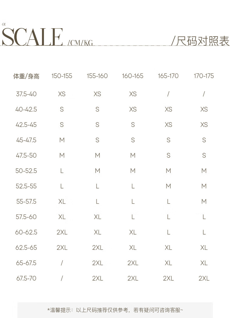 China (cm) 160-165/84-86 165-170 / 88-90 167-172 / 92-96 168-173 / 98-102 170-176 / 106-110