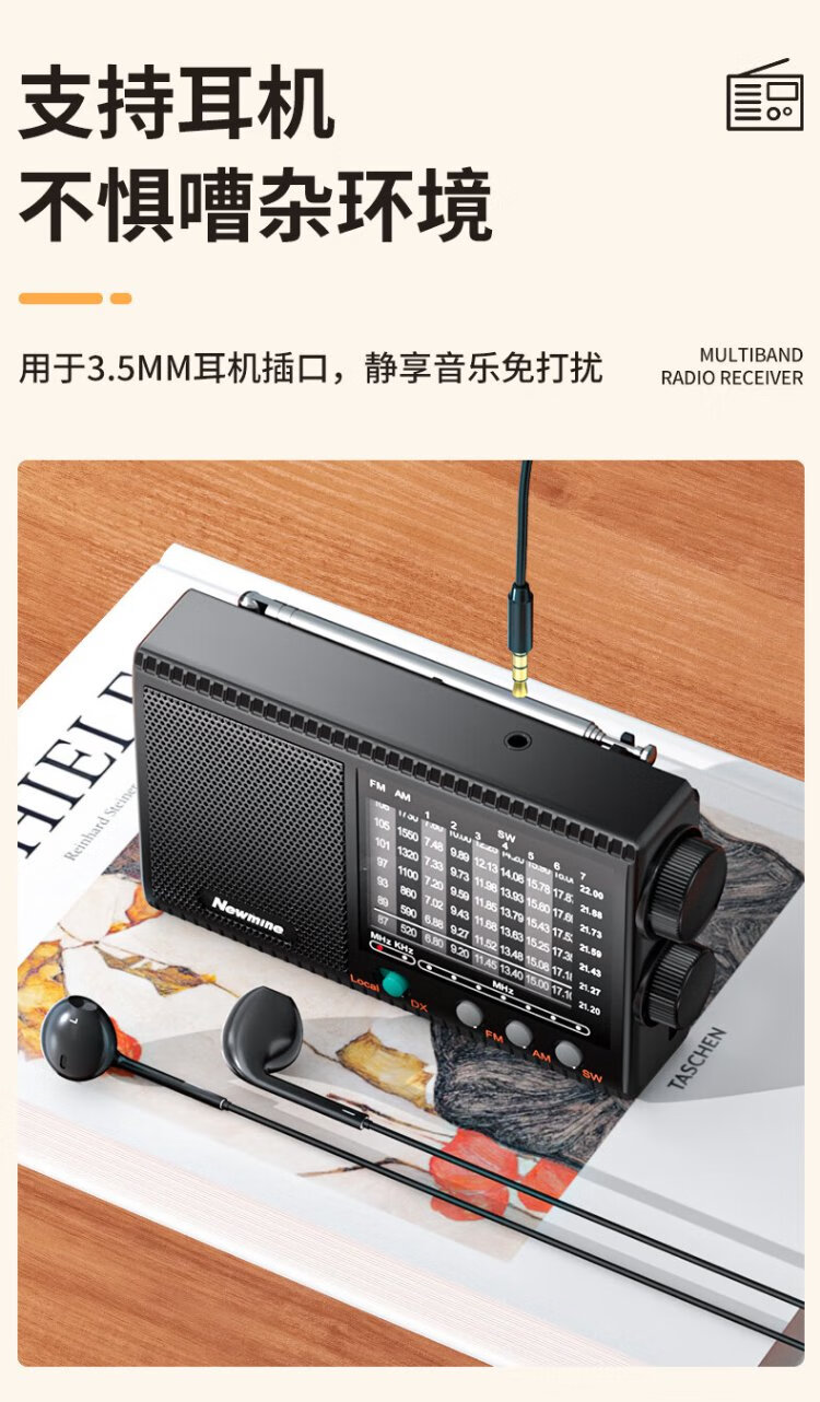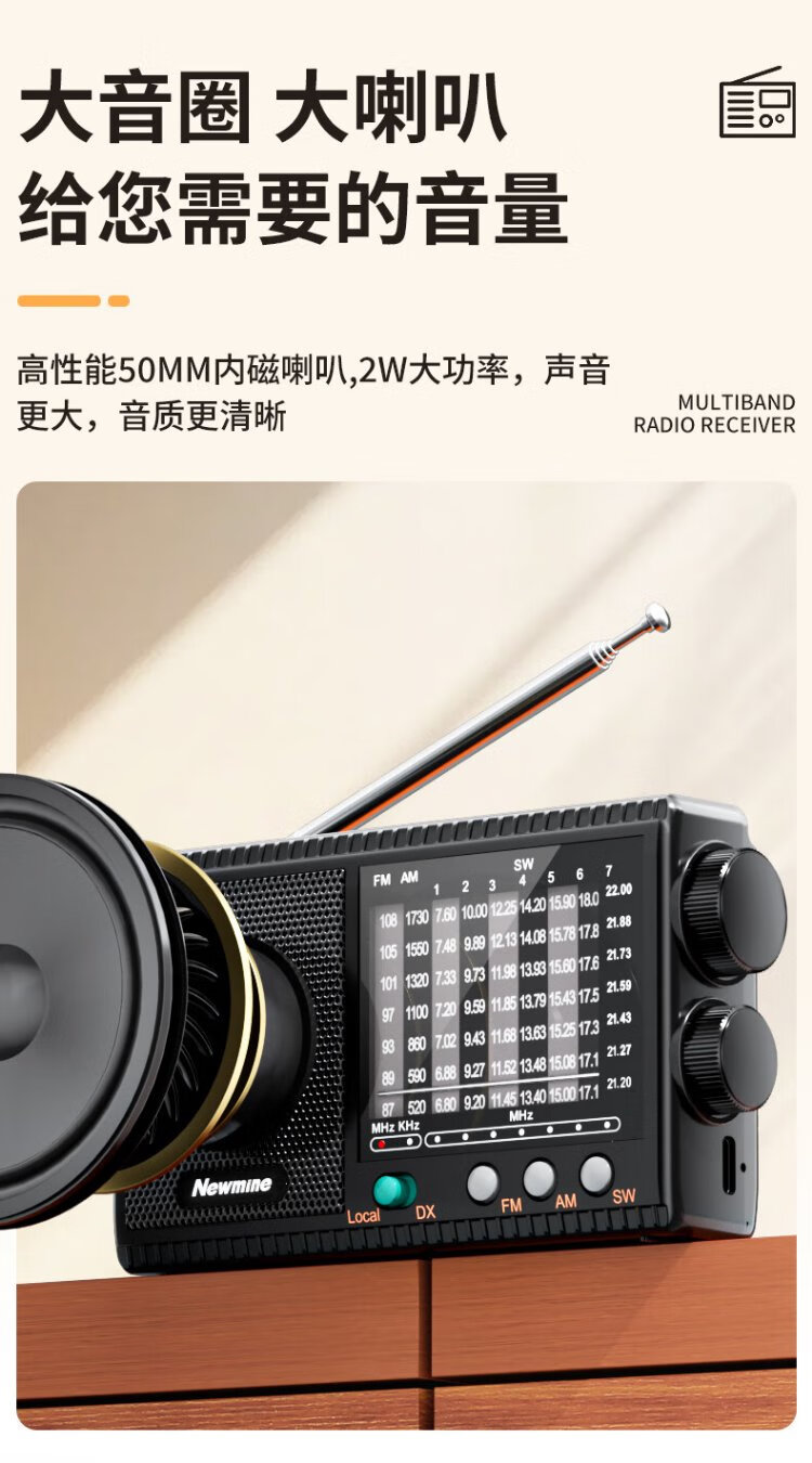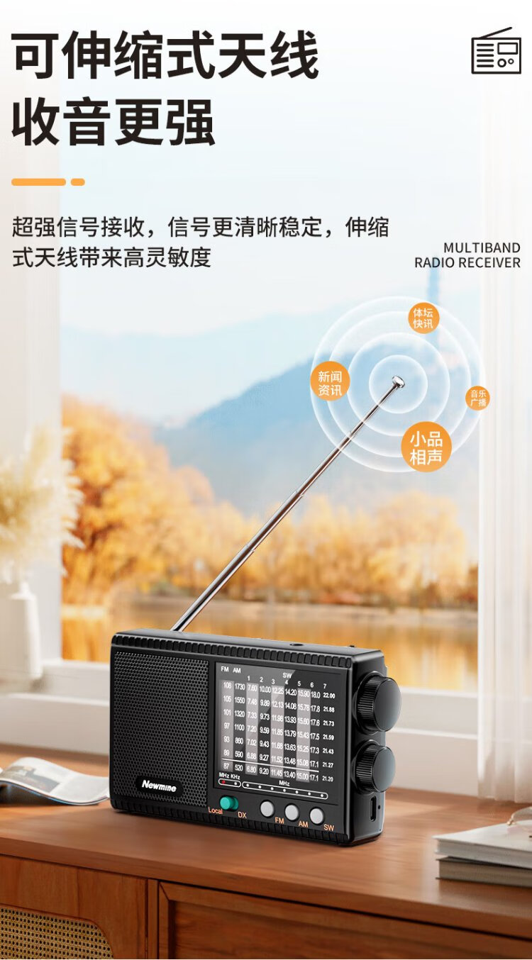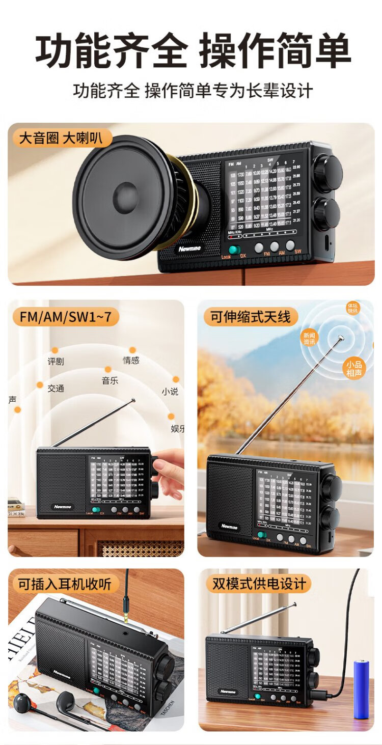 Newmine T-1001 multi-band radio for the elderly with large volume semiconductor pluggable headphone jack mini portable rechargeable high-power speaker opera player
