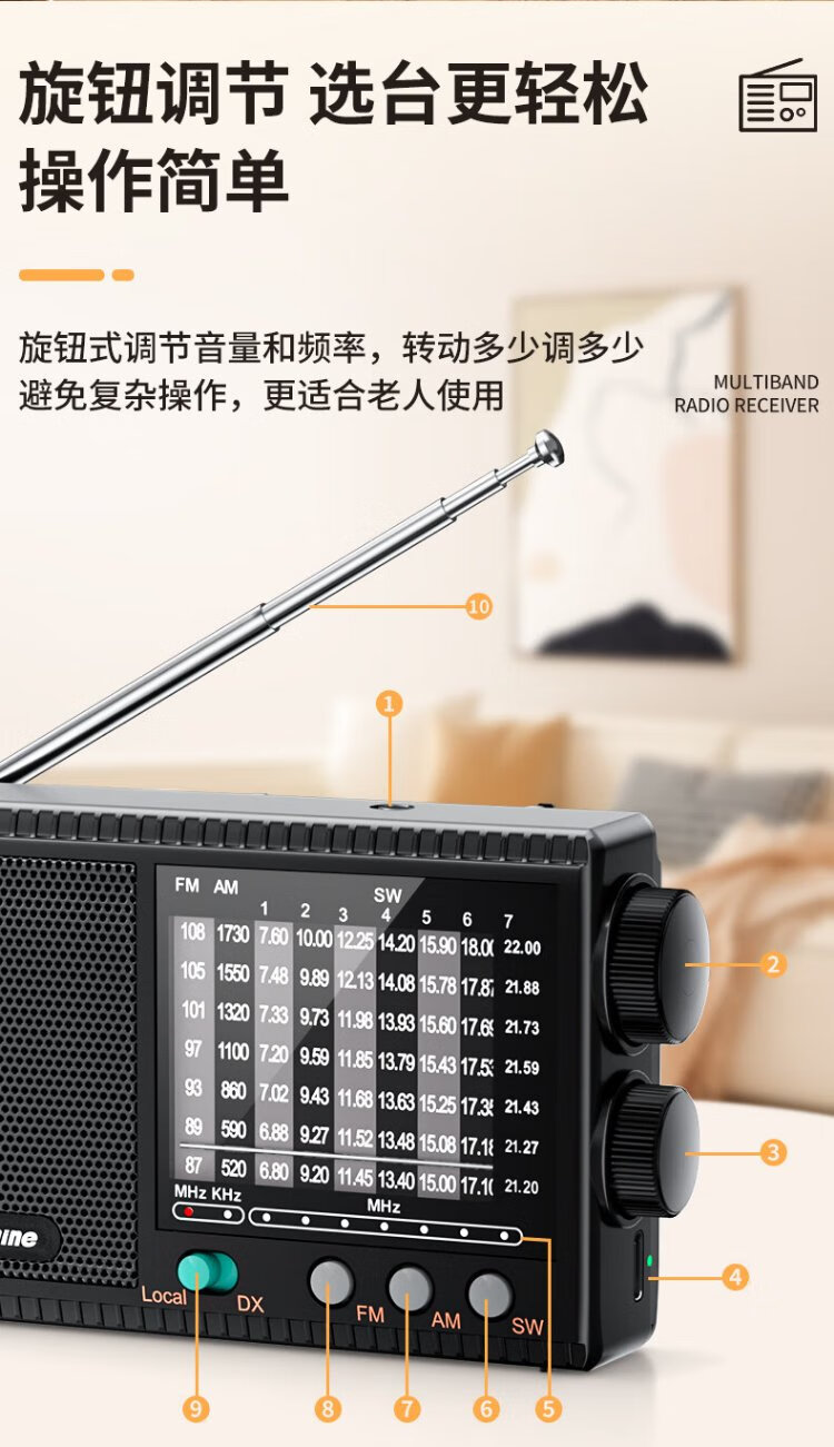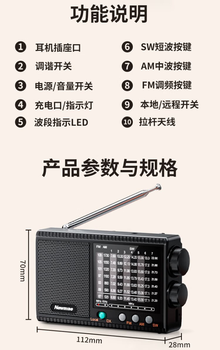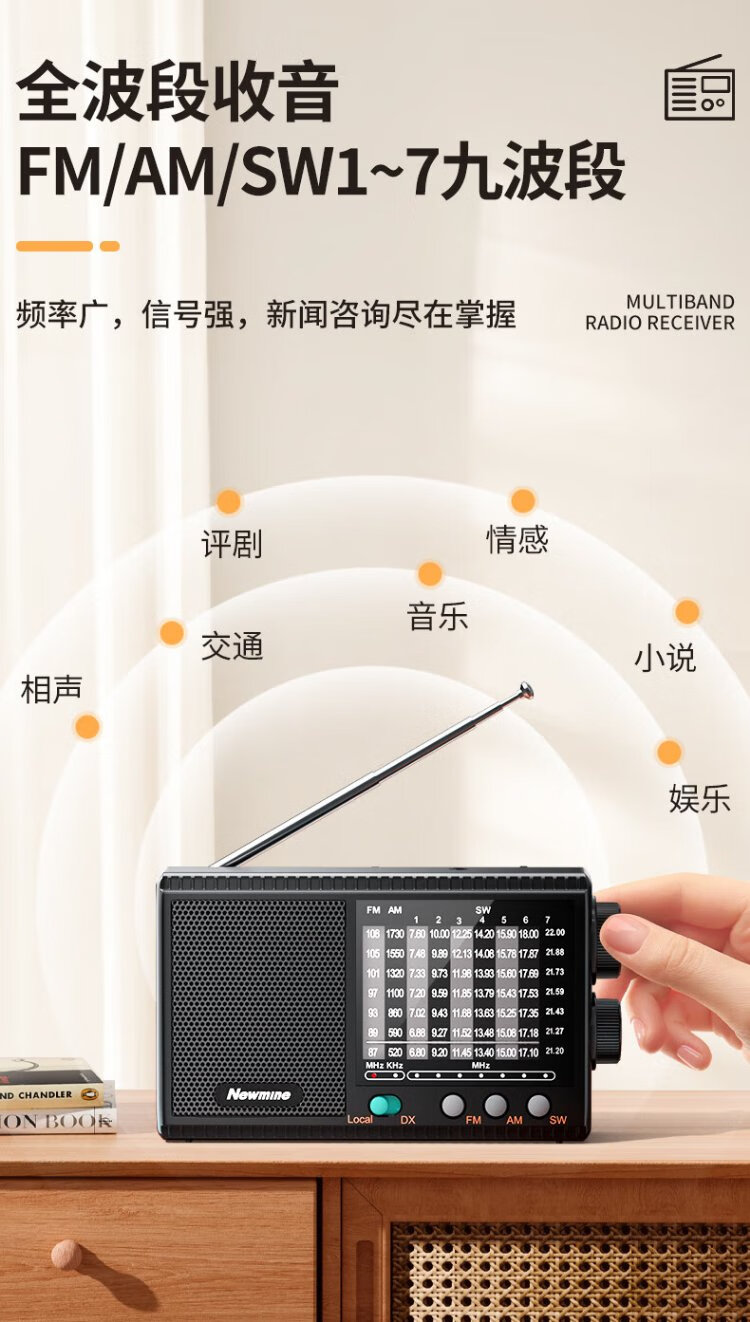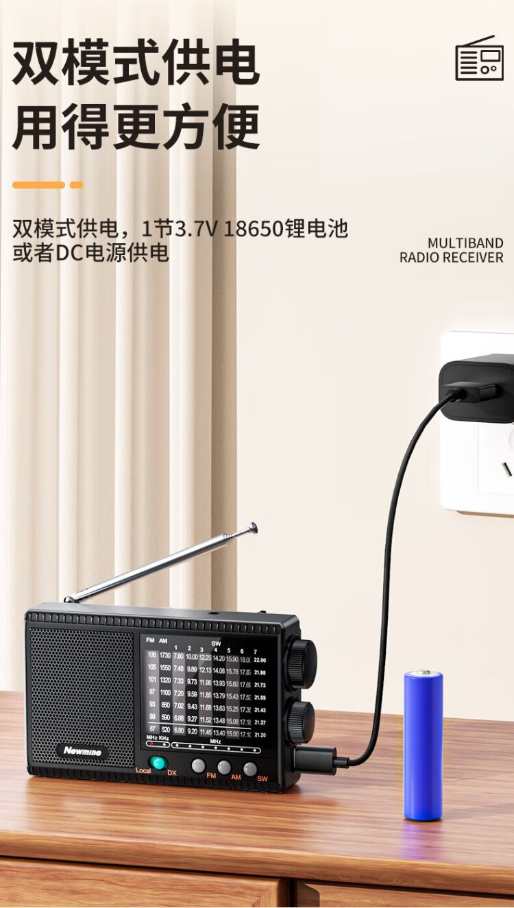 Newmine T-1001 multi-band radio for the elderly with large volume semiconductor pluggable headphone jack mini portable rechargeable high-power speaker opera player