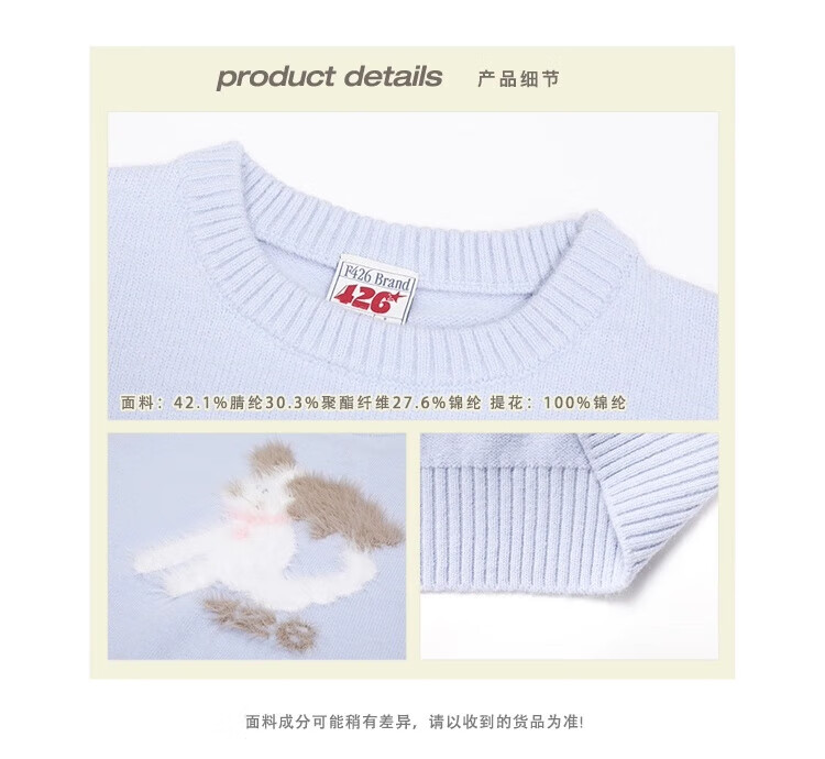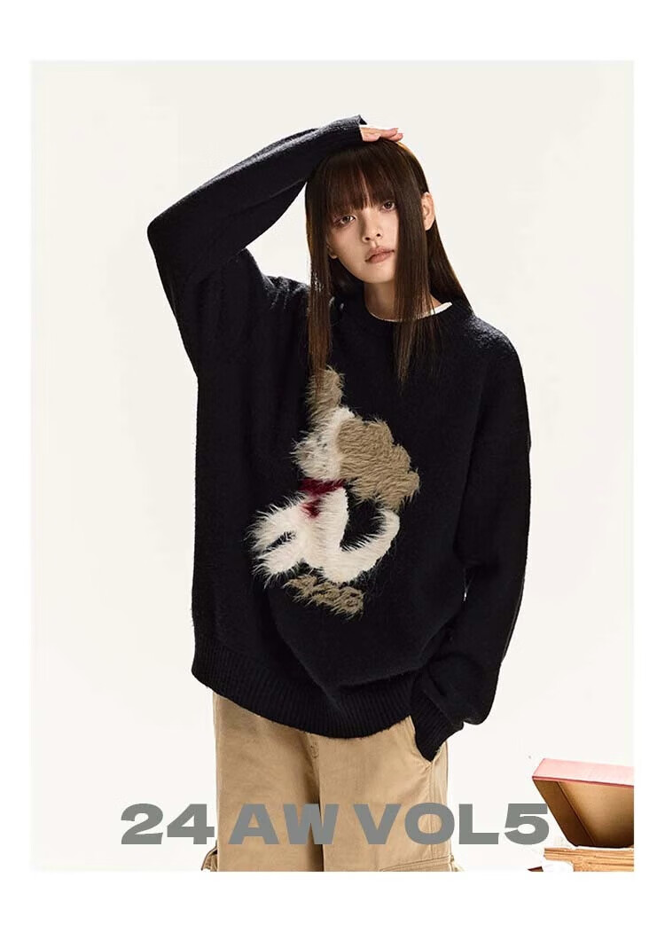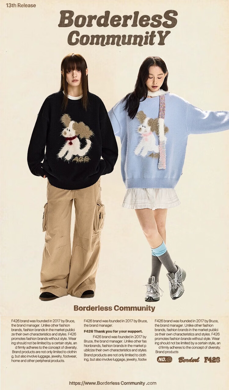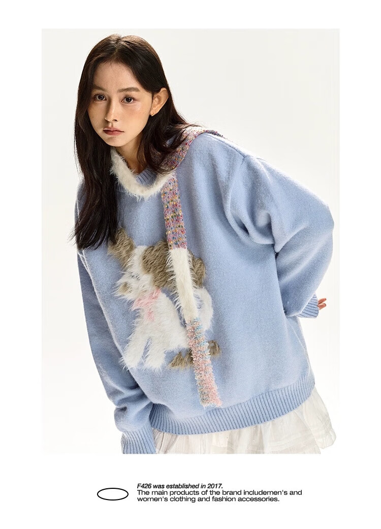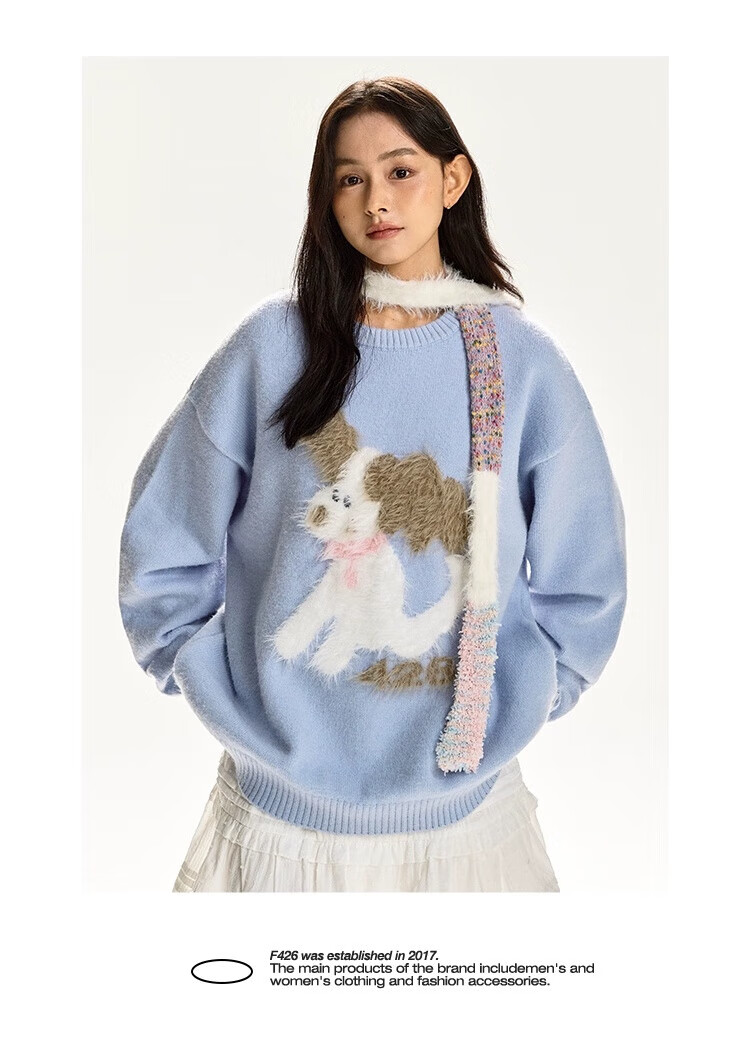F426官方店国潮牌情侣休闲宽松时尚毛绒小狗提花毛衣 黄色 S