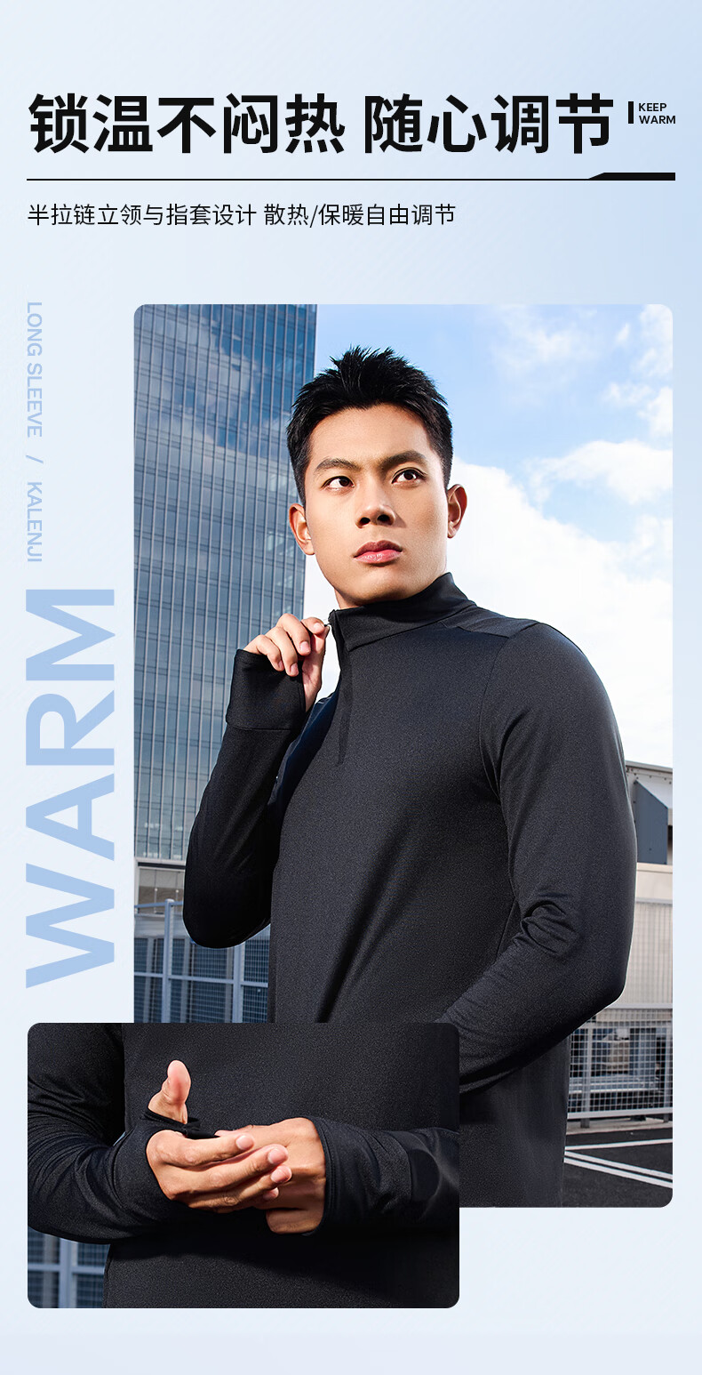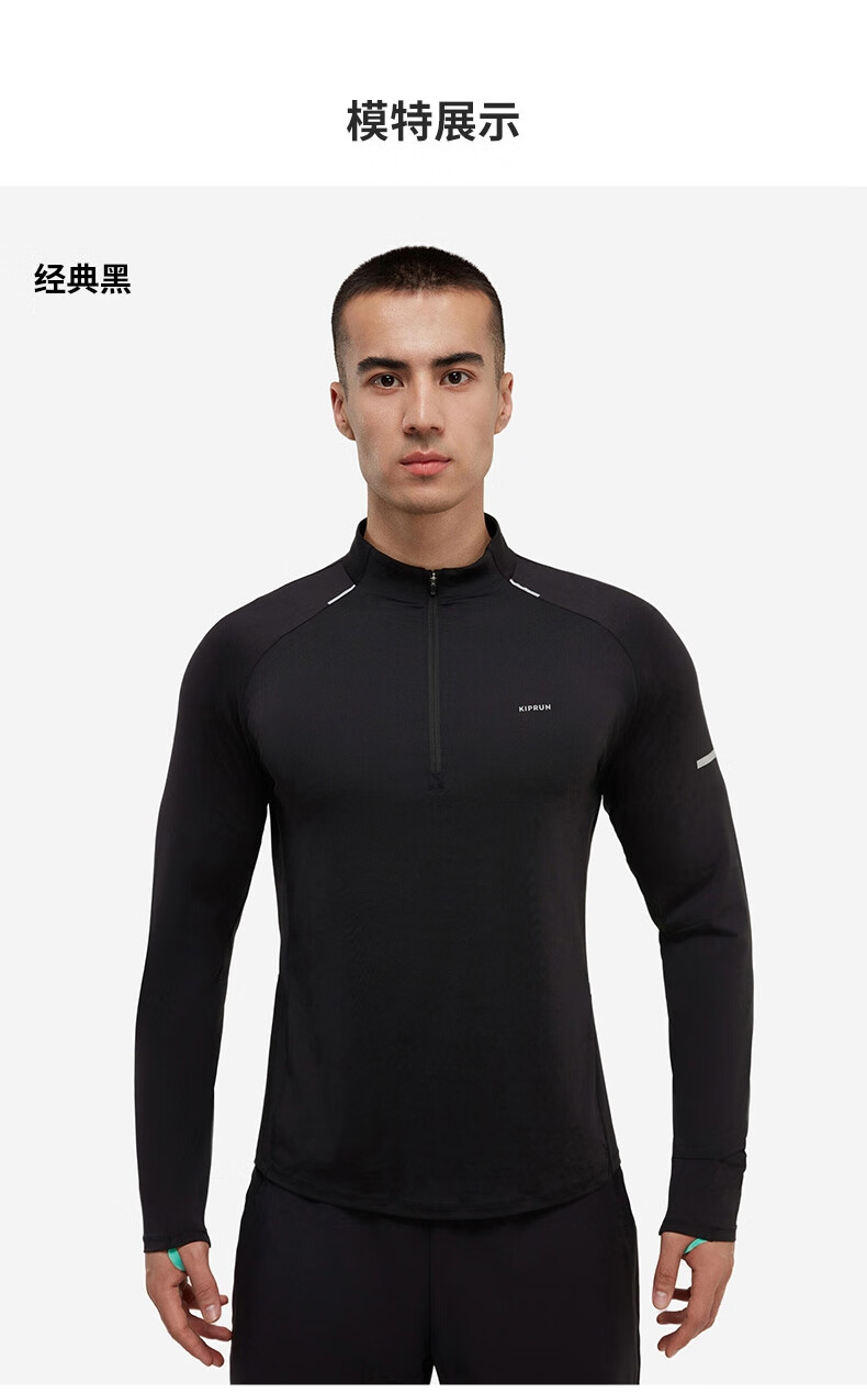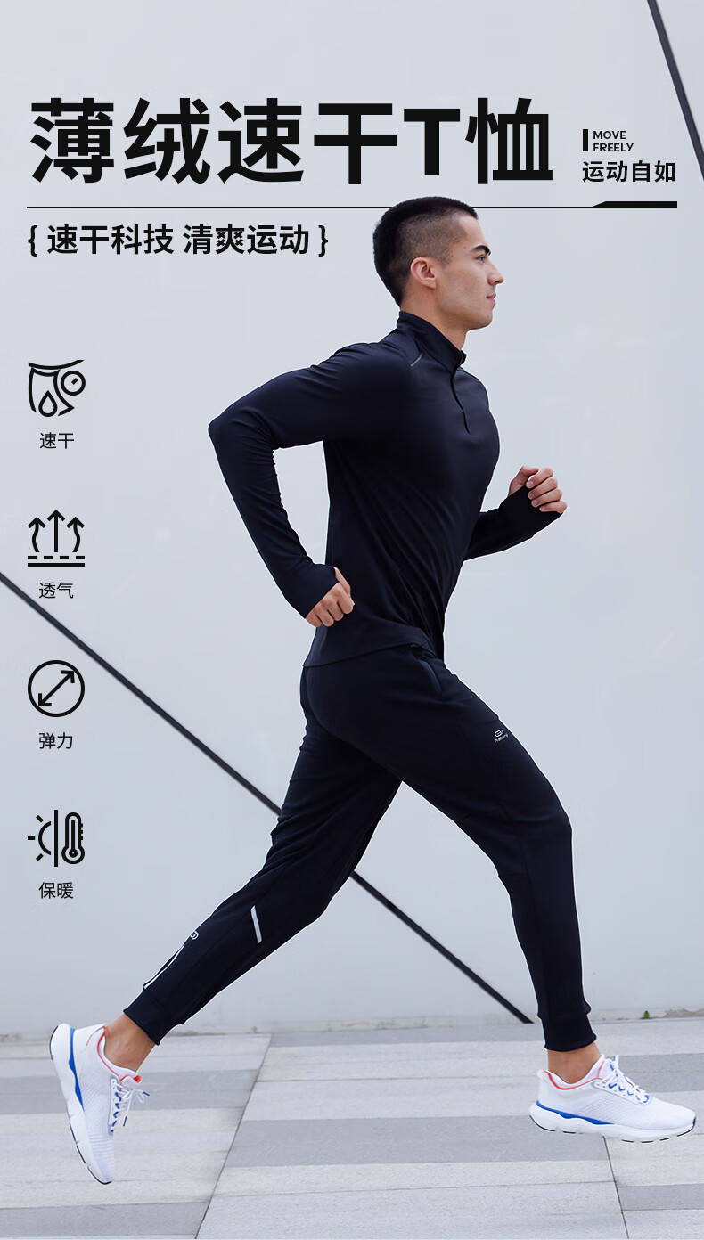 Decathlon (DECATHLON) winter quick-drying long-sleeved T-shirt men's training clothes sports quick-drying clothing fitness running top RUNM classic black (warm and quick-drying) XL