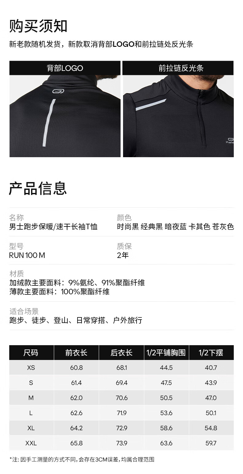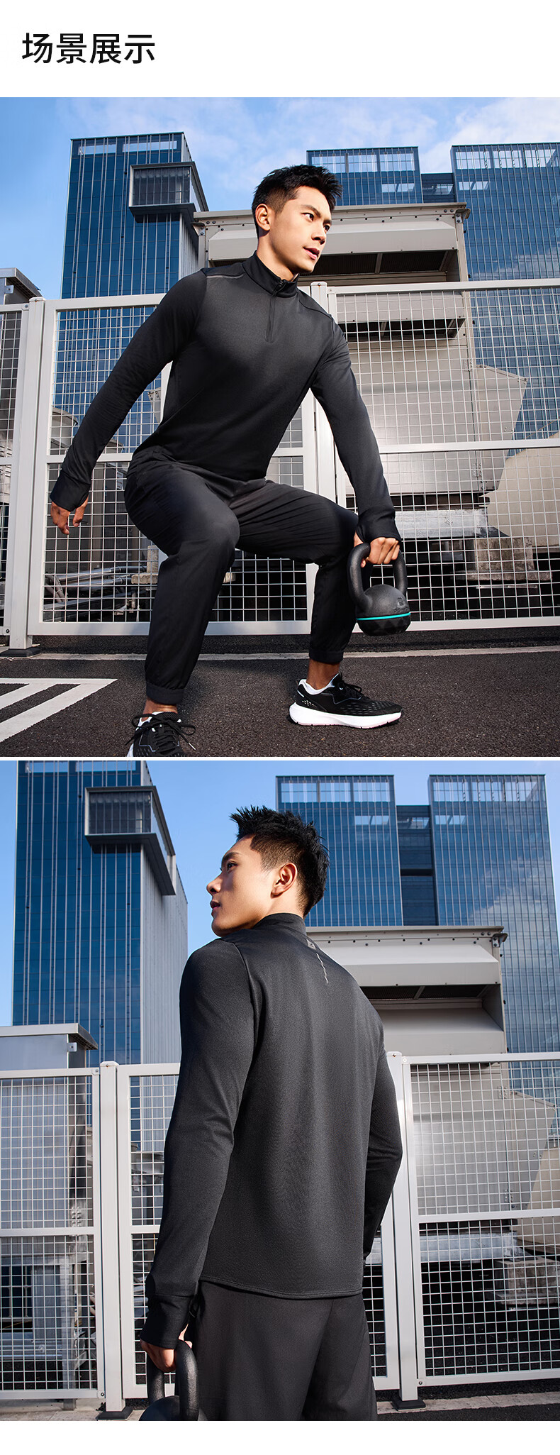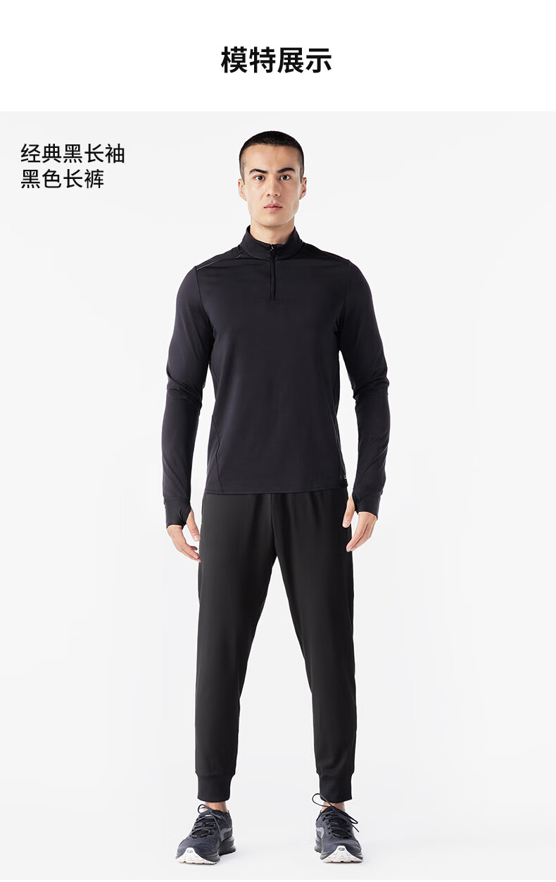 Decathlon (DECATHLON) winter quick-drying long-sleeved T-shirt men's training clothes sports quick-drying clothing fitness running top RUNM classic black (warm and quick-drying) XL