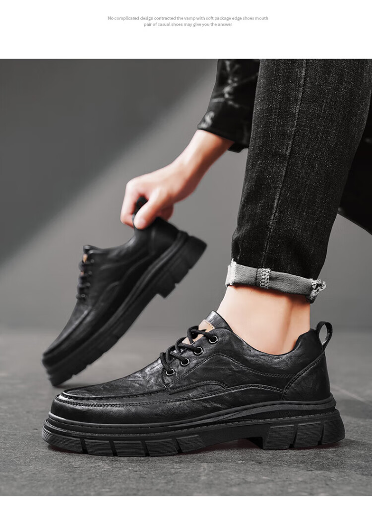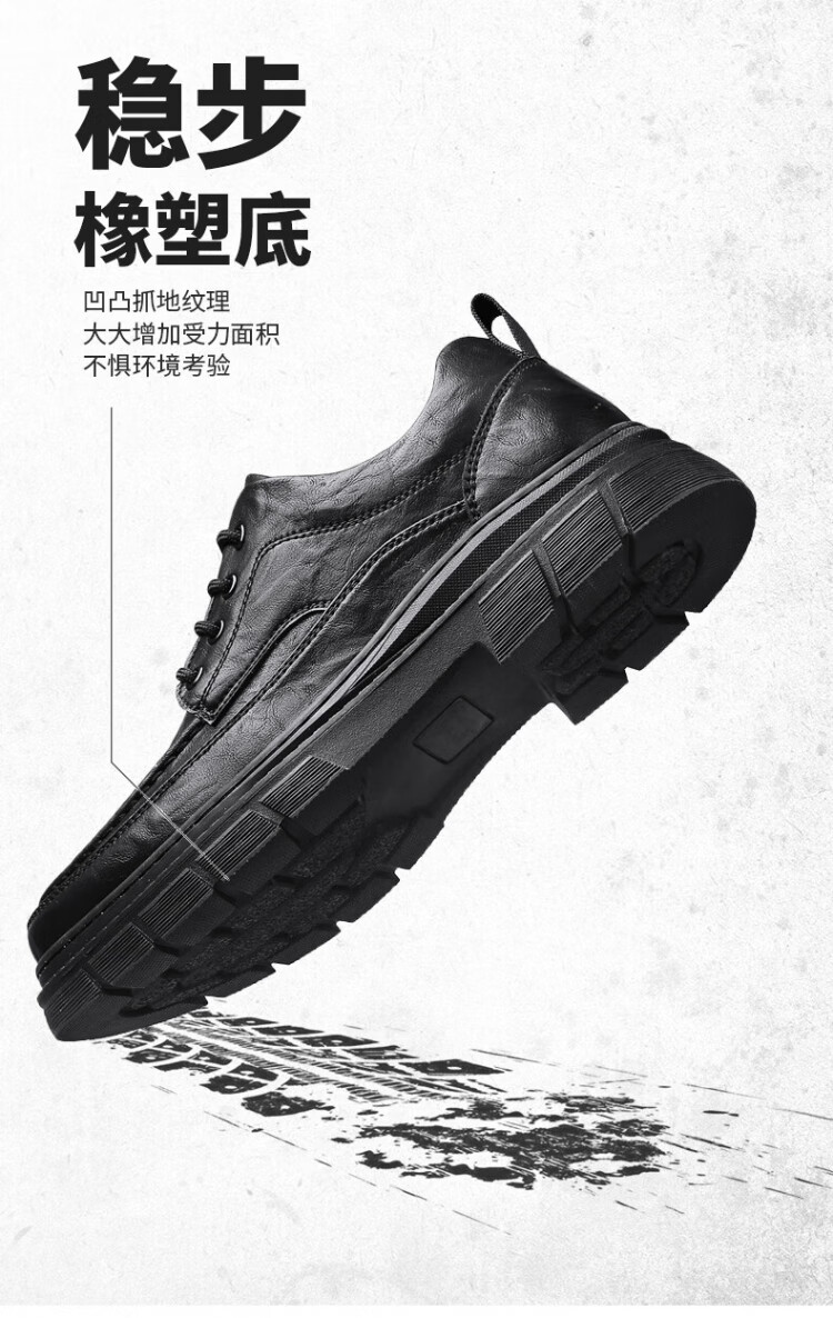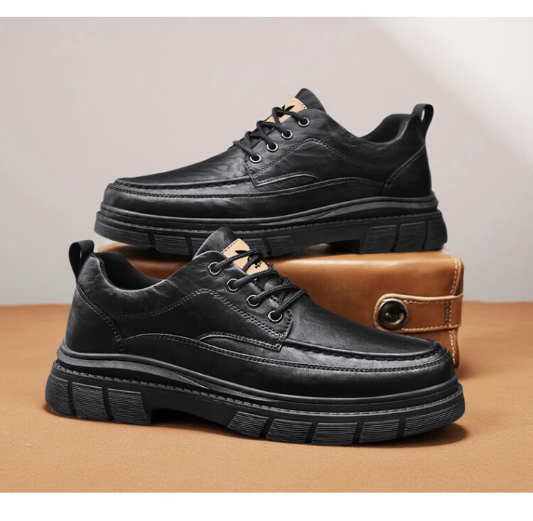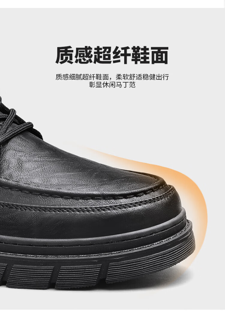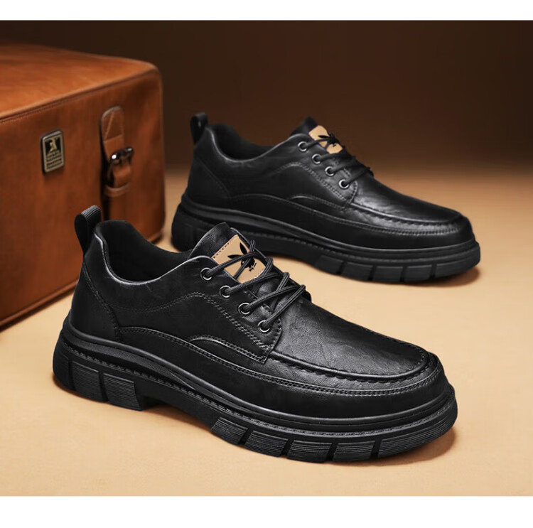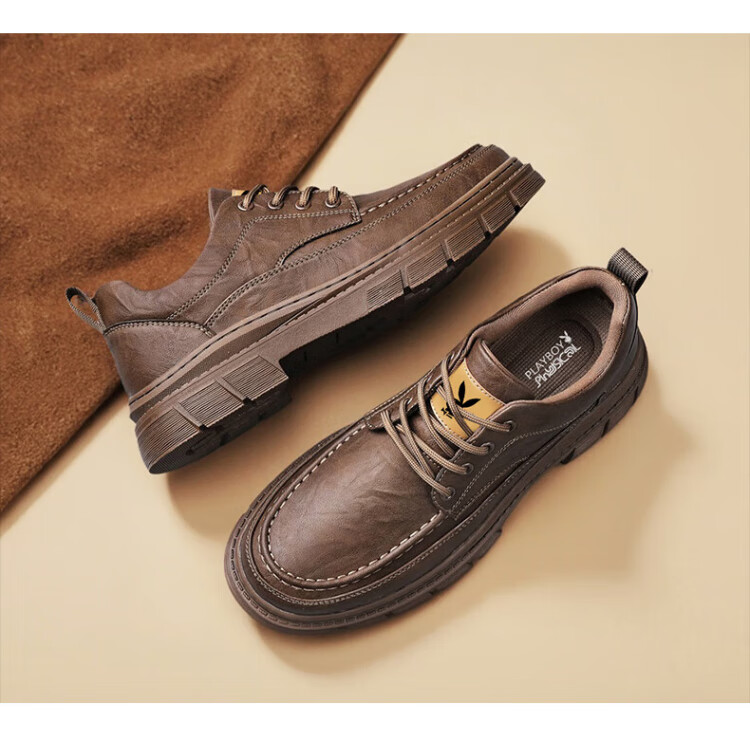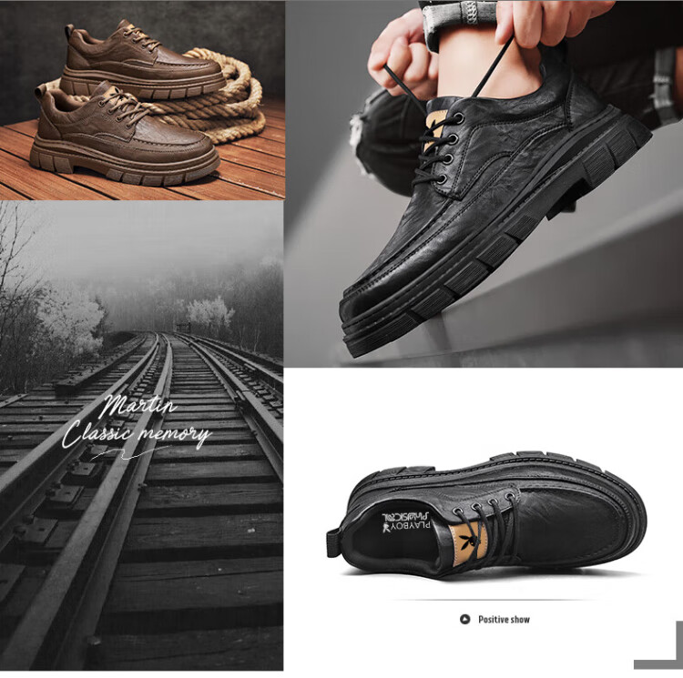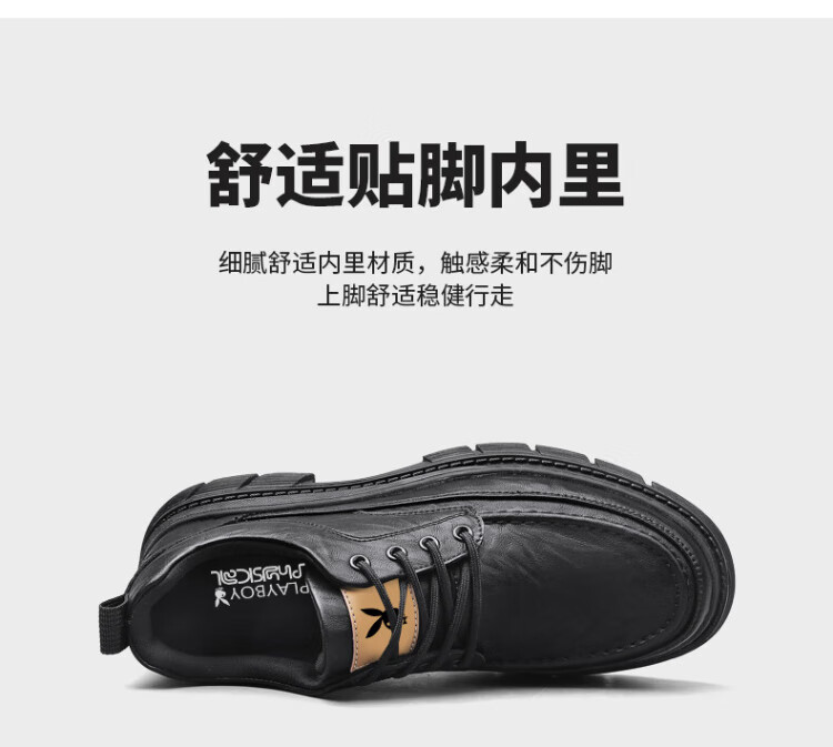 PLAYBOY Leather Shoes Men's 2025 Autumn Formal Business Casual Shoes Round Toe British Martin Boots Men's Work Shoes Black 42