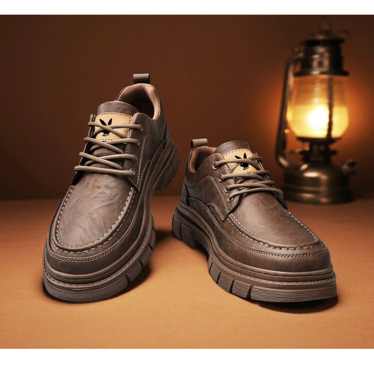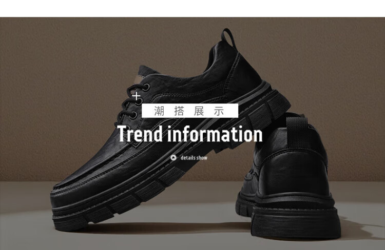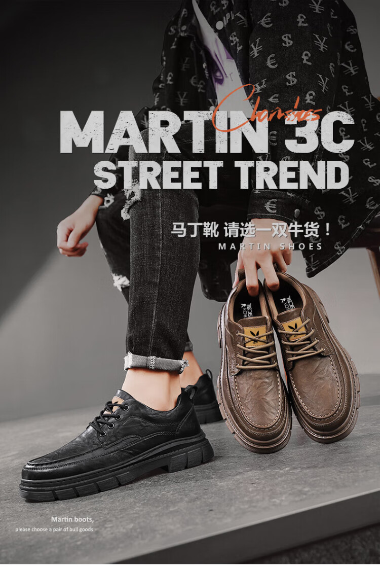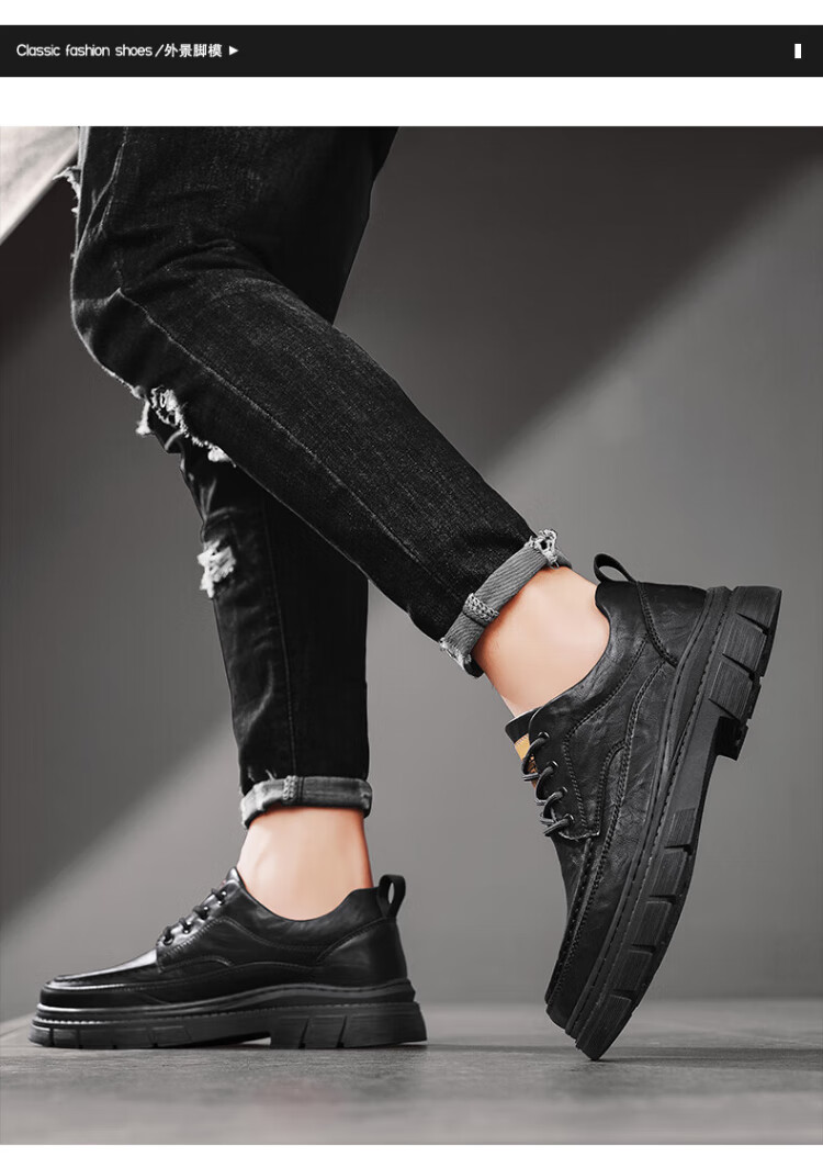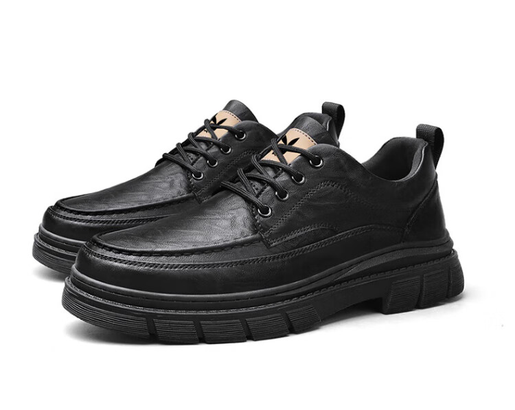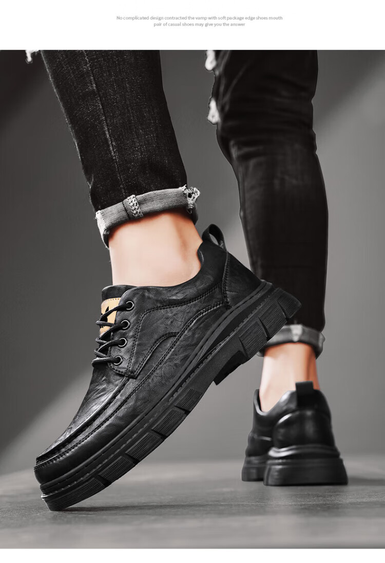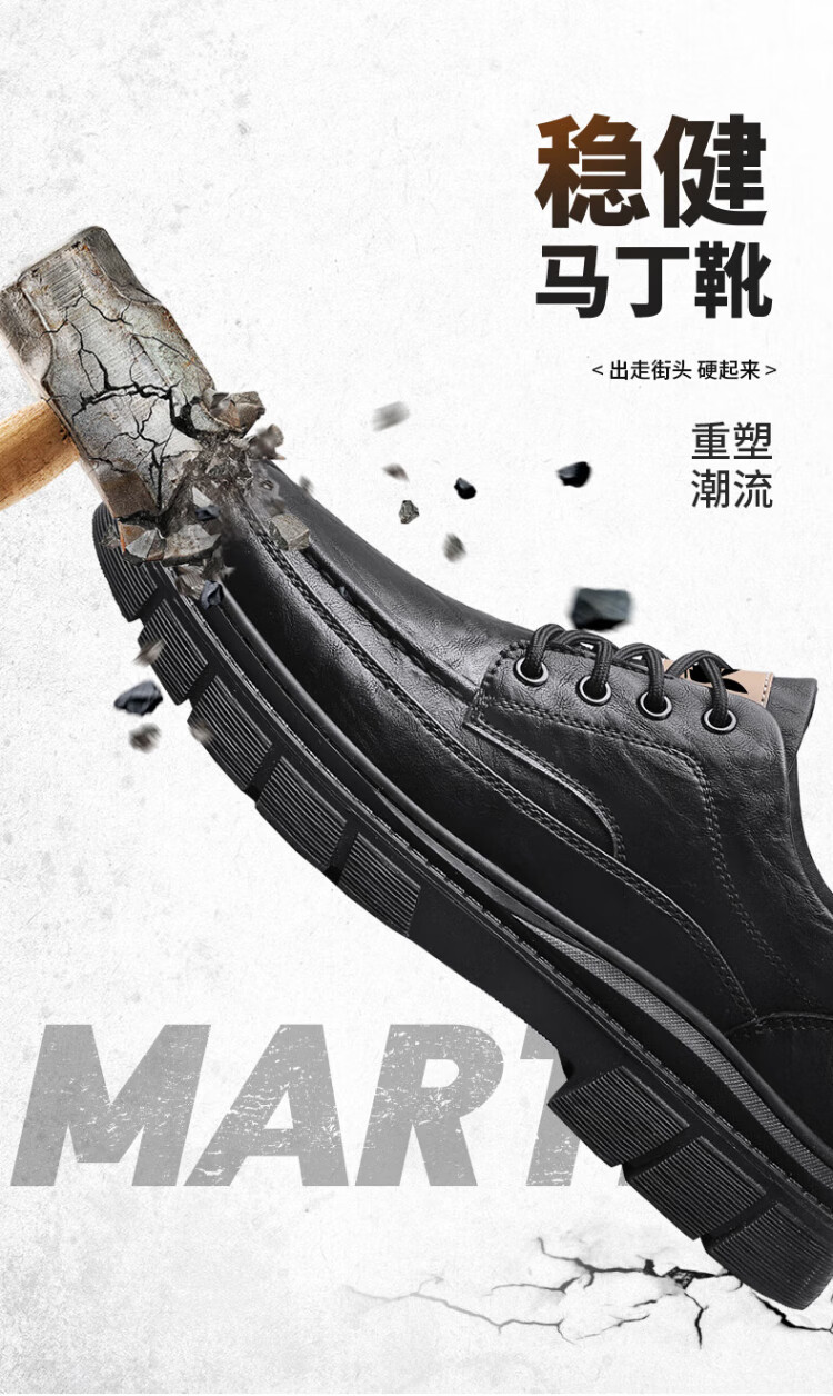 PLAYBOY Leather Shoes Men's 2025 Autumn Formal Business Casual Shoes Round Toe British Martin Boots Men's Work Shoes Black 42