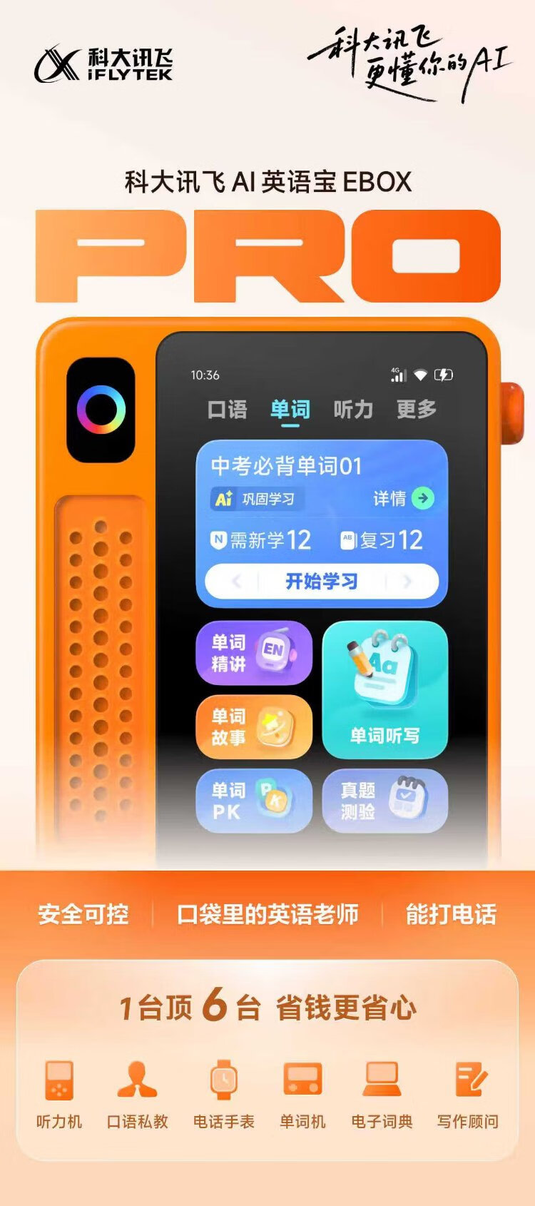 IFlytek Hearing Treasure AI English Treasure EBOX Pro National Subsidy English Listening Learning Machine Listening and Reading Artifact Walkman Sharpen Your Ears Anytime, Anywhere 128G
