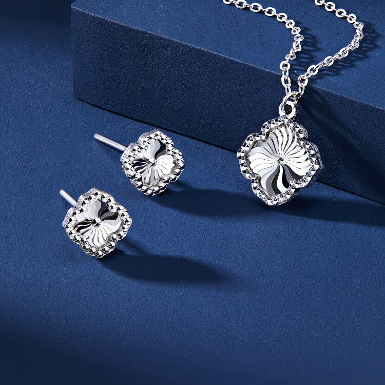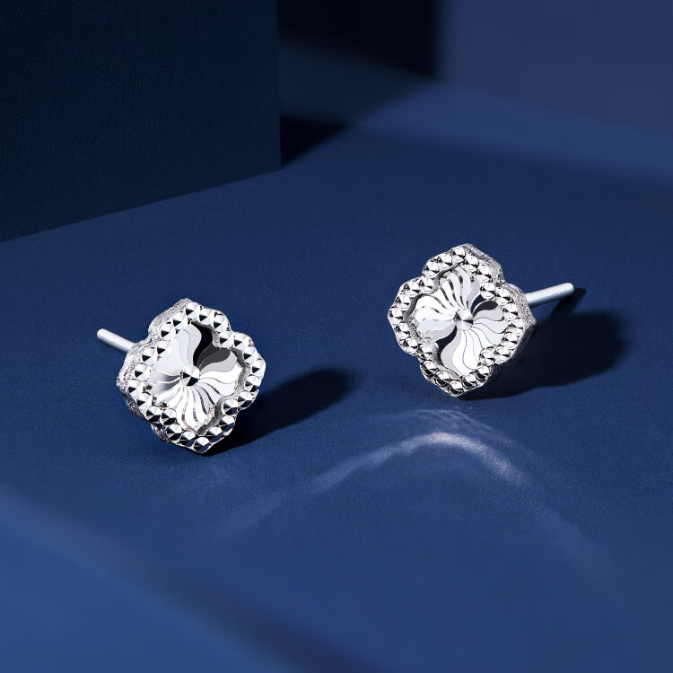 Lukfook Jewelry platinum earrings four-leaf clover platinum 950 water ripple car flower earrings price about 1.59 grams
