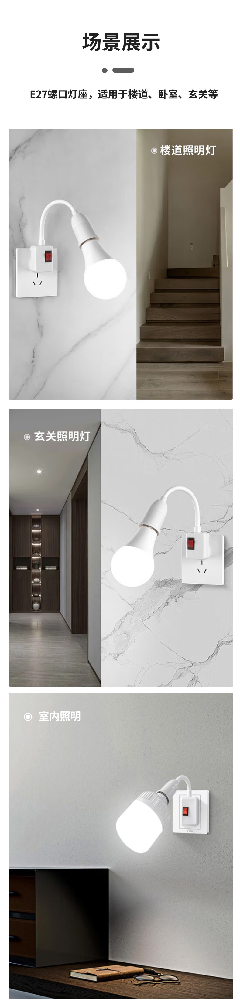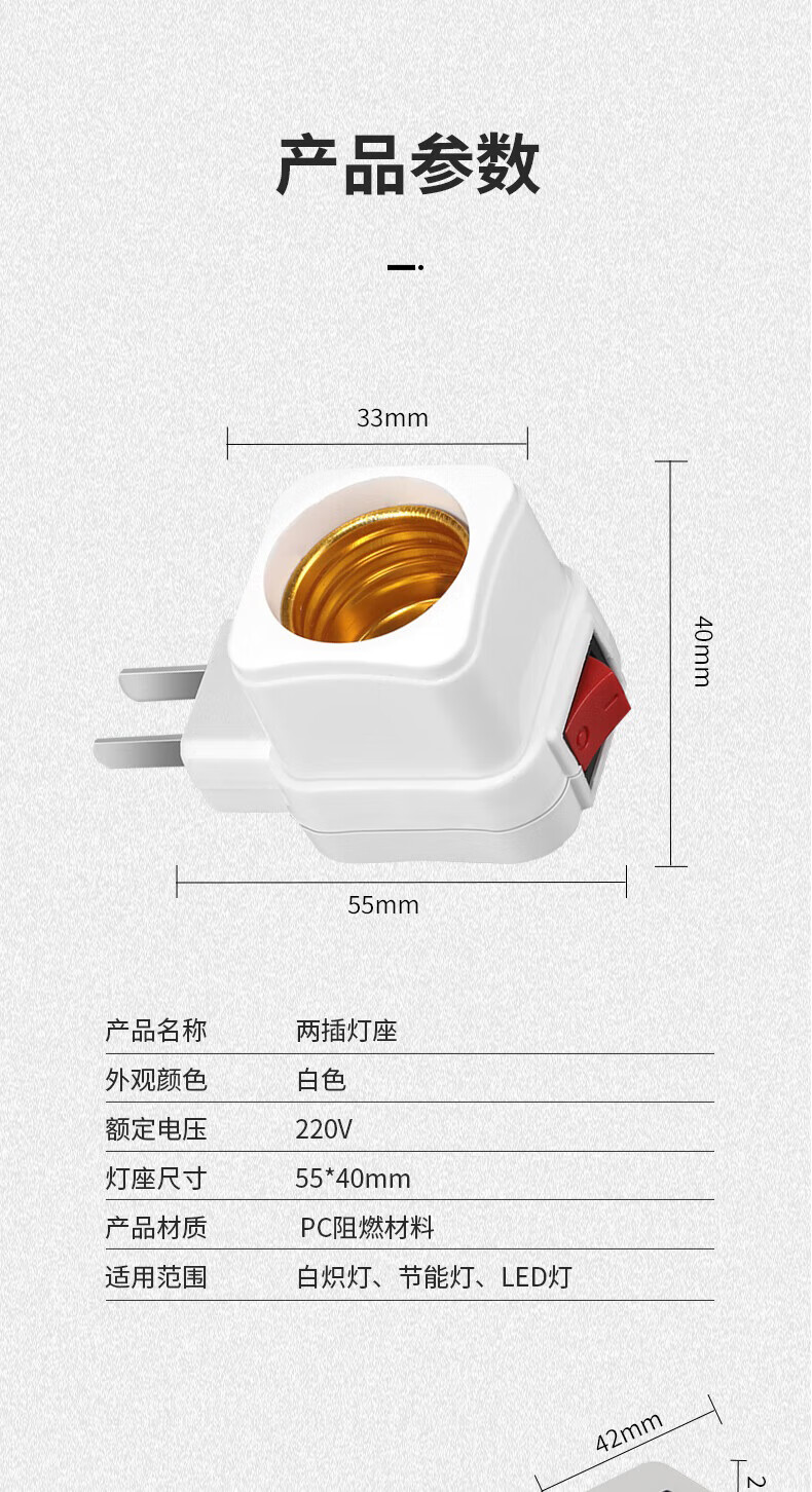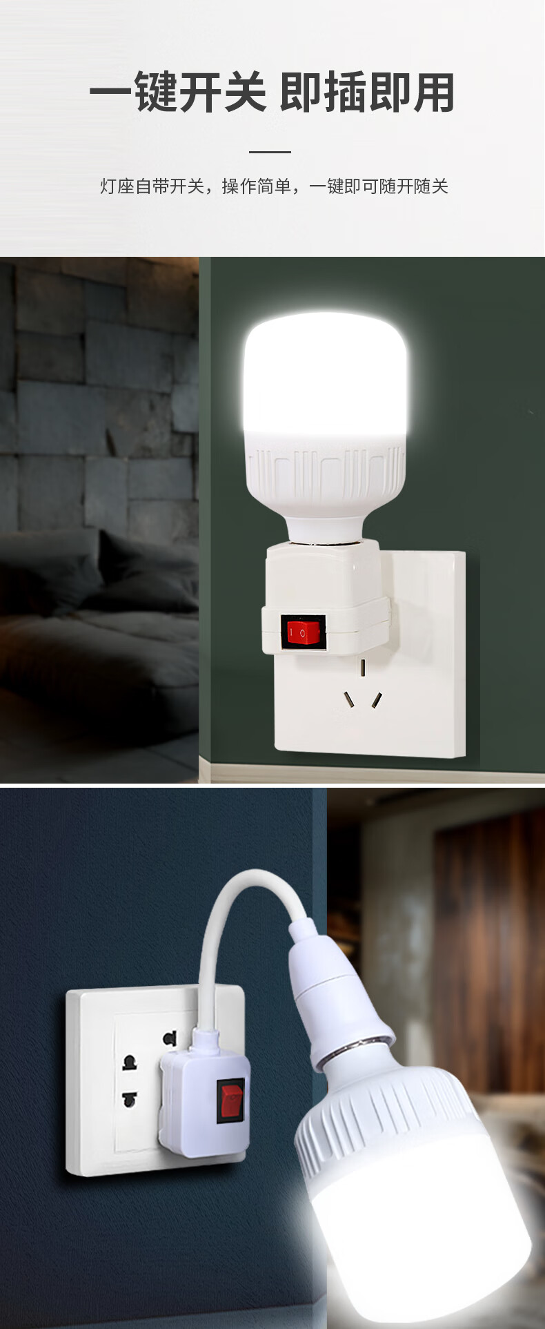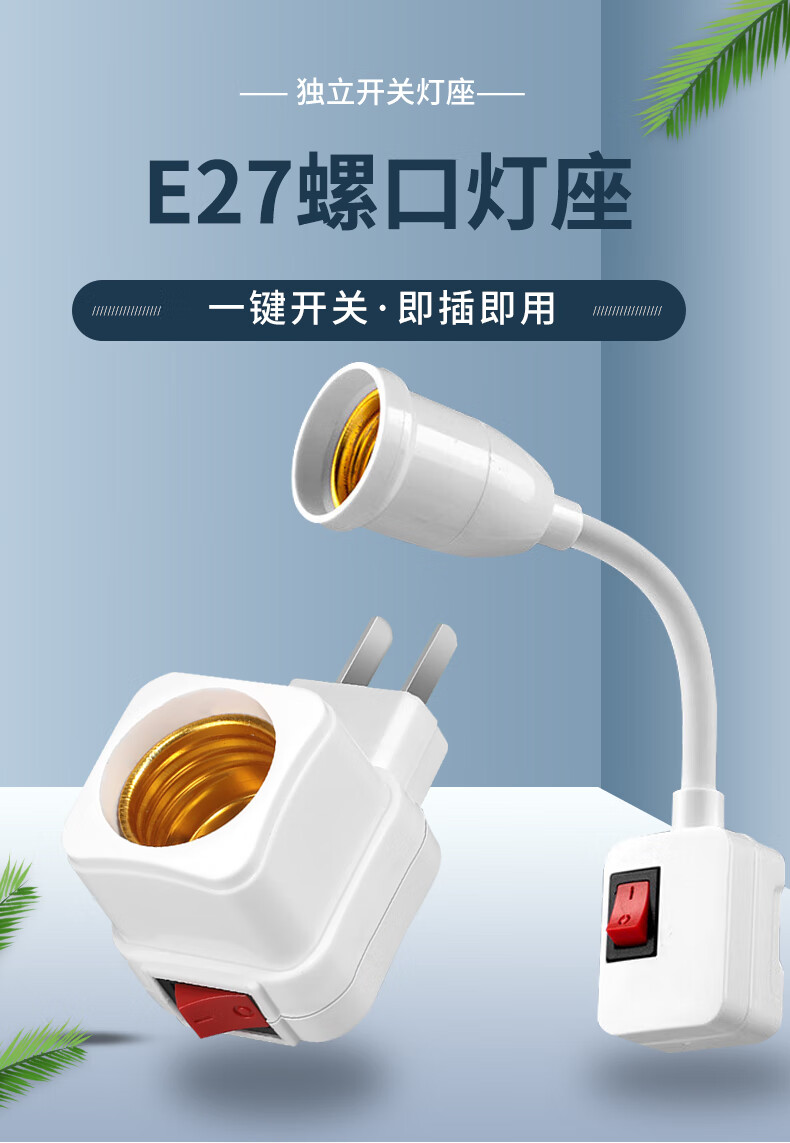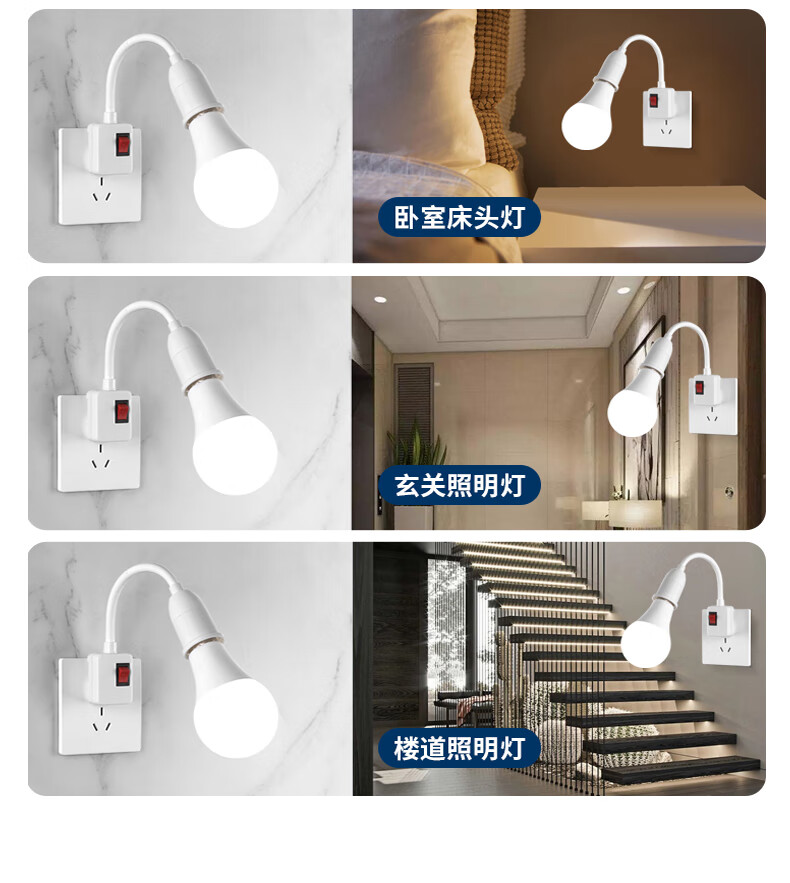 Jinggong light bulb lamp holder with switch socket universal lamp base hose lamp head plug wall lamp E27 screw led socket lamp 20W white light