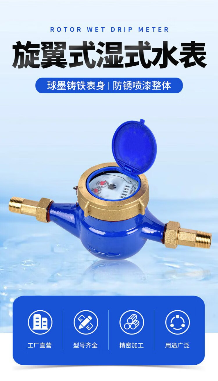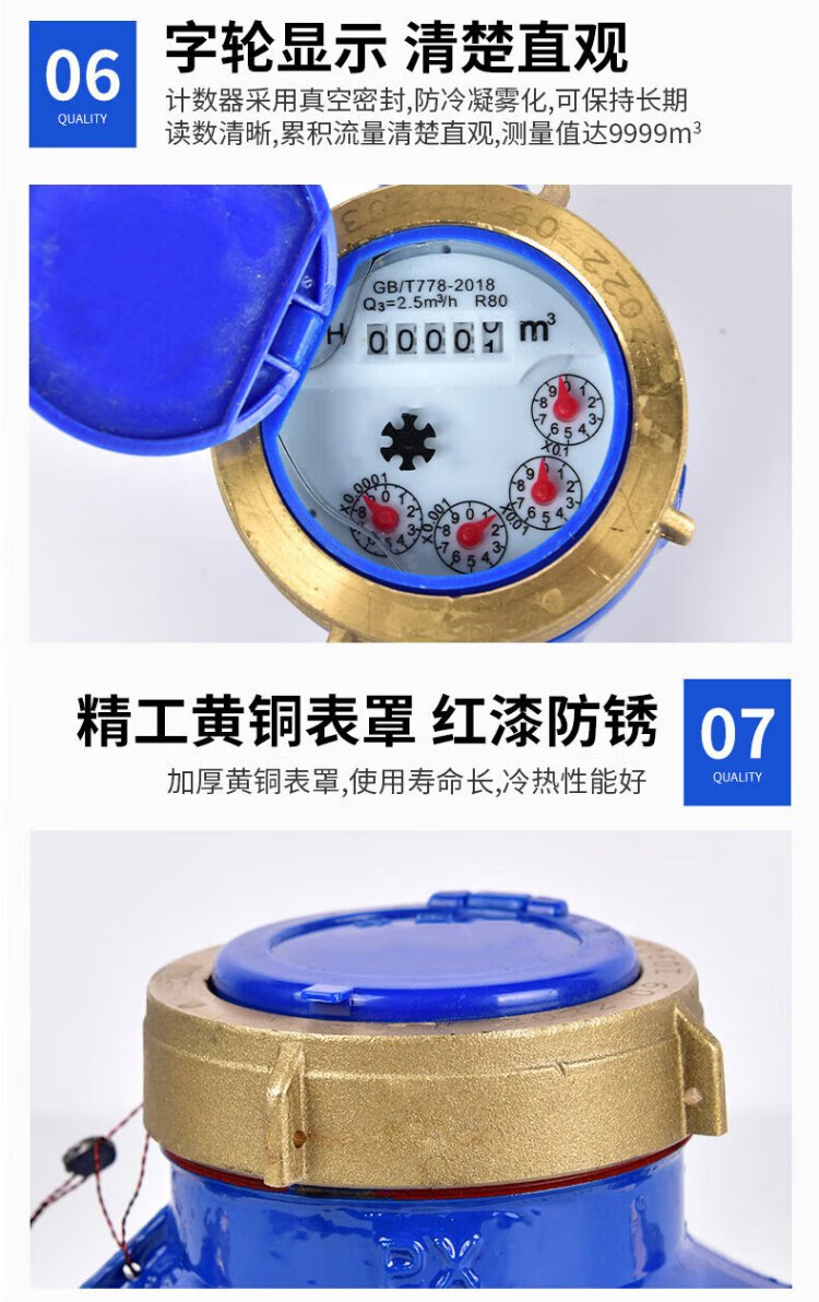 Steel pre-made product digital water meter rotor type tap water meter (Jingcang) horizontal iron set iron connection DN20 (6 points) one price