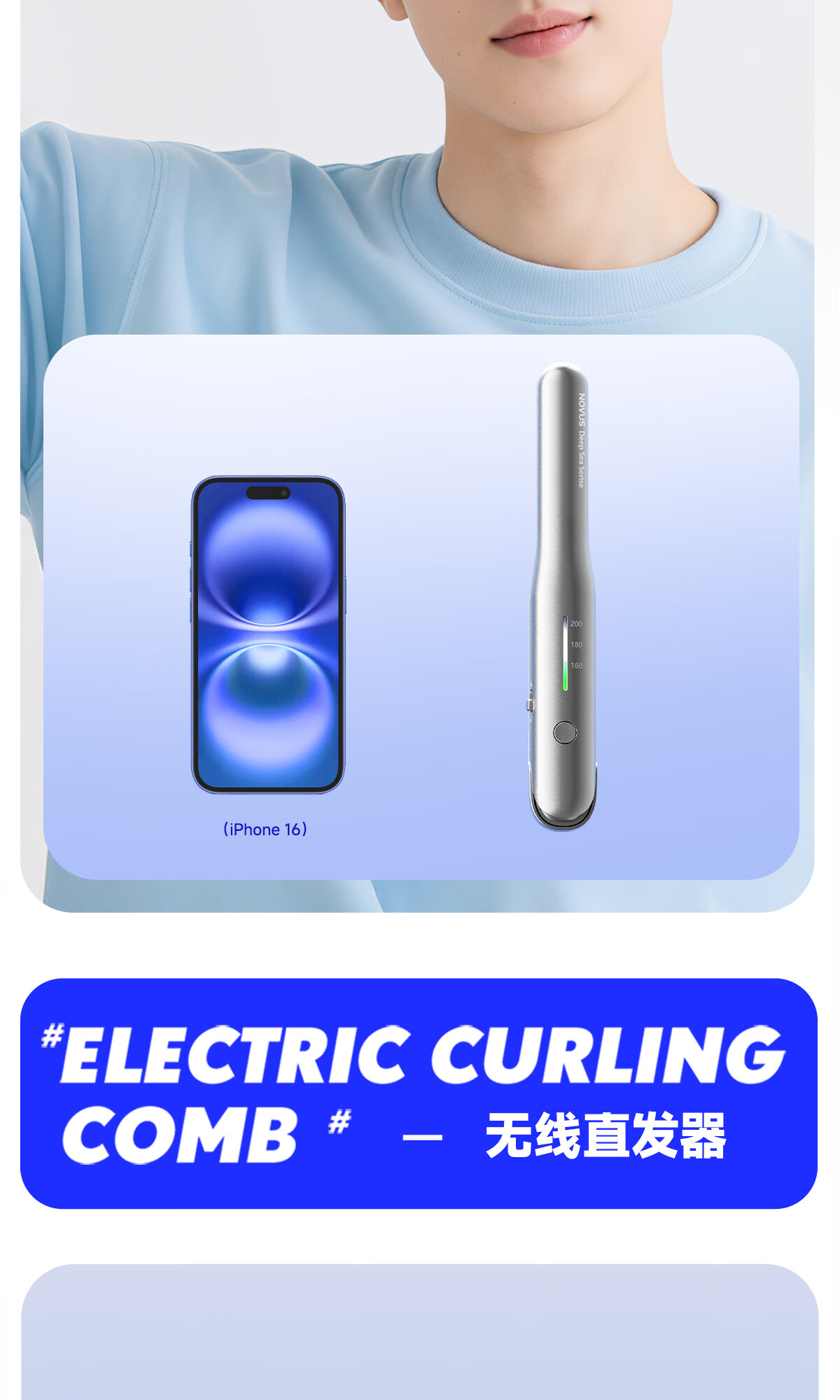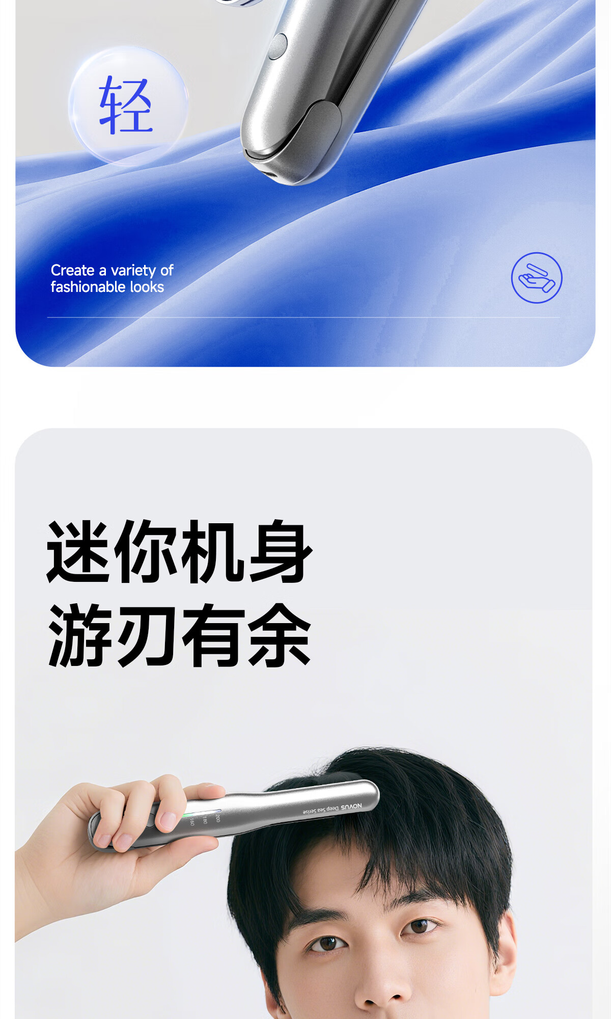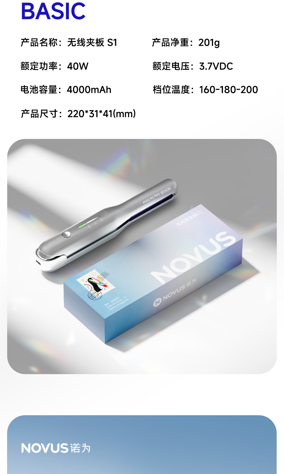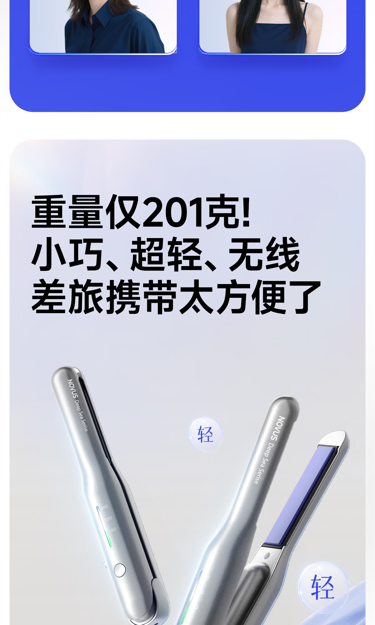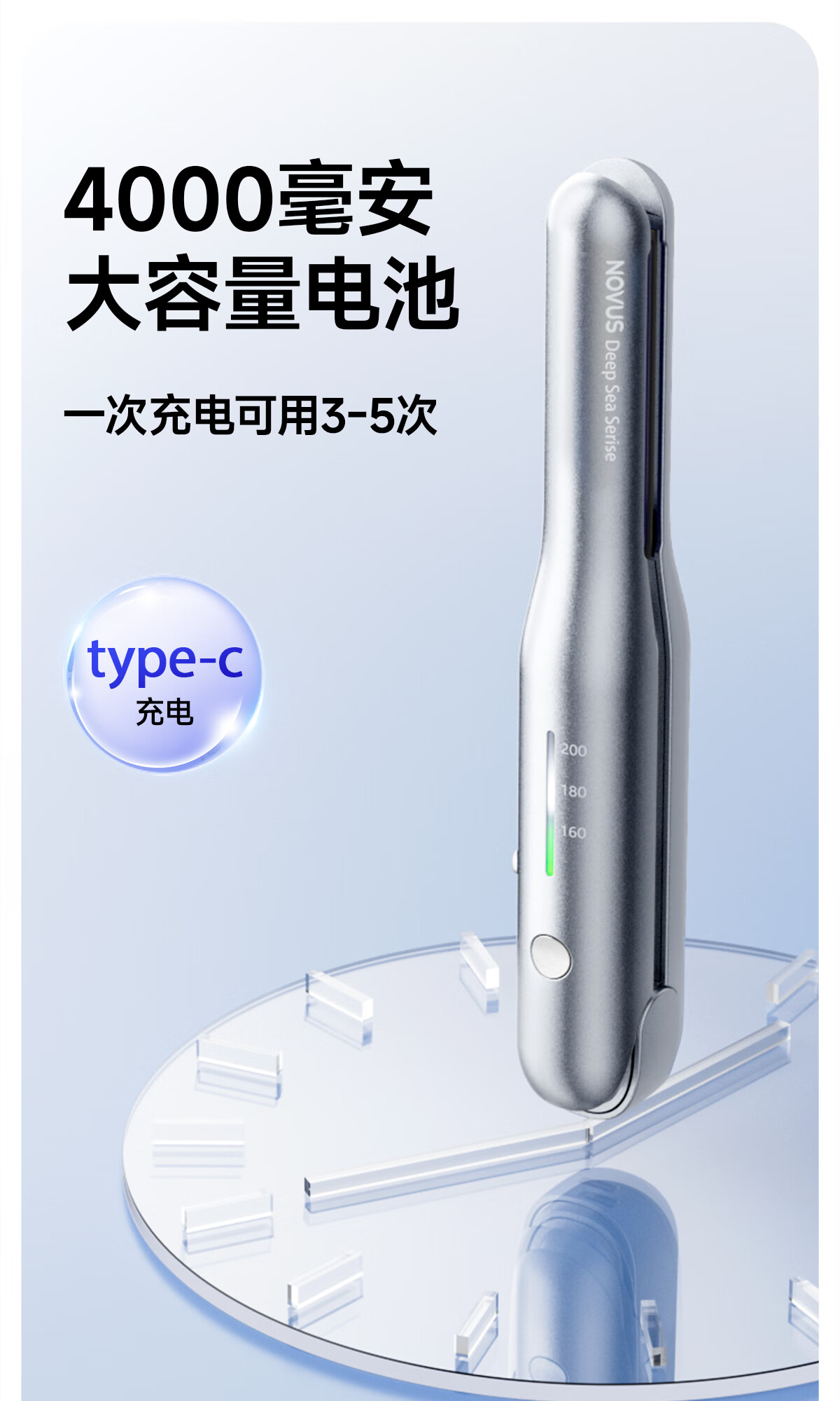 NOVUS Kabelloser Lockenstab mit gerader Klemme, wiederaufladbar, Mini-Herrenschiene zum Locken und Glätten, doppelter Verwendungszweck, schadet dem Haar nicht, starke Akkulaufzeit, tragbar, hochschädeliges Geburtstagsgeschenk, nationale Subvention S1