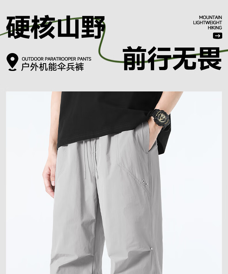 MINISO American trendy brand overalls men's autumn new outdoor camping casual straight-leg assault trousers Paris Gray XL