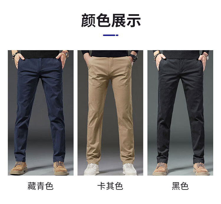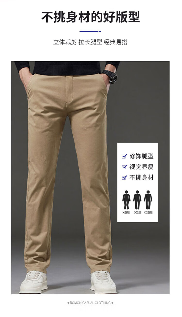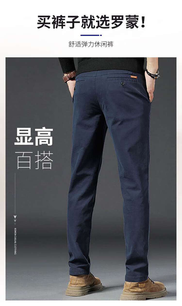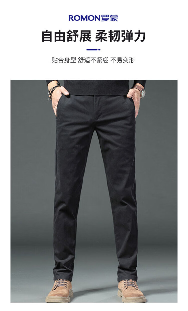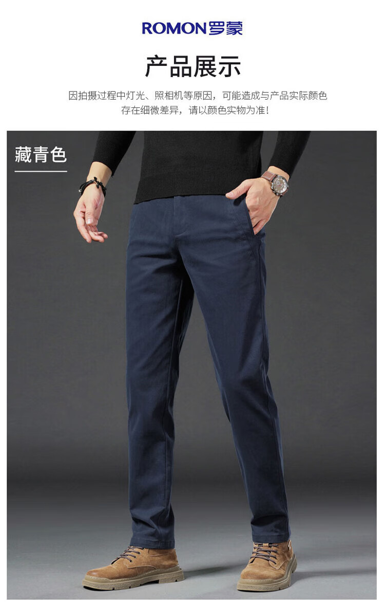 ROMON pants men's straight casual pants men's autumn and winter slim business men's pants versatile Khmer trousers navy blue 34