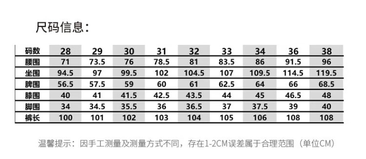 USA(inch) 28-30 30-32 32-34 34-38 38-42